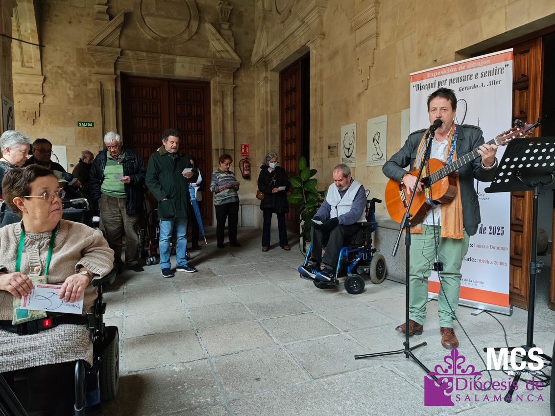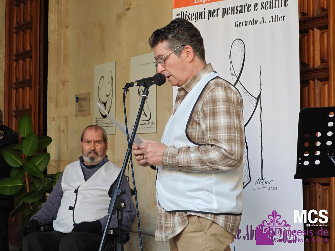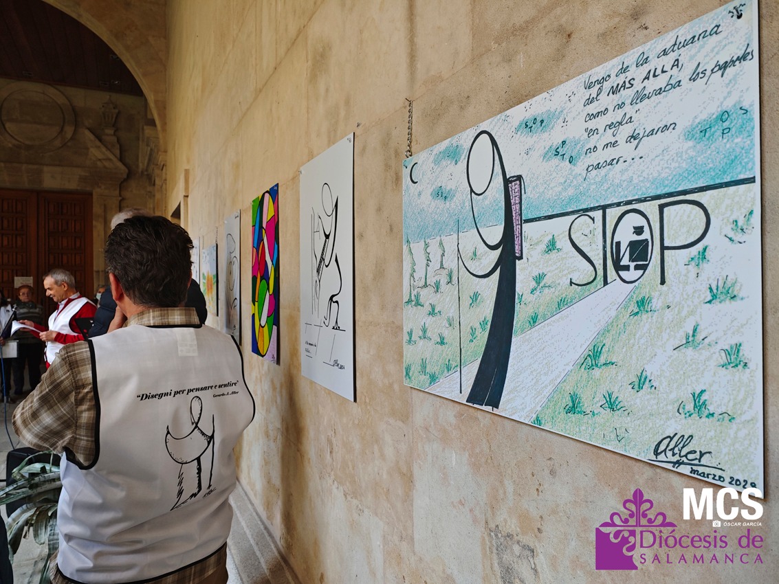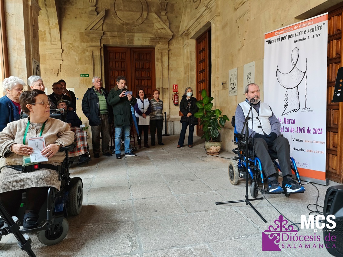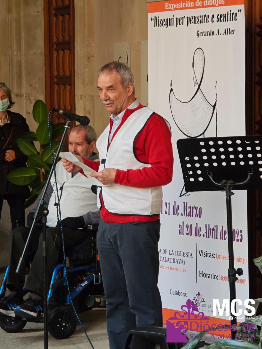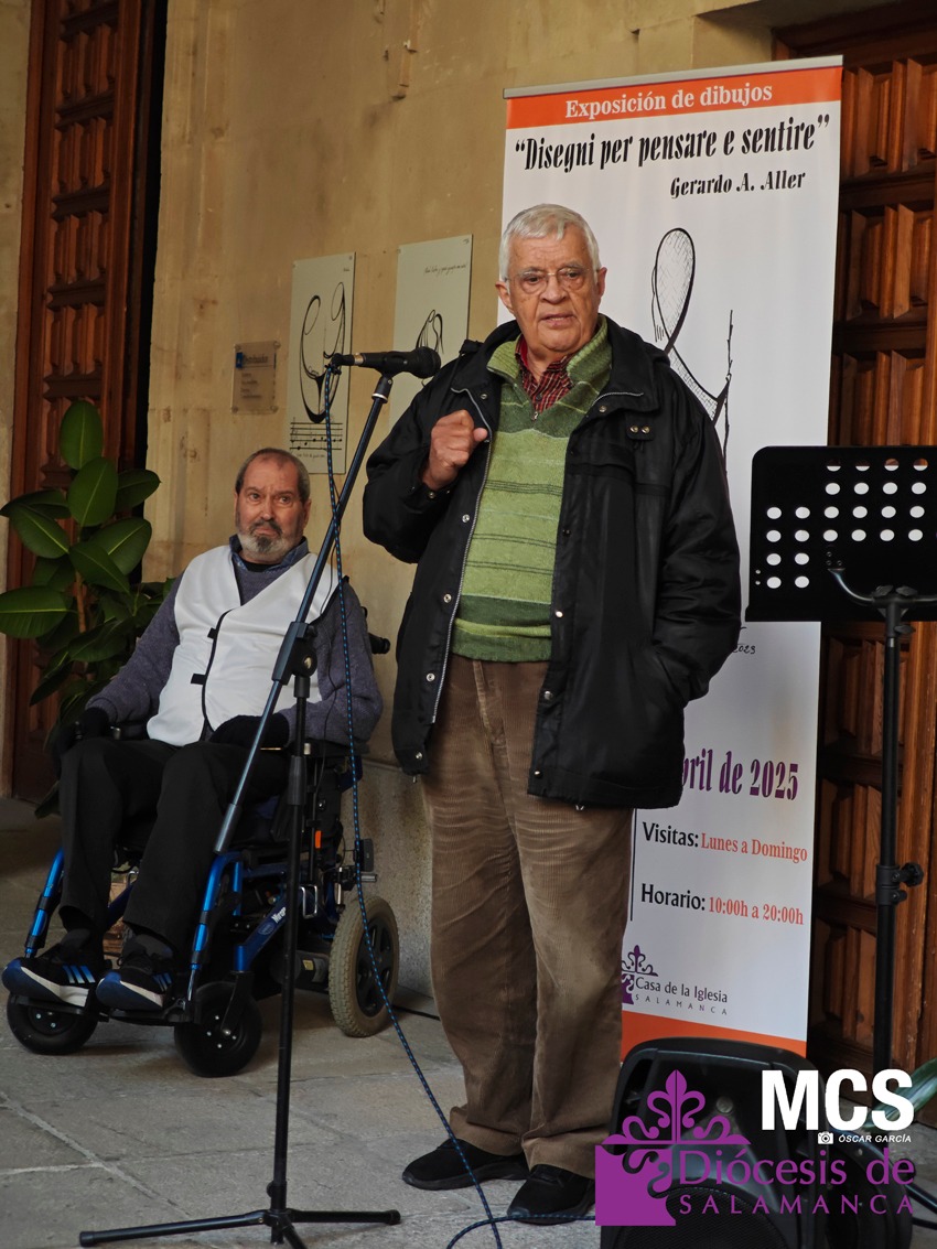 La exposición que acoge el claustro principal de la Casa de la Iglesia es la cuarta de Gerardo Alonso Aller, de 78 años, y lleva por título: “Disegni per pensare e sentire” que se podrá visitar de lunes a domingo, de 10:00 a 20:00 horas. En la inauguración de la muestra, el artista reconoció que durante mucho tiempo tuvo aparcada la pintura, por circunstancias de la vida, como formar una familia junto a su mujer, Luisa, y tener a sus dos hijos.