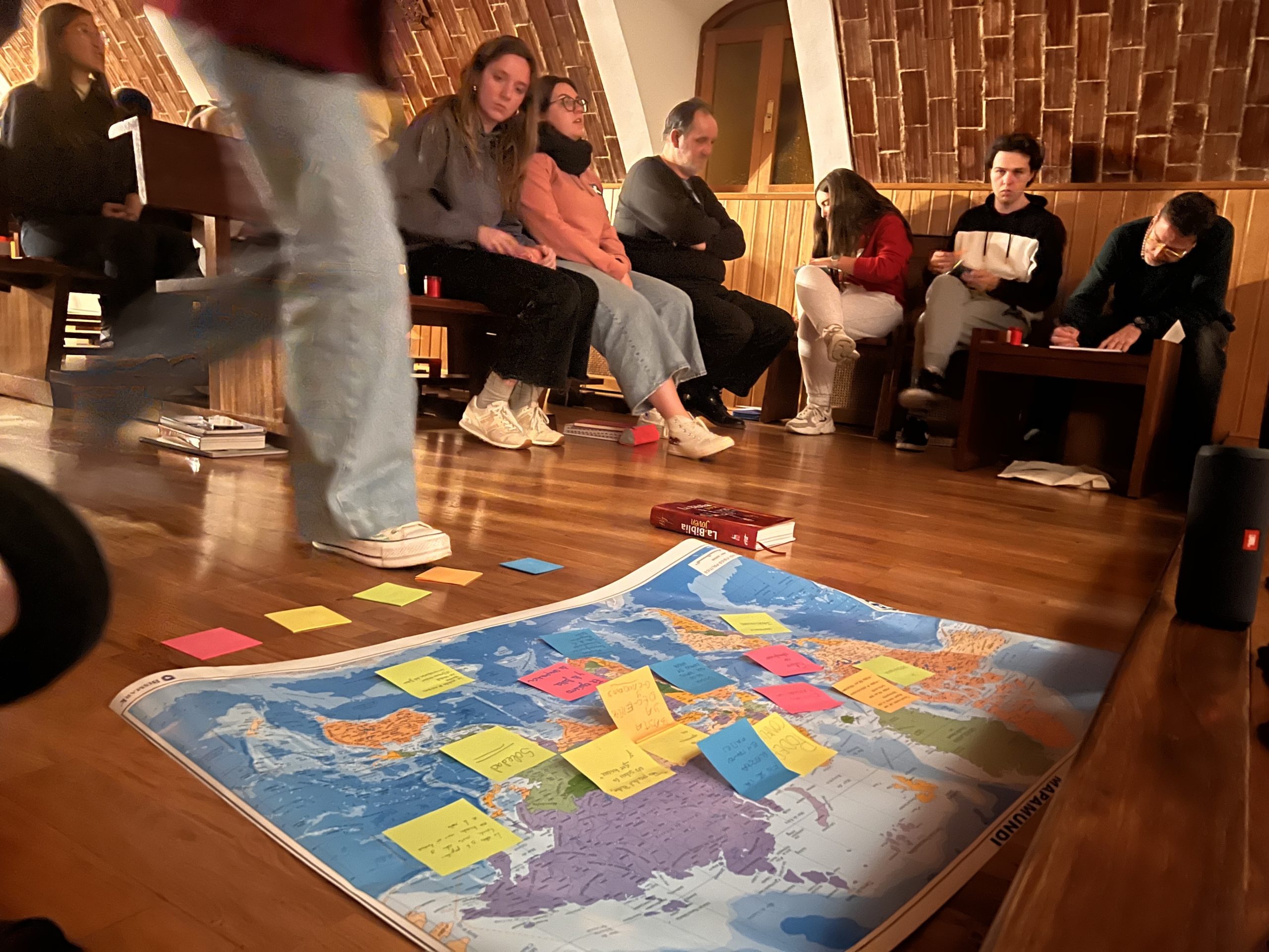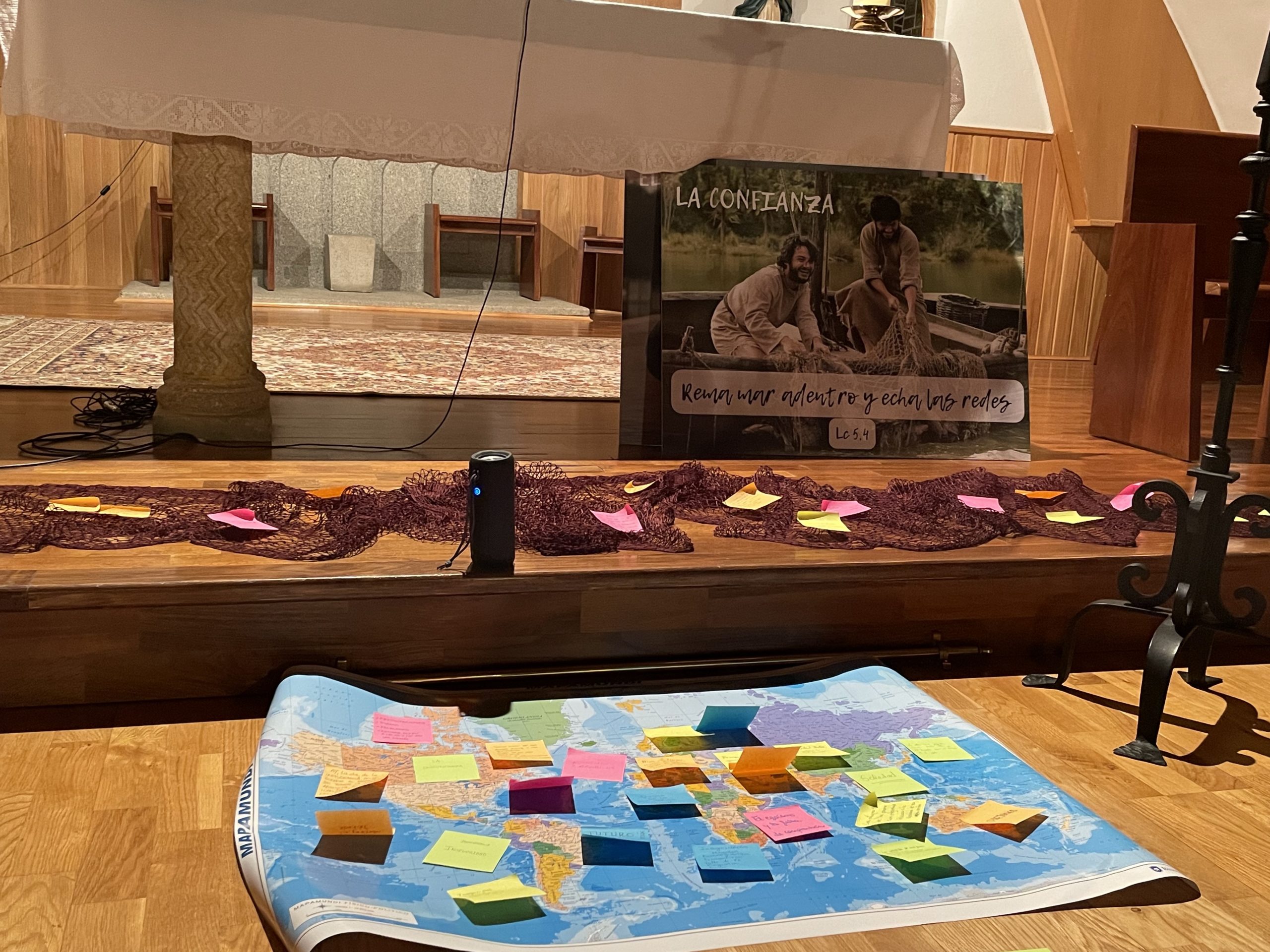 Para ella, su mejor momento ha sido el vivido en la oración de la capilla el primer día. “Allí hablamos sobre las dudas y los miedos de Pedro, y tuvimos que compartir los nuestros en una nota que luego pegábamos sobre una red, y era bastante liberador, porque por el hecho de escribirlo es quitarse ya esa carga”. En ese mismo rato de oración, los jóvenes también compartieron mensajes escritos sobre problemas que sufren los hombres y mujeres de nuestro tiempo, y que pegaban sobre un mapa mundi.