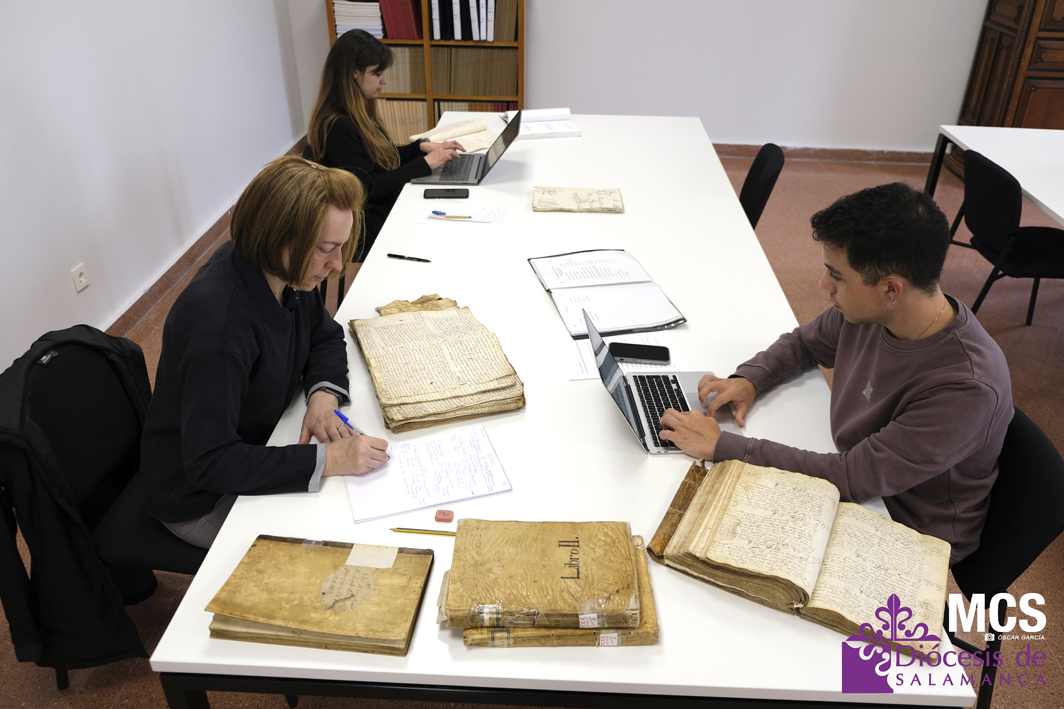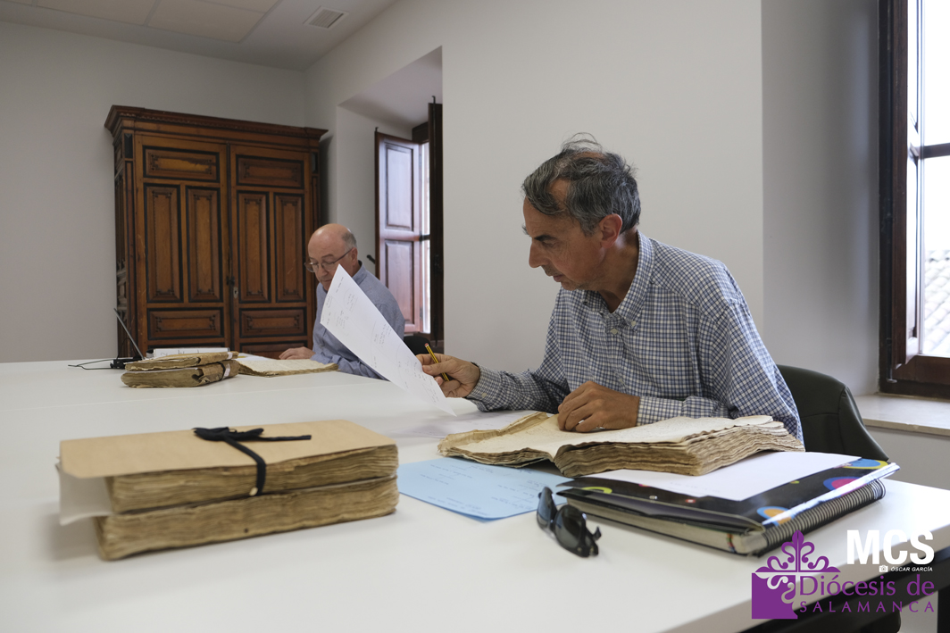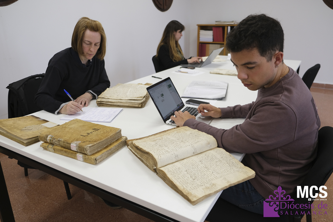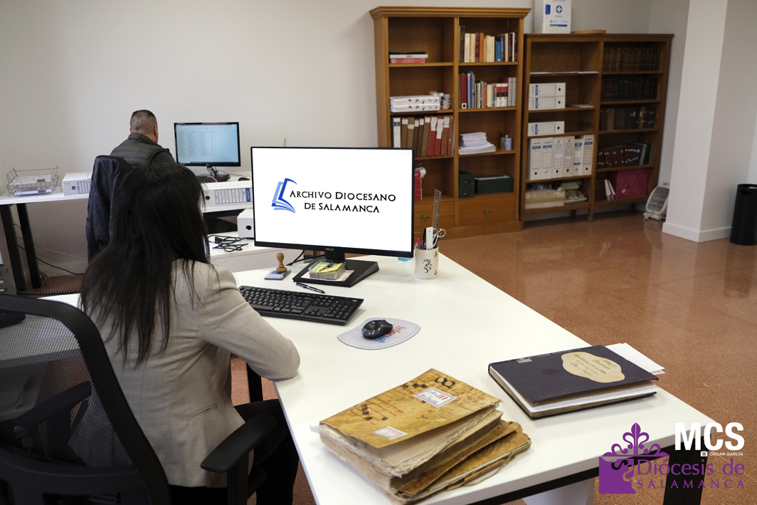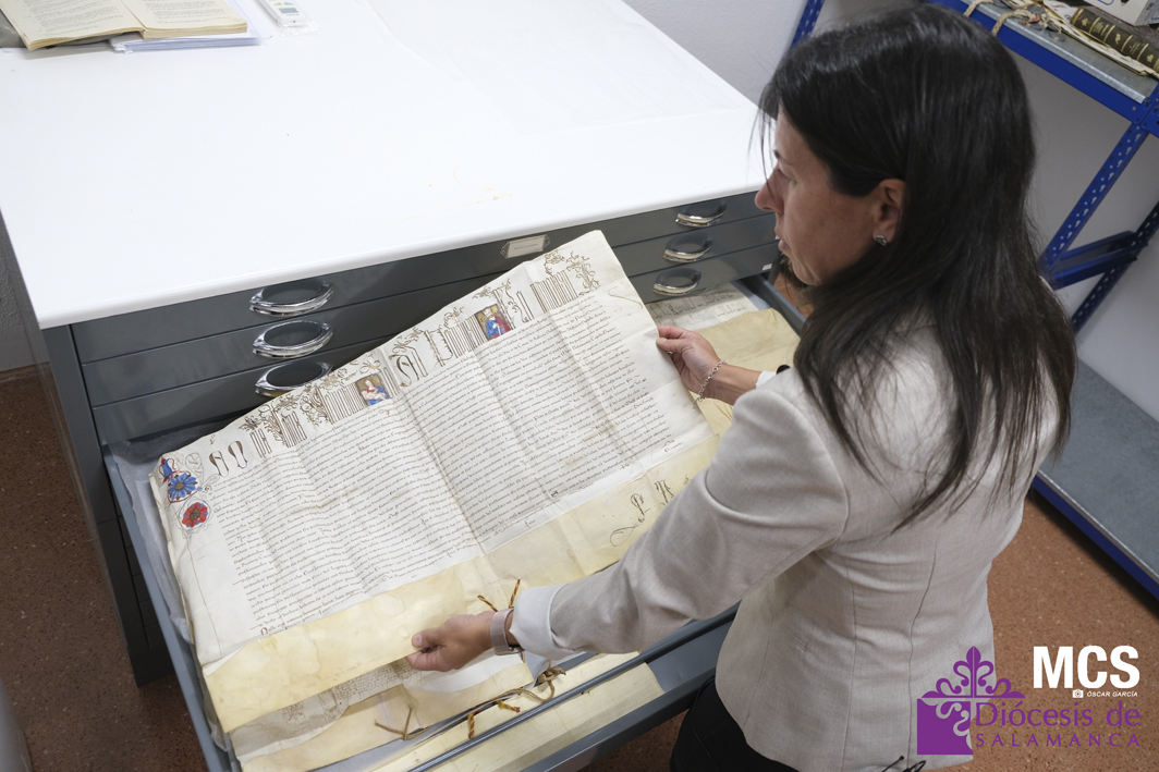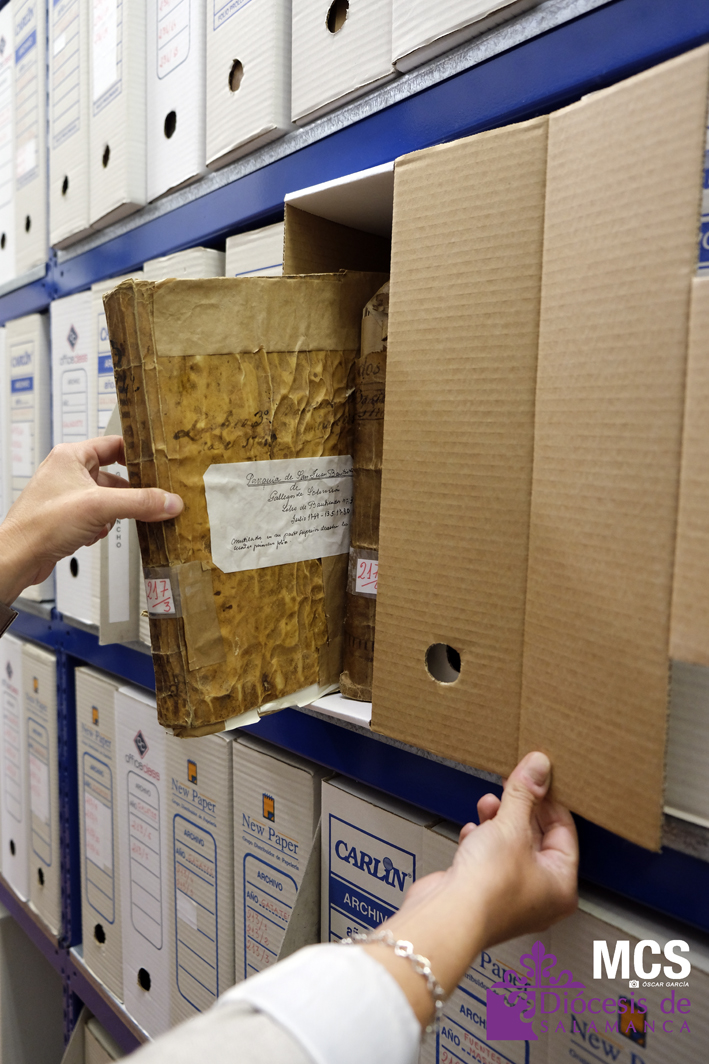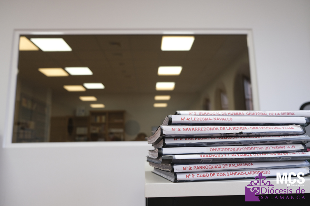 Vanesa Vaquero detalla las características de este archivo, donde se conserva documentación muy variada, “la más importante que tenemos son los libros parroquiales de toda la Diócesis de Salamanca, menos de tres, que ellos mismos custodian: Florida de Liébana, Pino de Tormes y Yecla de Yeltes”. Como apunta esta técnico del archivo, “no es obligatorio que los sacerdotes envíen toda la documentación que tienen, pero sí es una recomendación que surgió en los años 80 por el obispo Mons. Mauro Rubio”.