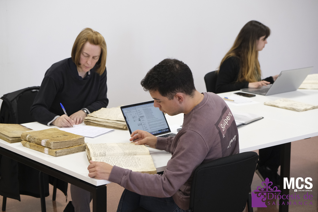 Respecto al volumen de investigadores que acudían a diario al Archivo diocesano, como apunta la técnico, han llegado a tener hasta 30 en una jornada. Y para poder dar mejor atención y dedicar tiempo a la catalogación, desde su reapertura, el pasado 12 de abril, se ha limitado el aforo de la sala a 12 personas, y con cita previa para acudir a la misma al correo: archivocita@diocesisdesalamanca.com. Siempre reservan unas plazas para los investigadores que vienen de fuera y necesitan realizar alguna consulta con más urgencia.