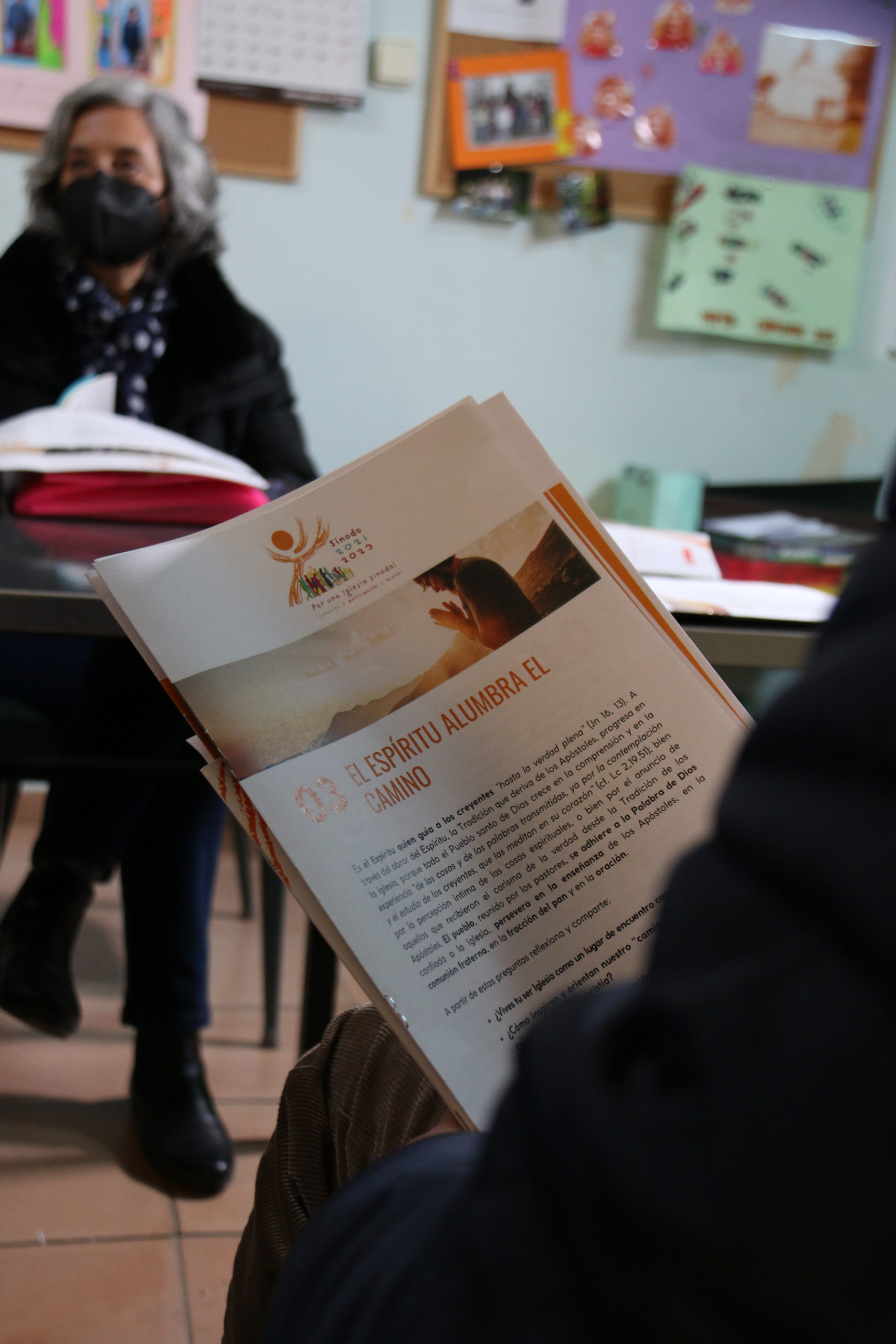 Su lugar de reunión es un pequeño local de la iglesia de Nuevo Naharros, un municipio a escasos siete kilómetros de la capital. Al calor de varias estufas de butano trabajan en las fichas del Sínodo diseñadas por la Diócesis de Salamanca. Este grupo sinodal está formado por seis laicos y un sacerdote. Luis Pérez es el coordinador, y quien pone voz y guitarra en cada eucaristía dominical. Todos sus integrantes son personas cercanas a la Iglesia, con una vida activa en la de este municipio.