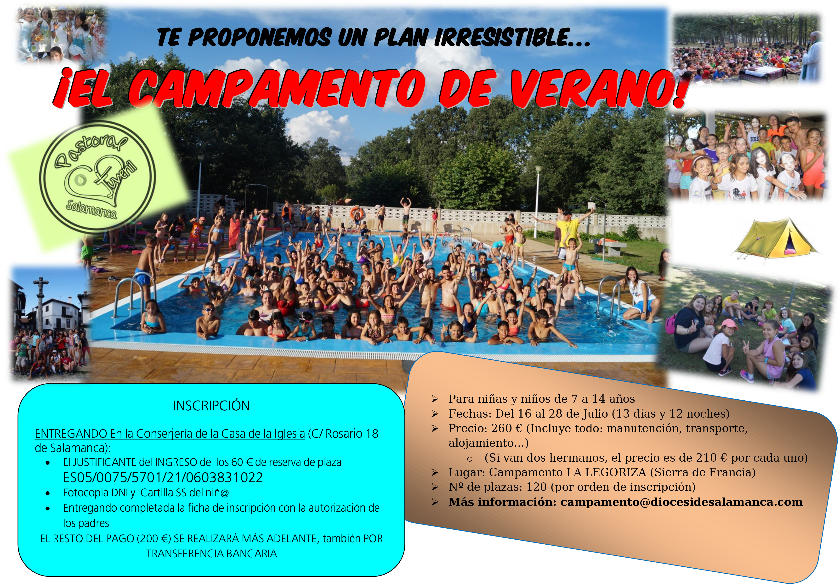 Para ello se debe de entregar un justificante del ingreso de 60 euros para la reserva de plaza al número de cuenta ES05/0075/5701/21/0603831022. Además, deberán de entregar una fotocopia del DNI y de la cartilla de la Seguridad Social del menor, así como completada la ficha de inscripción con la autorización de los padres. El número total de plazas es 120 por orden de inscripción. Para más información en el correo electrónico: campamento@diocesidesalamanca.com