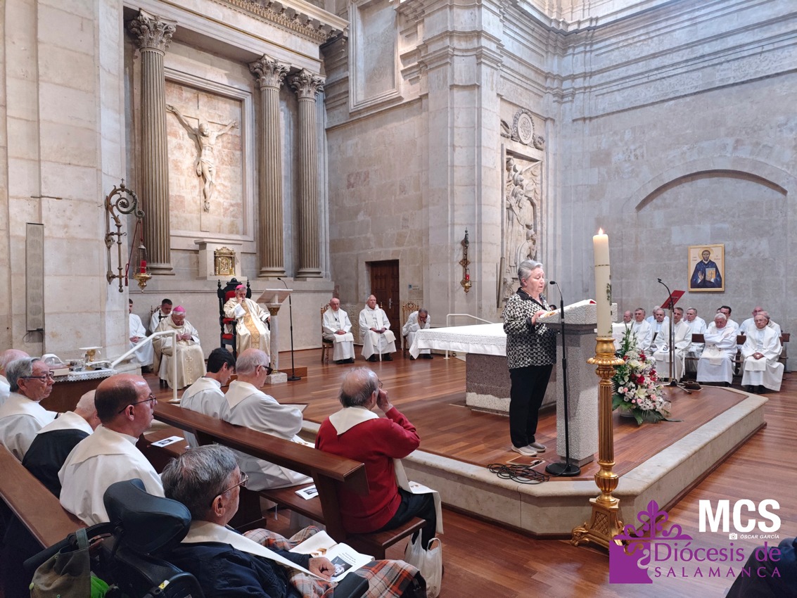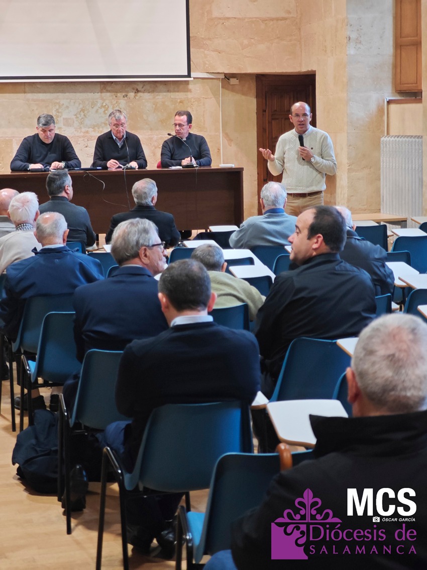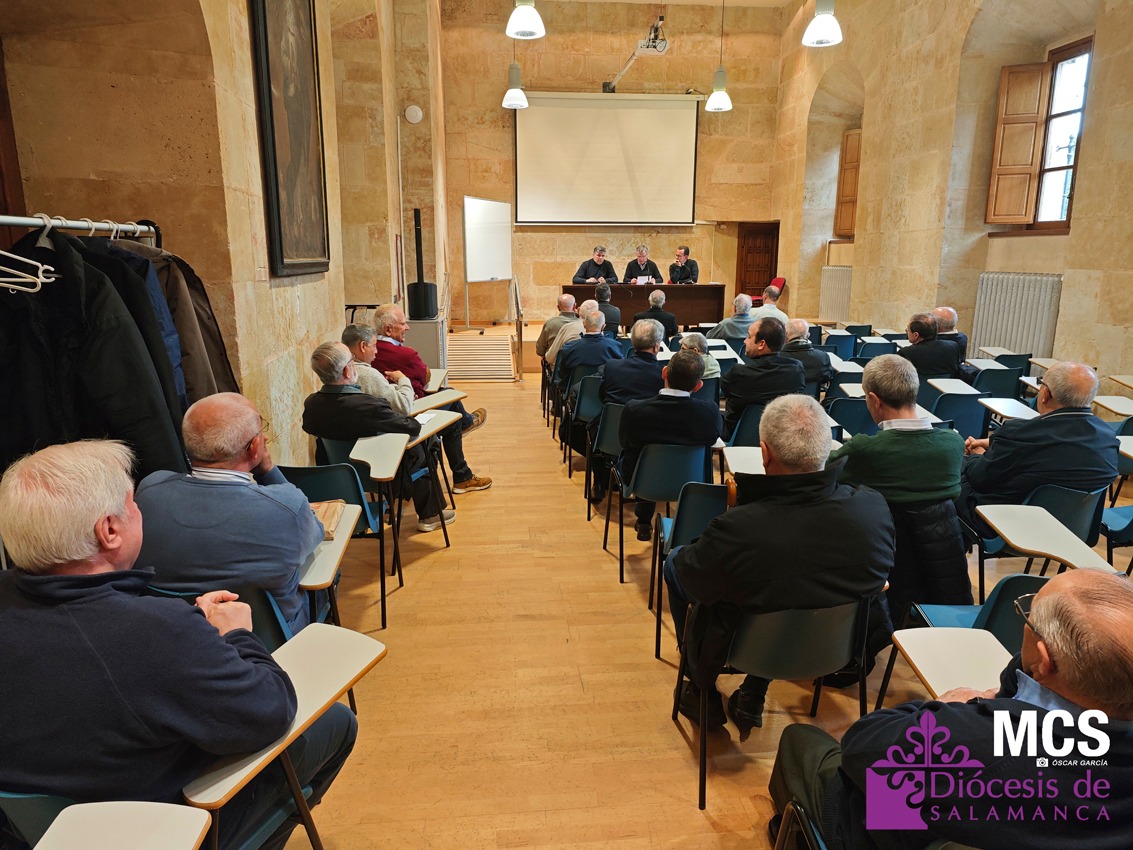 La jornada comenzó con un encuentro en la sala Virgen de la Vega, donde los sacerdotes compartieron reflexiones en torno a los desafíos actuales del ministerio, partiendo del trabajo realizado por franjas de edad en la reunión del pasado mes de febrero. Un espacio de diálogo enriquecedor que permitió seguir profundizando en la pastoral sacerdotal y en el acompañamiento que necesita el presbiterio.