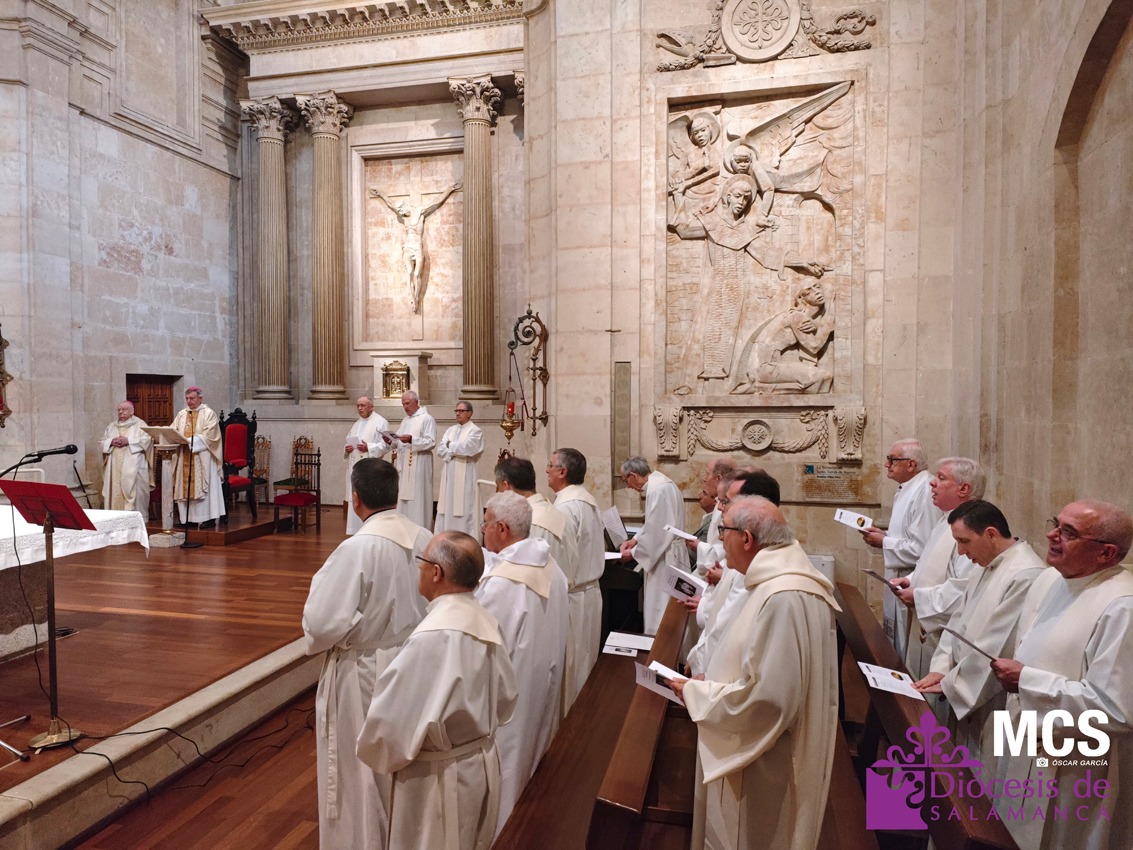 El pasado sábado, 10 de mayo, la Diócesis de Salamanca celebró la festividad de San Juan de Ávila, patrono del clero secular español y doctor de la Iglesia, con una jornada marcada por la fraternidad, la oración y el agradecimiento. Fue una ocasión para renovar el compromiso sacerdotal a la luz del testimonio de este “santo pastor”, y para rendir homenaje a cuatro presbíteros que este año cumplen sus bodas de oro sacerdotales.