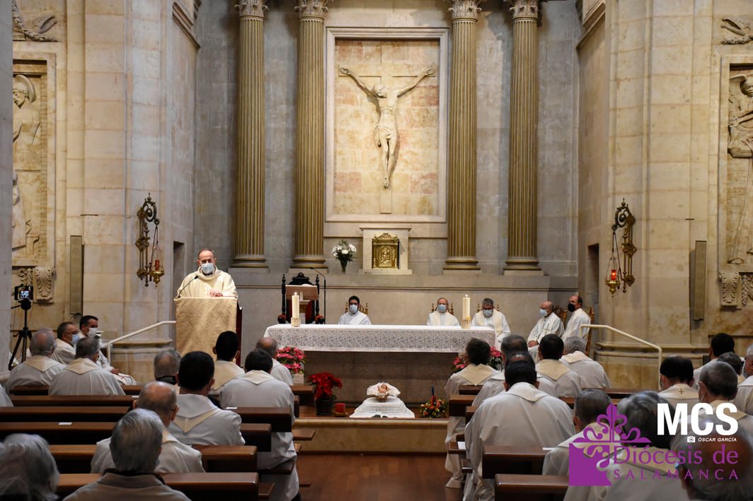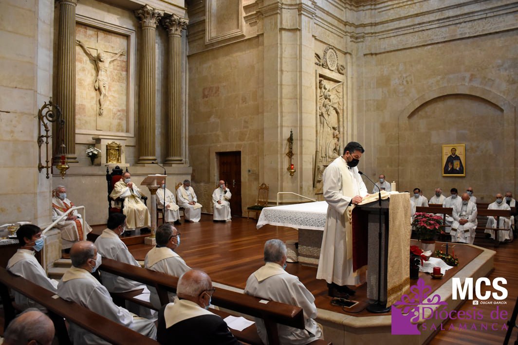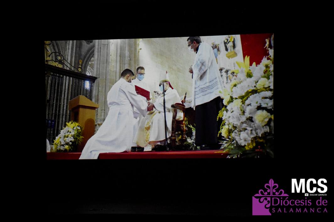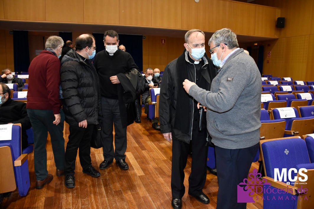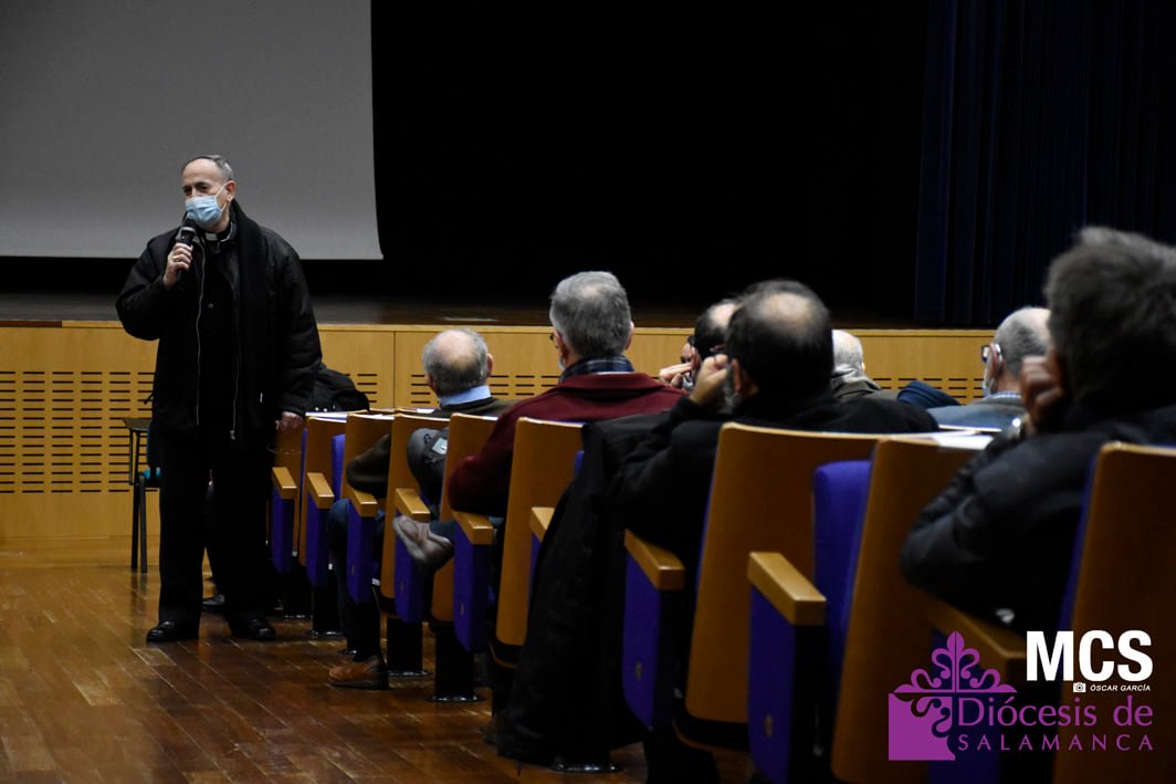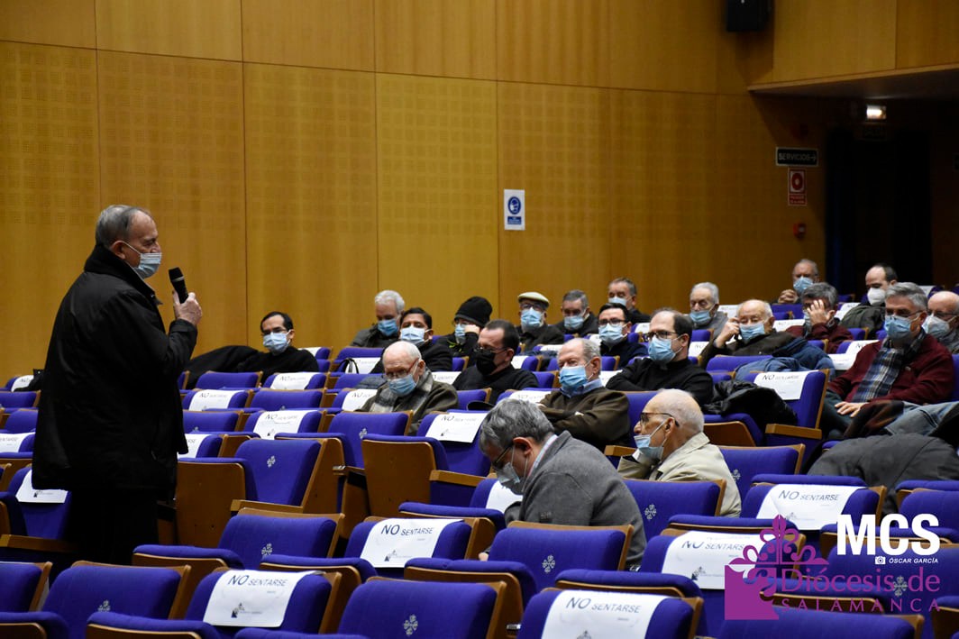 Un largo aplauso fue reflejo del agradecimiento del clero diocesano al que ha sido su pastor durante los últimos 18 años. En el auditorio de Calatrava se proyectó un sencillo documental donde se repasa la vida y la trayectoria del obispo y actual administrador apostólico, Mons. Carlos López, desde su localidad natal, en Papatrigo, sus años de formación, sus primeros destinos pastorales, o su llegada a Salamanca, en 2003, entre otros aspectos.