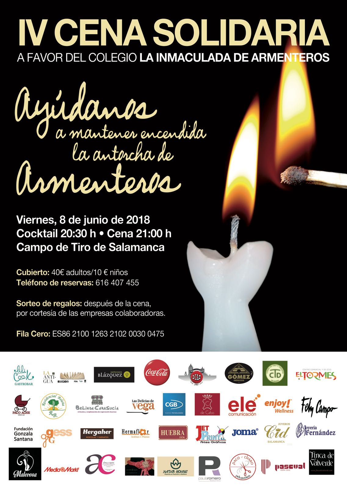 La cena tendrá lugar el viernes 8 de junio, a partir de las 20.30 horas en el Campo de Tiro de Salamanca. El precio del cubierto para adultos es de 40€ y para niños, 10€. Tras la cena habrá sorteo de regalos cortesía de las empresas colaboradoras. El teléfono de reserva es el 616 407 455.
