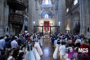 Una de las tradiciones más arraigadas es la participación en la eucaristía y en la procesión de los niños que han tomado la primera comunión este año. Los niños se ubicarán en la vía sacra de la Catedral Nueva. Los que quieran asistir tendrán que comunicarlo a través del número 605 990 414 (WhatsApp).