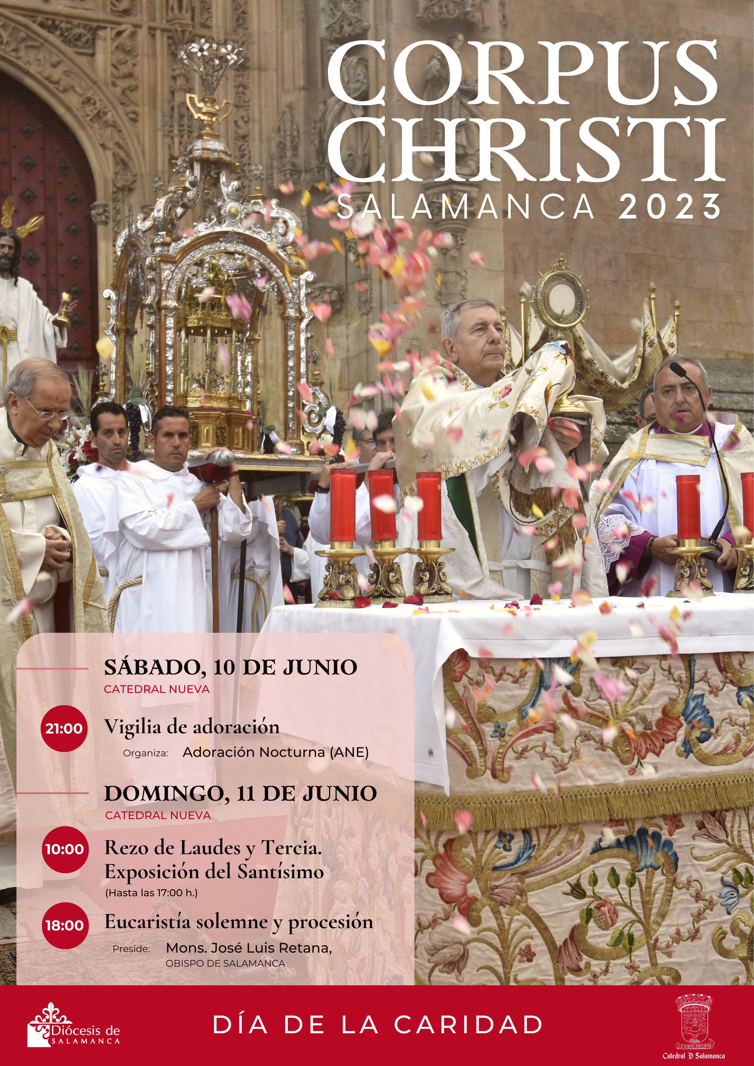 El Cabildo de la Catedral es el responsable de organizar todas las celebraciones litúrgicas que se celebran en la seo en torno a esta festividad. La primera de ellas tendrá lugar el sábado, 10 de junio, con una vigilia a cargo de la Adoración Nocturna, a las 21:00 horas, en la Catedral Nueva. Y el domingo, se rezará laudes y tercia a las 10:00 horas, y al finalizar, comenzará la exposición del Santísimo hasta las cinco de la tarde, para lo que se pide la colaboración de movimientos y adoradores en los diferentes turnos de vela.