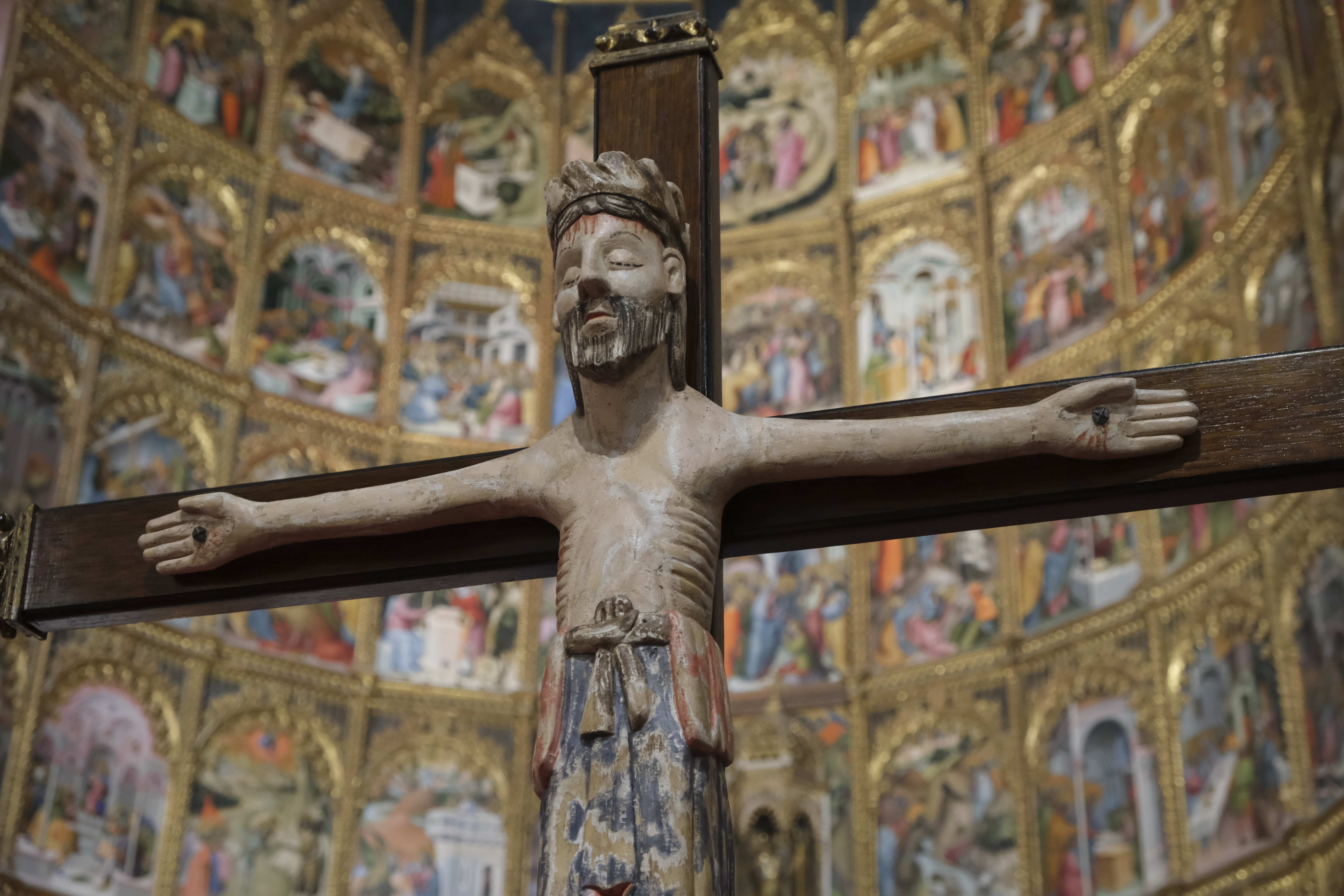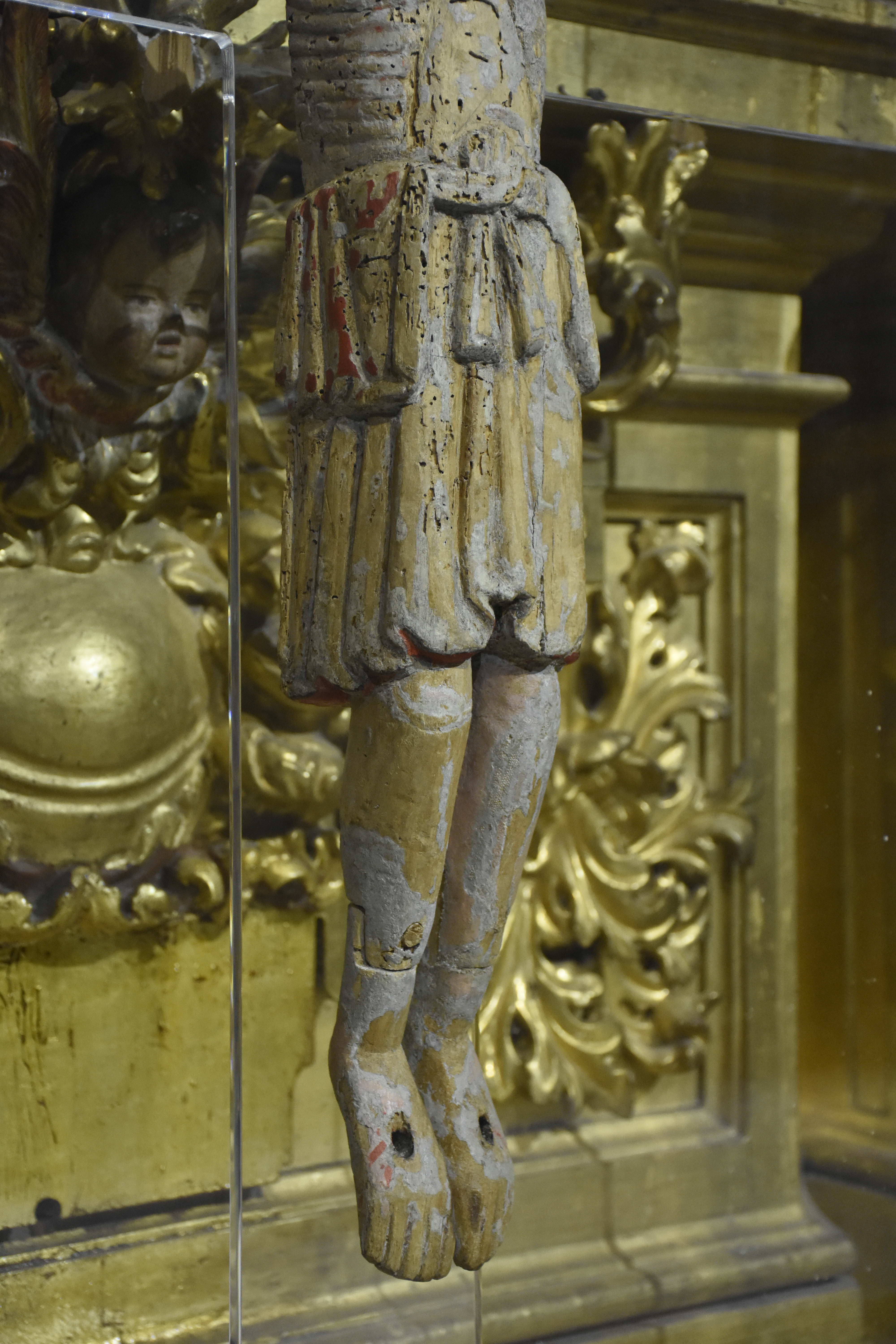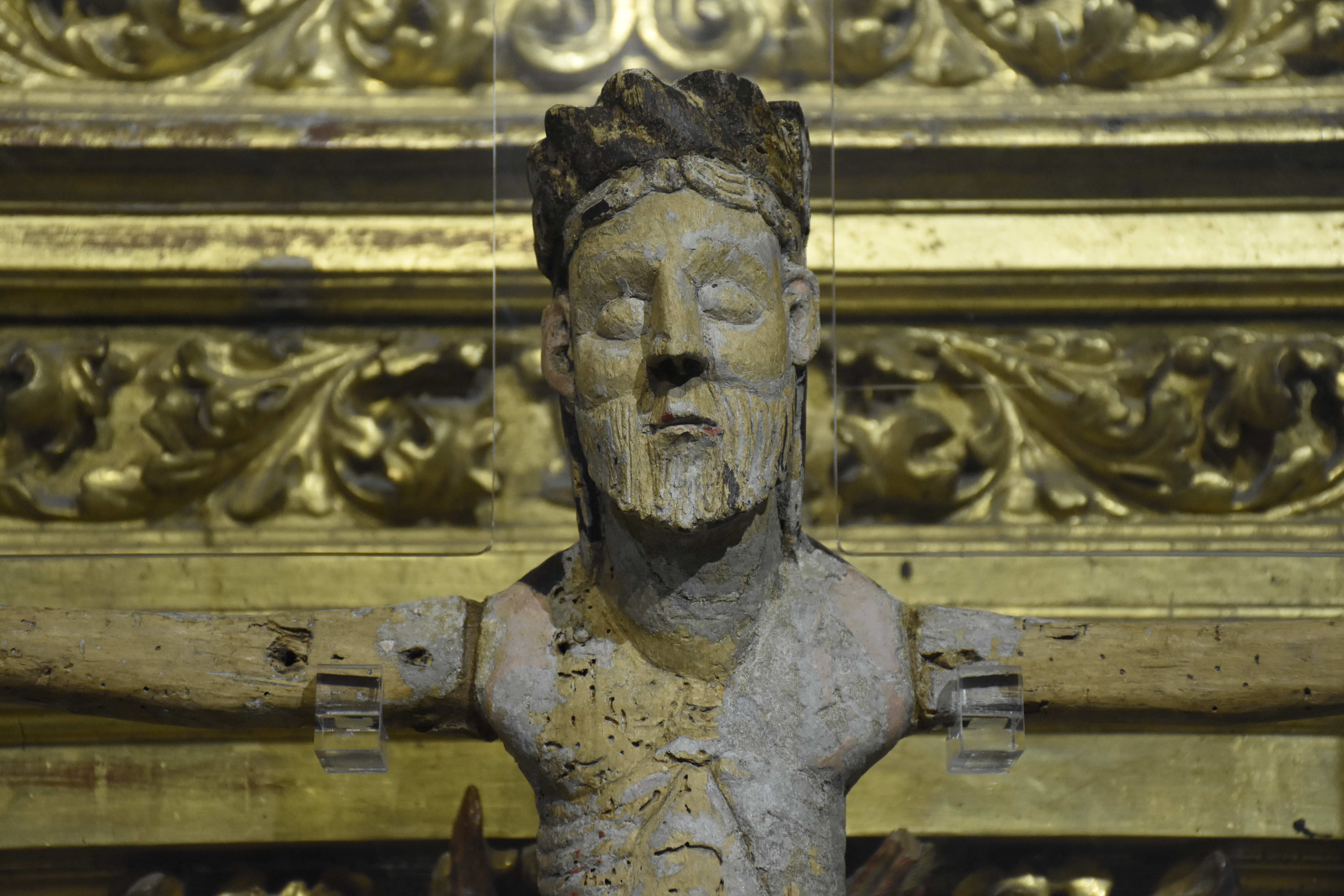 Cabe recordar que en las representaciones de ese tiempo, el Cristo solía estar con los ojos abiertos por la idea de Cristo Rey, está vivo. “Esta talla entronca con las imágenes con el Cristo de Carrizo o el de don Fernando y doña Sancha, y aparece crucificado con cuatro clavos, que están separados porque la iconografía de ese momento lo están representando así, y va a ser unos siglos más tarde cuando Cristo cruza los pies y ya aparece presentado solo con tres clavos”, relata este historiador del Arte.