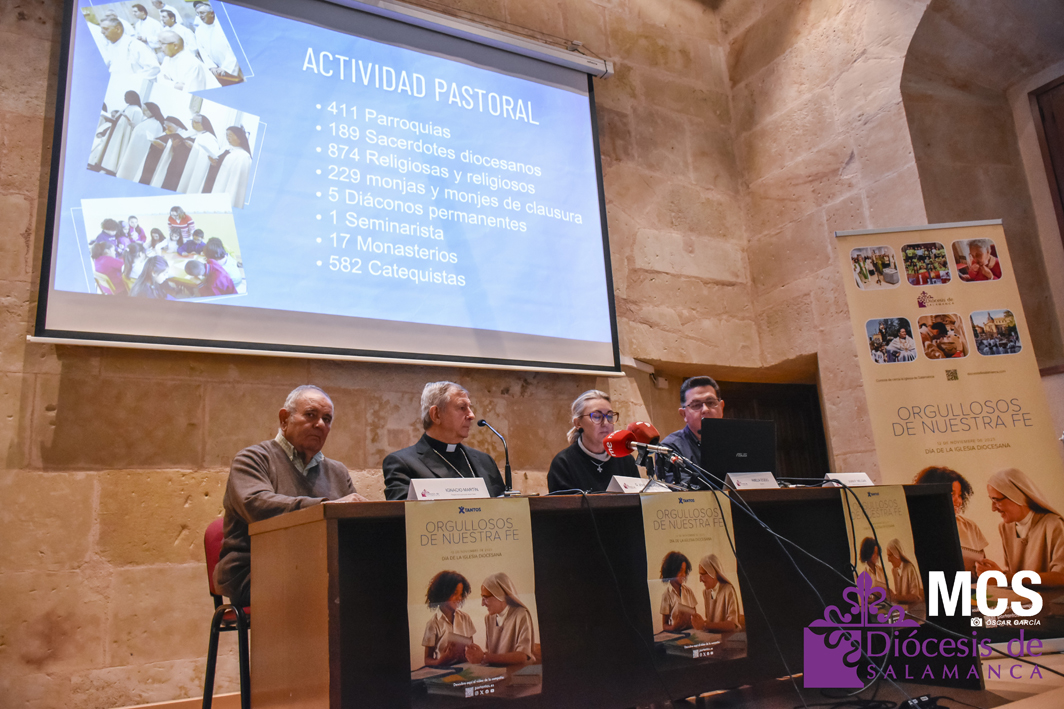 Otro de los pilares de la Diócesis de Salamanca es su actividad pastoral y evangelizadora, con 189 sacerdotes y un seminarista, repartidos en 411 parroquias. Cabe destacar la labor de los 582 catequistas y los 874 religiosos, 229 monjas y monjes de clausura, además de cinco diáconos permanentes, 143 misioneros, una familia en misión y 619 voluntarios que colaboran en la actividad caritativa de la Iglesia de Salamanca, entre otros. Además, en la diócesis se contabilizan un total de 17 monasterios.