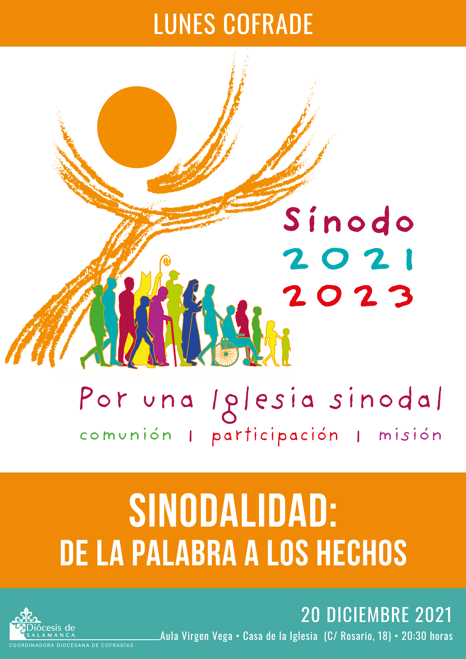 La Coordinadora diocesana de Cofradías celebrará el próximo 20 de diciembre una nueva sesión del Lunes Cofrade, a partir de las 20:30 horas, que en esta ocasión abordará la “Sinodalidad: de la Palabra a los Hechos”, con integrantes de la comisión del Sínodo para la fase diocesana.