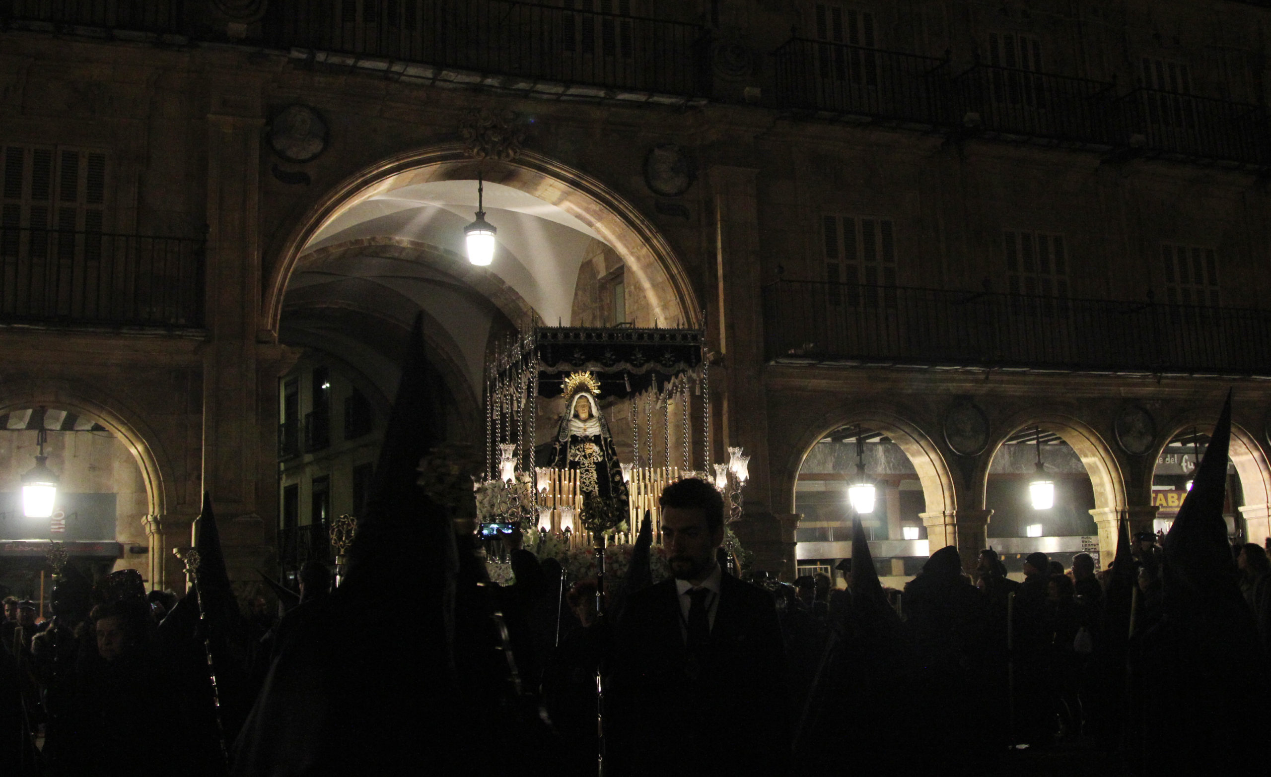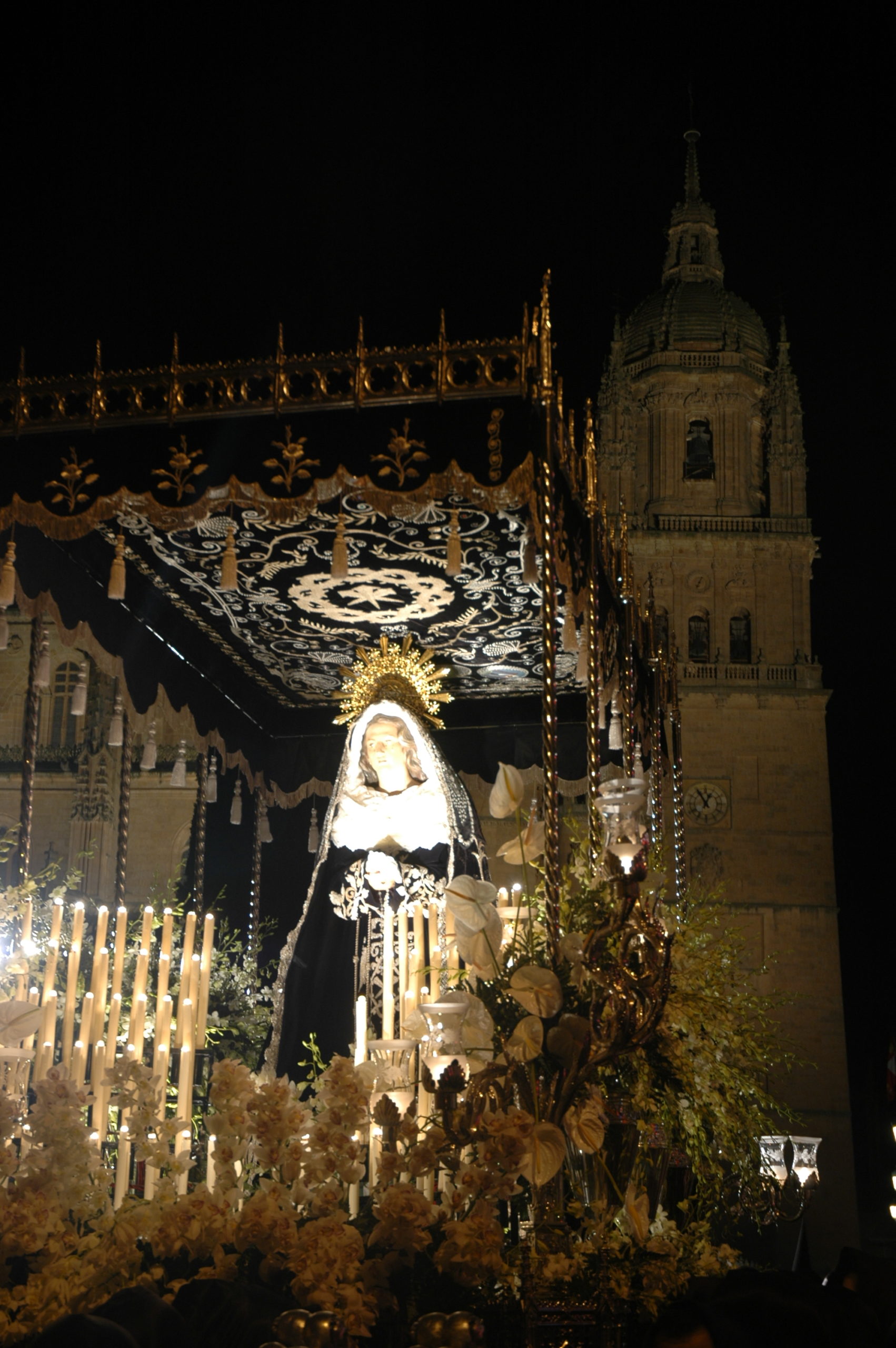 La noche del Sábado Santo se cubre de negro luto en la ciudad. Nuestra Señora de la Soledad abandona su capilla de la Catedral para recibir el calor del pueblo de Salamanca que la aguarda a las doce de la noche. La hermandad más numerosa acompaña a la Madre, bajo los sones de la Banda de Música de Alba de Tormes.