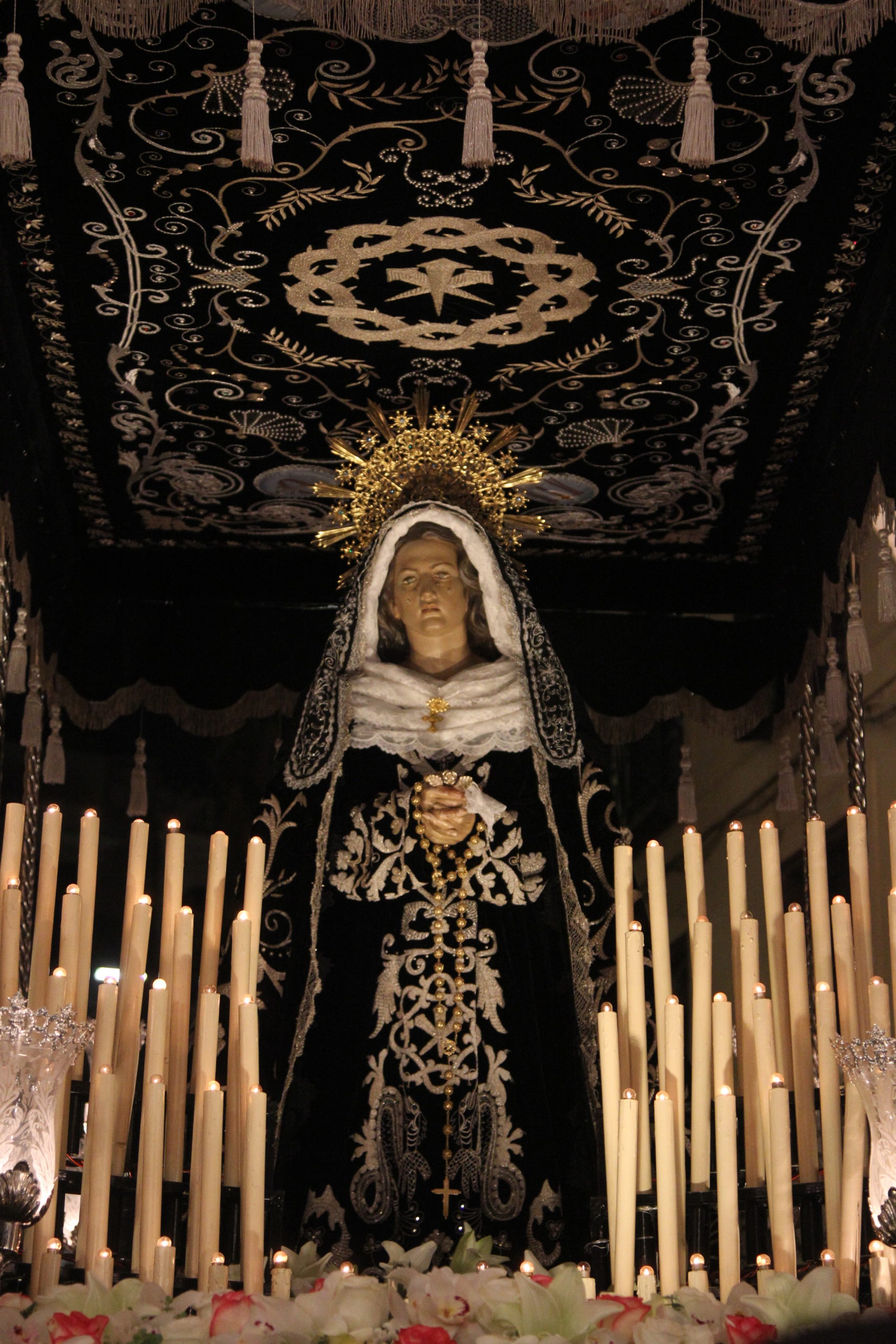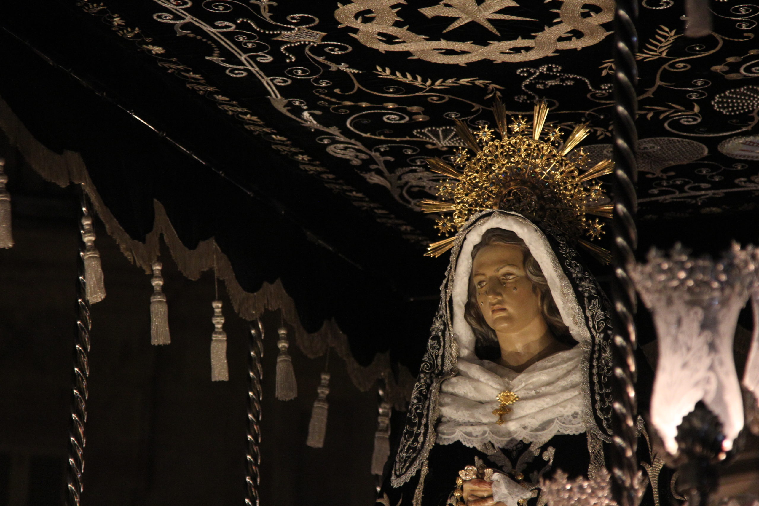 En la noche del Sábado Santo estrenarán un nuevo lampadario para el paso de palio de Nuestra Señora de la Soledad, “esperemos que os guste, porque el antiguo estaba ya un poco pasado”. De cara al futuro tienen la intención de realizar un nuevo paso para la Virgen, “porque este pesa muchísimo, y los hermanos pues cada año lo acusan más, sobre todo los que vamos cumpliendo años”. La carga la realizan en torno a 90 hermanos, todos hombres, “aunque no tenemos ningún inconveniente a que lo hagan las mujeres también”.