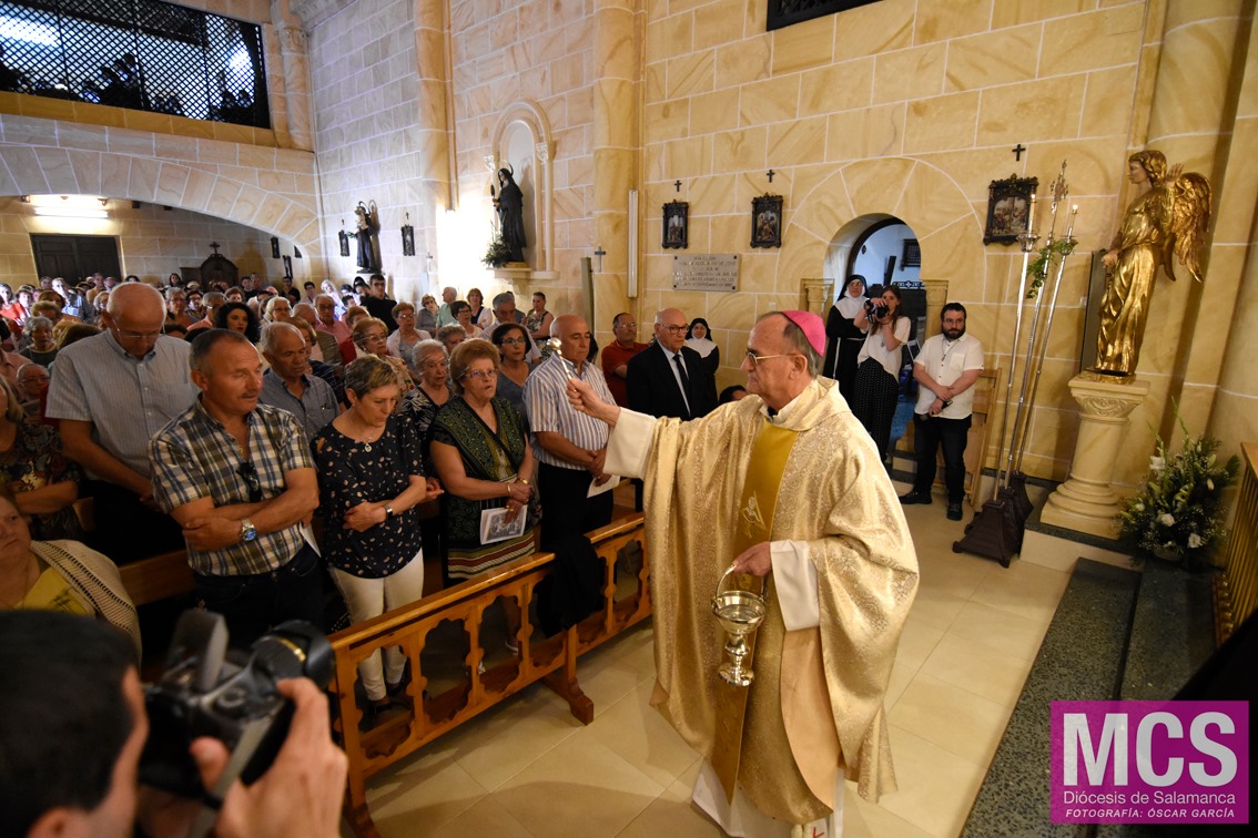 Ya por la tarde, a las 16:30 horas, los actos continuaron en la parroquia de Cantalapiedra, donde se recordaron los inicios de la fundación del monasterio, con un rato de oración, así como la consagración a la Virgen de la Misericordia, trasladada para la ocasión desde la ermita. Por último, a las 17:20 horas, se proyectó un audiovisual en el monasterio para repasar la trayectoria de esta comunidad religiosa en Cantalapiedra, con fotografías antiguas y actuales.