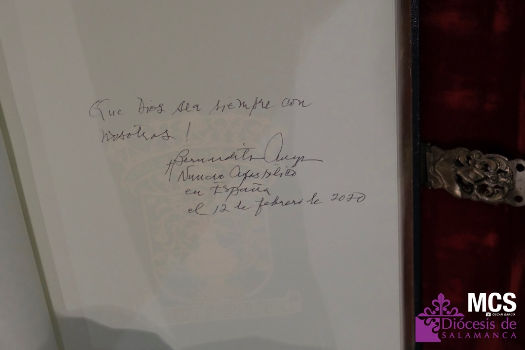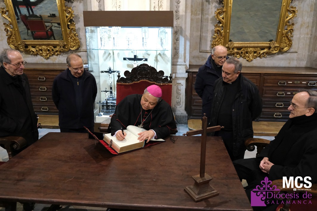 La visita del Nuncio tuvo lugar tras su intervención en la Universidad Pontificia de Salamanca, donde pronunció una conferencia titulada ‘La Santa Sede y las relaciones internacionales’, con ocasión de las fiestas de la Facultad de Derecho Canónico en honor a San Raimundo de Peñafort.
