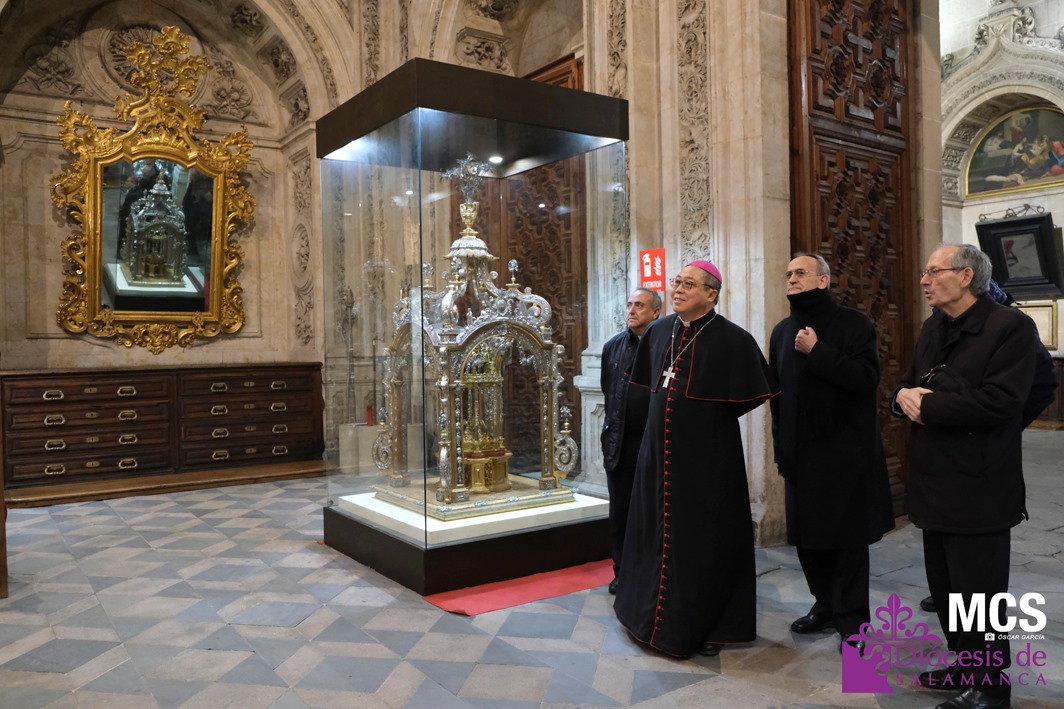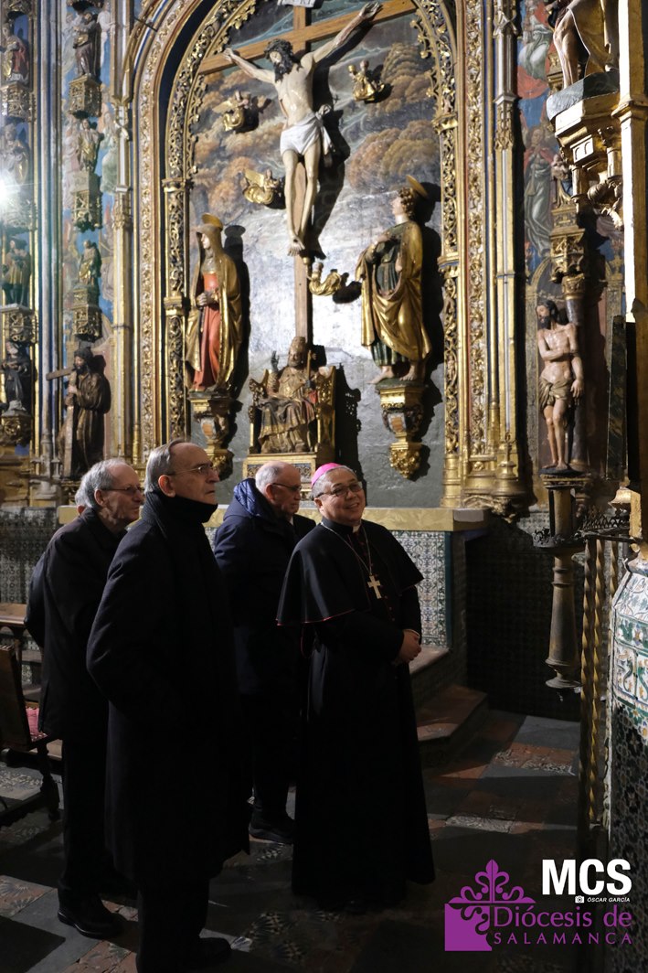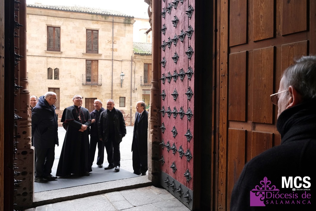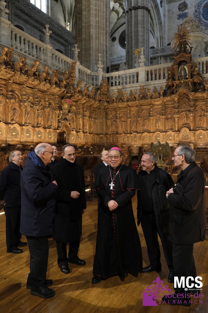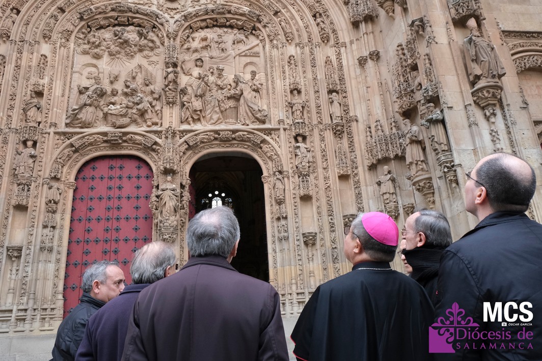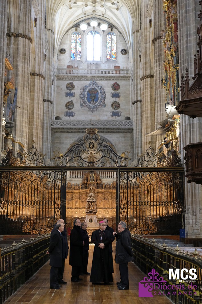El Nuncio Apostólico en España, Monseñor Bernardito Cleopas Auza, junto con el consejero de la Nunciatura Apostólica, Monseñor Daniele Liessi, visitaron el pasado 12 de febrero la Catedral de Salamanca acompañados por el obispo de Salamanca, Mons. Carlos López, el deán del Cabildo Catedral, Florentino Gutiérrez, y de los canónigos Antonio Matilla, José Luis Sánchez Moyano y Jesús Terradillos.