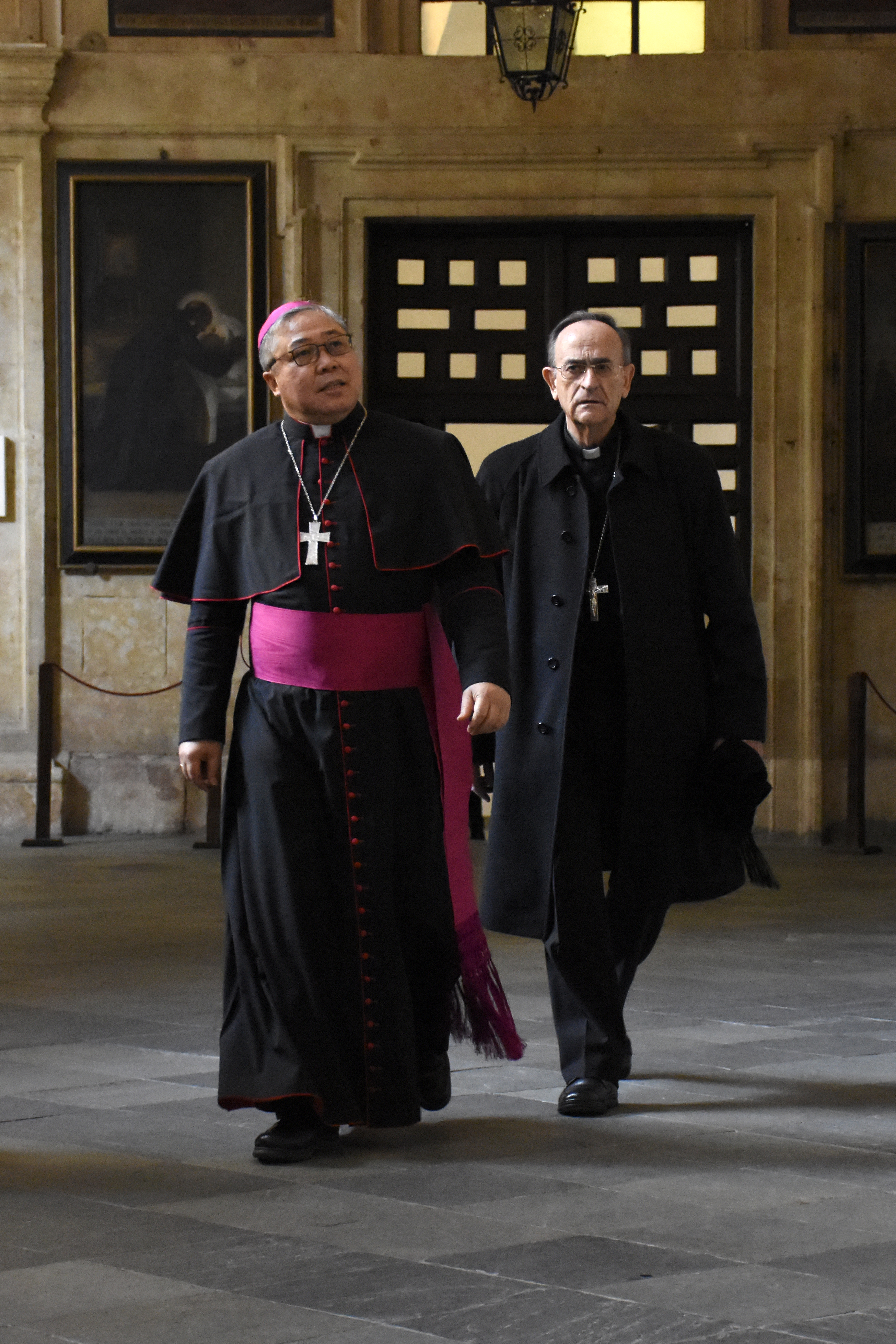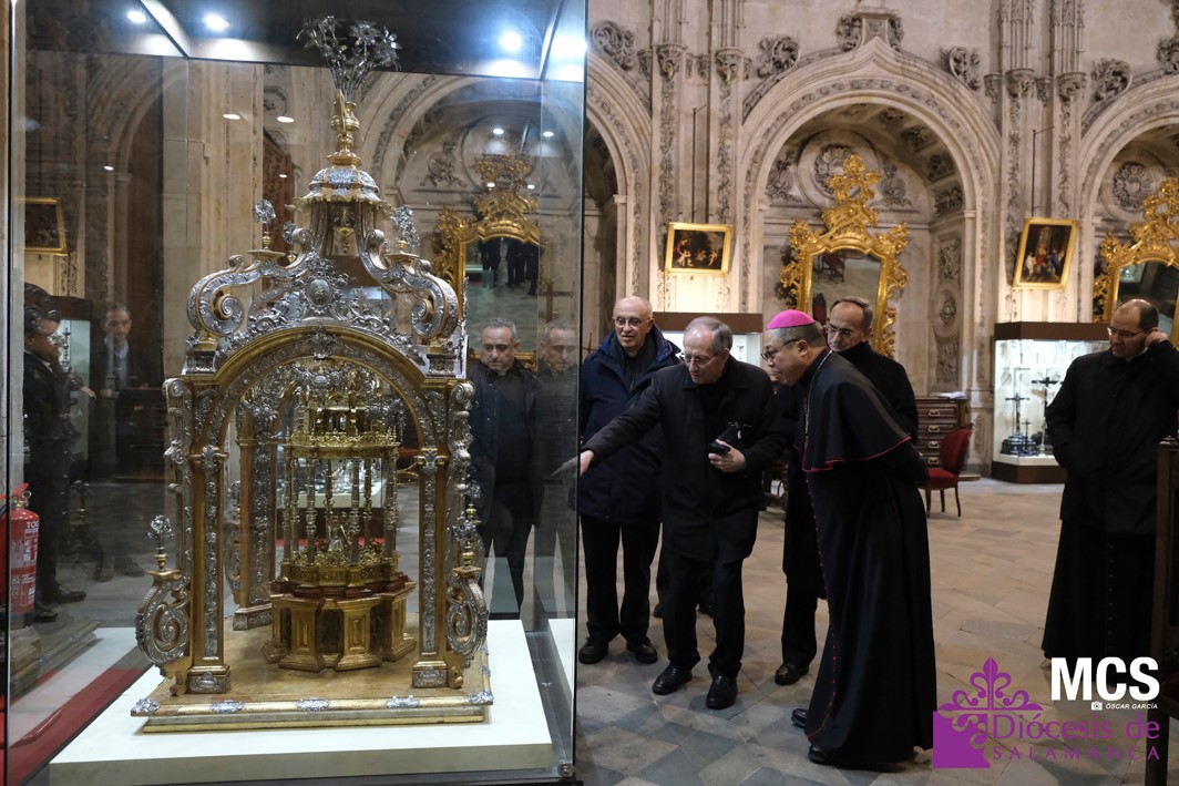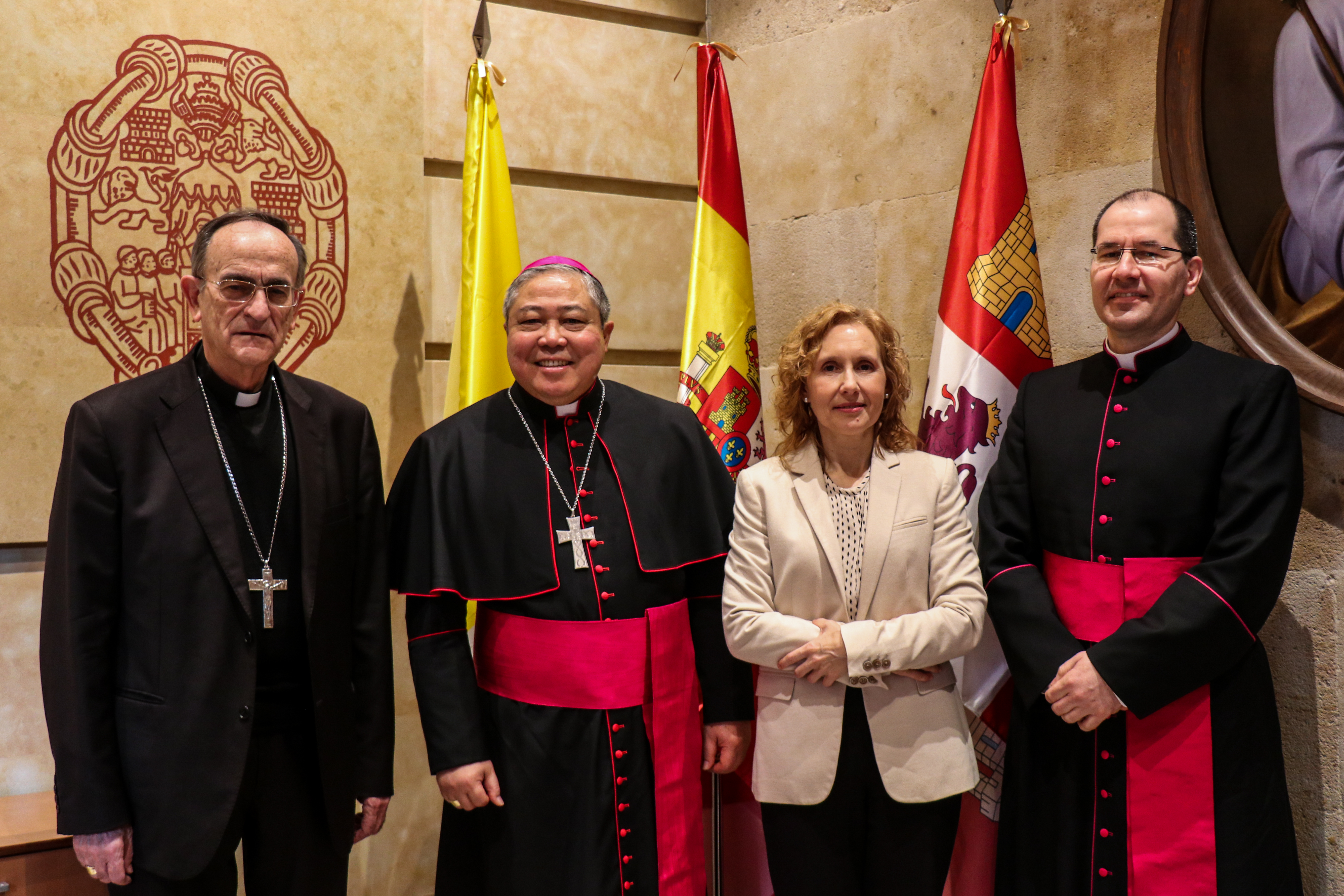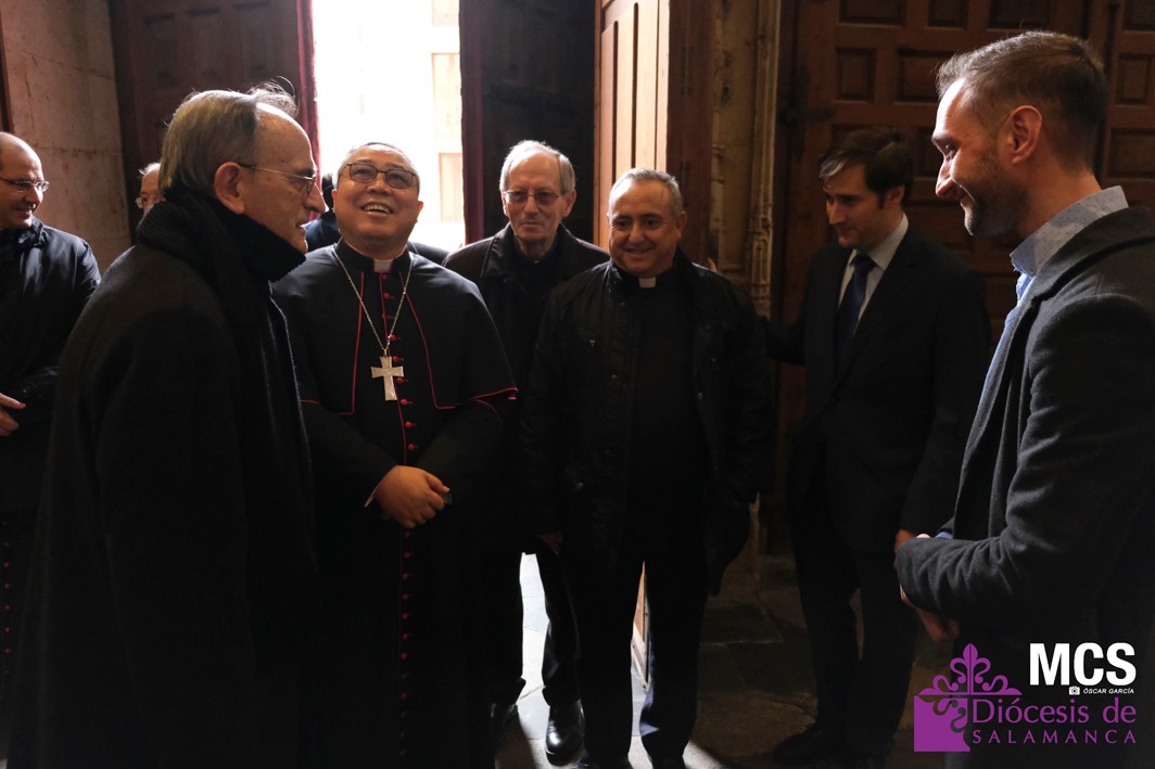 El Nuncio Apostólico en España, Monseñor Bernardito Cleopas Auza, junto con el consejero de la Nunciatura Apostólica, Monseñor Daniele Liessi, visitaron el pasado 12 de febrero la Catedral de Salamanca acompañados por el obispo de Salamanca, Mons. Carlos López, el deán del Cabildo Catedral, Florentino Gutiérrez, y de los canónigos Antonio Matilla, José Luis Sánchez Moyano y Jesús Terradillos.