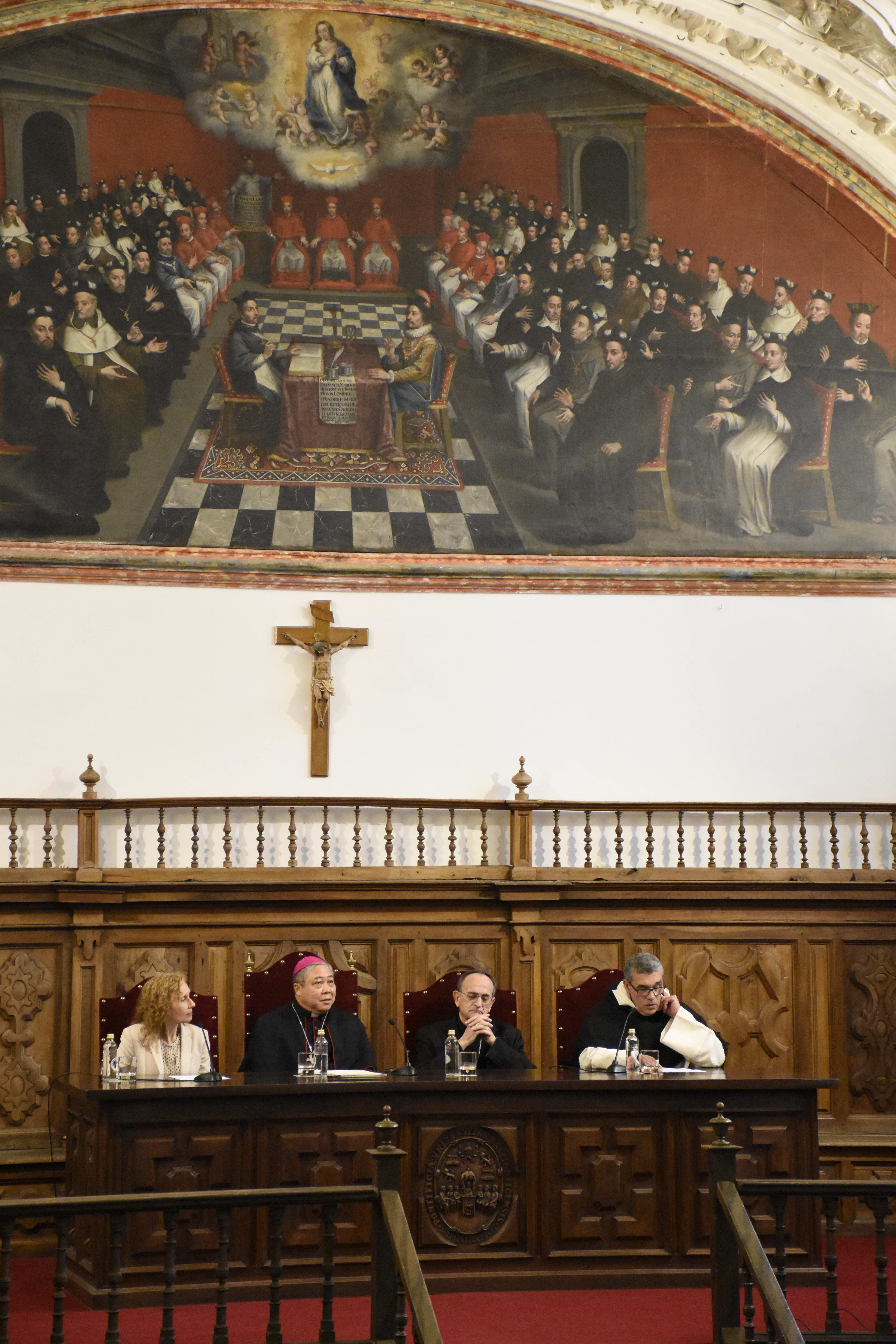 Dicho acto académico estuvo precedido de una eucaristía en la capilla de la UPSA, presidida por el Nuncio Apostólico y concelebrada por el obispo de Salamanca y el administrador apostólico de Ciudad Rodrigo, Mons. Jesús García Burillo.