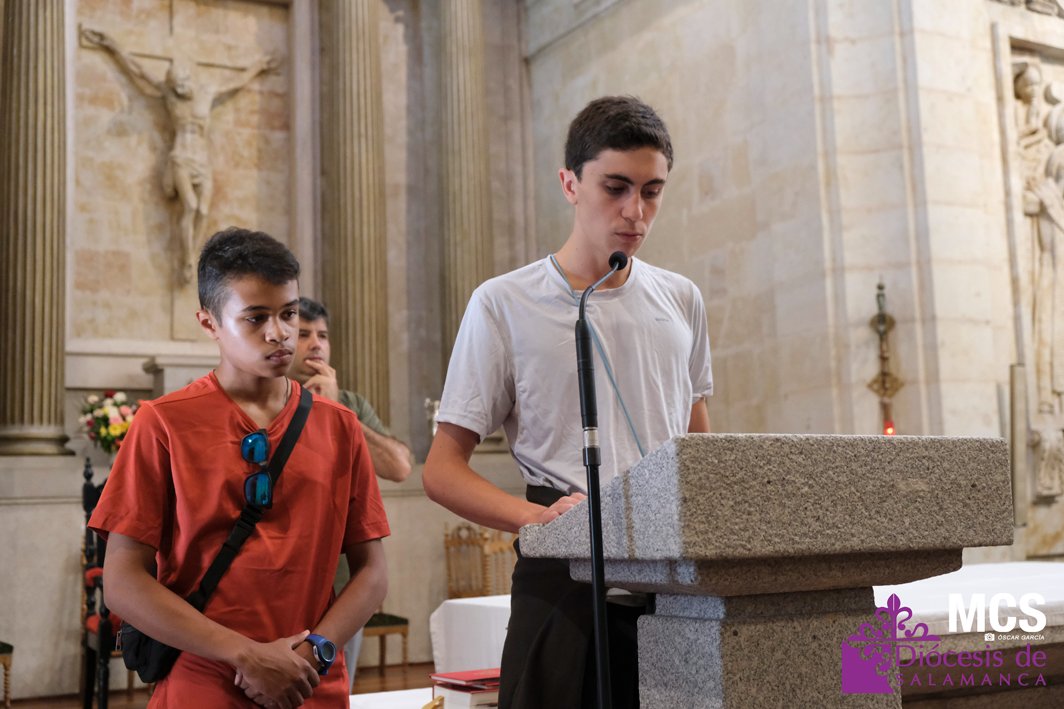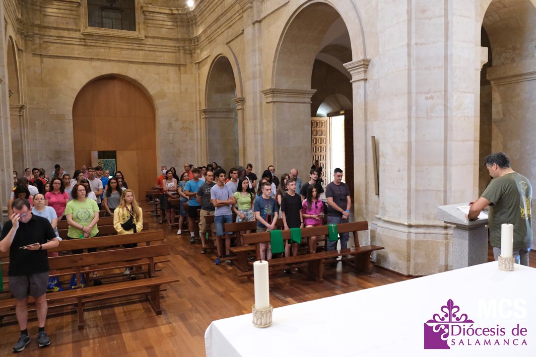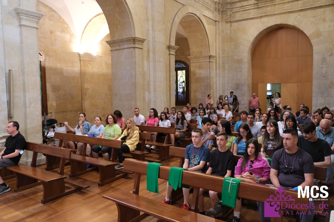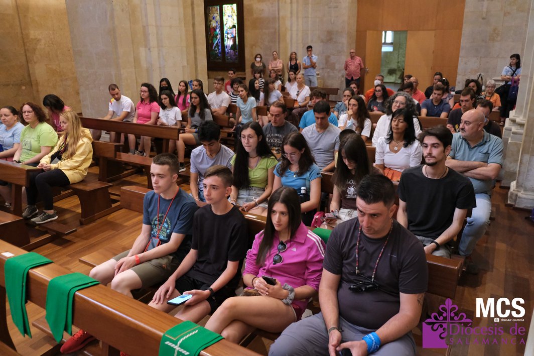 La celebración del envío ha tenido lugar en la capilla mayor de la Casa de la Iglesia, donde se han dado cita los jóvenes peregrinos acompañados de sus padres, el vicario de pastoral de la Diócesis de Salamanca, Policarpo Díaz, y el responsable de la Pastoral Juvenil diocesana, Andrés González.