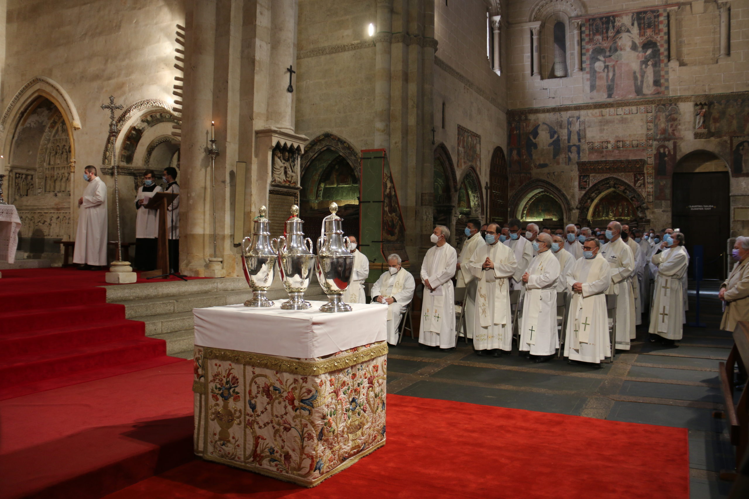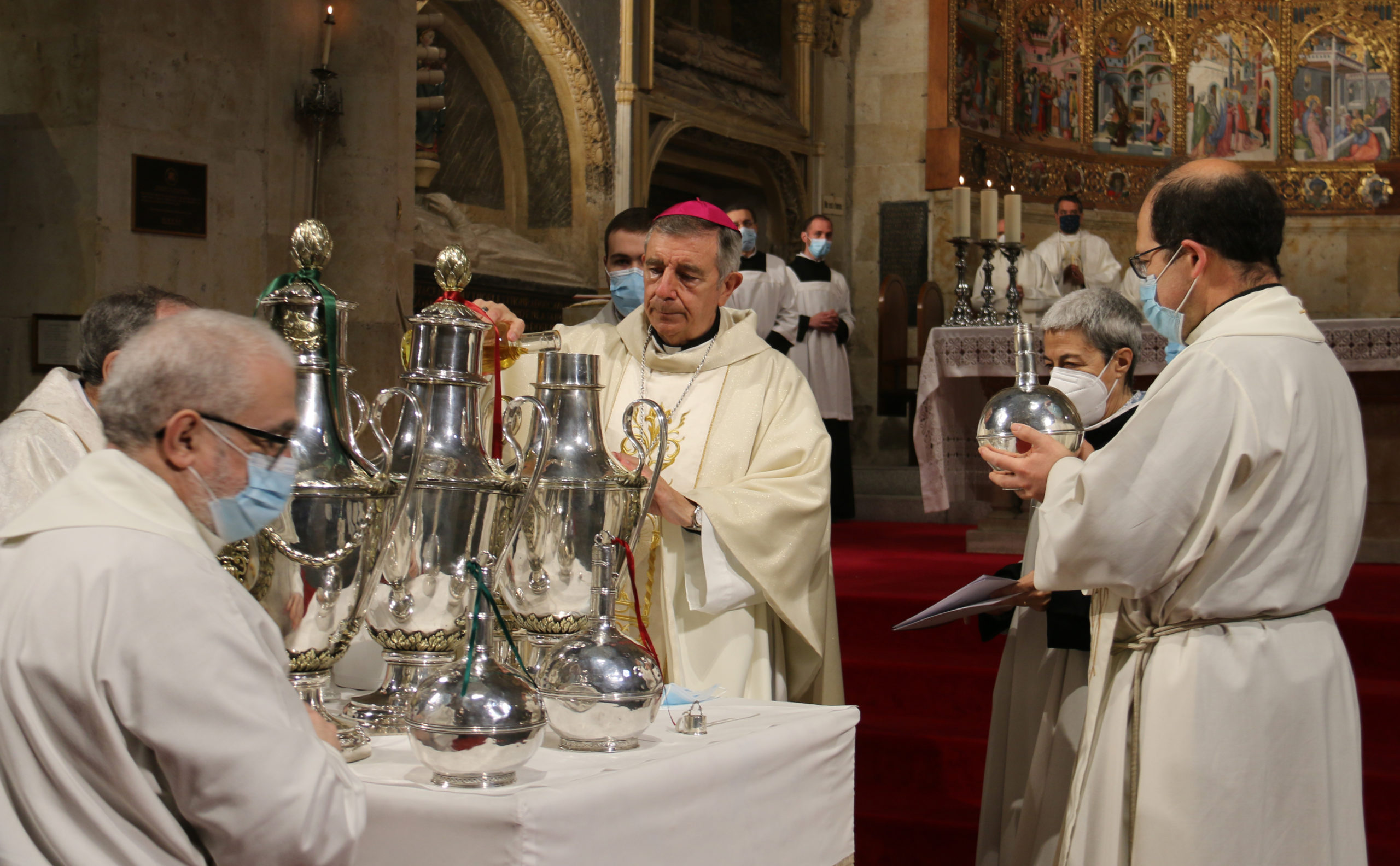 En cuanto a la bendición de los óleos y la consagración del Crisma, considera que “nos sitúa ante la urgente necesidad de acompañar a tantos hermanos que necesitan hoy el pastoreo del que nos ha hablado la lectura de Isaías y el Evangelio”, porque es consciente de que hoy, “las heridas de nuestros hermanos, las cadenas de sus muchas esclavitudes, sus cegueras, el desgarro de sus corazones, nos reclaman con audacia que seamos un anuncio de Buena Noticia que distribuye el bálsamo y el consuelo del Señor a quienes lo necesitan”.