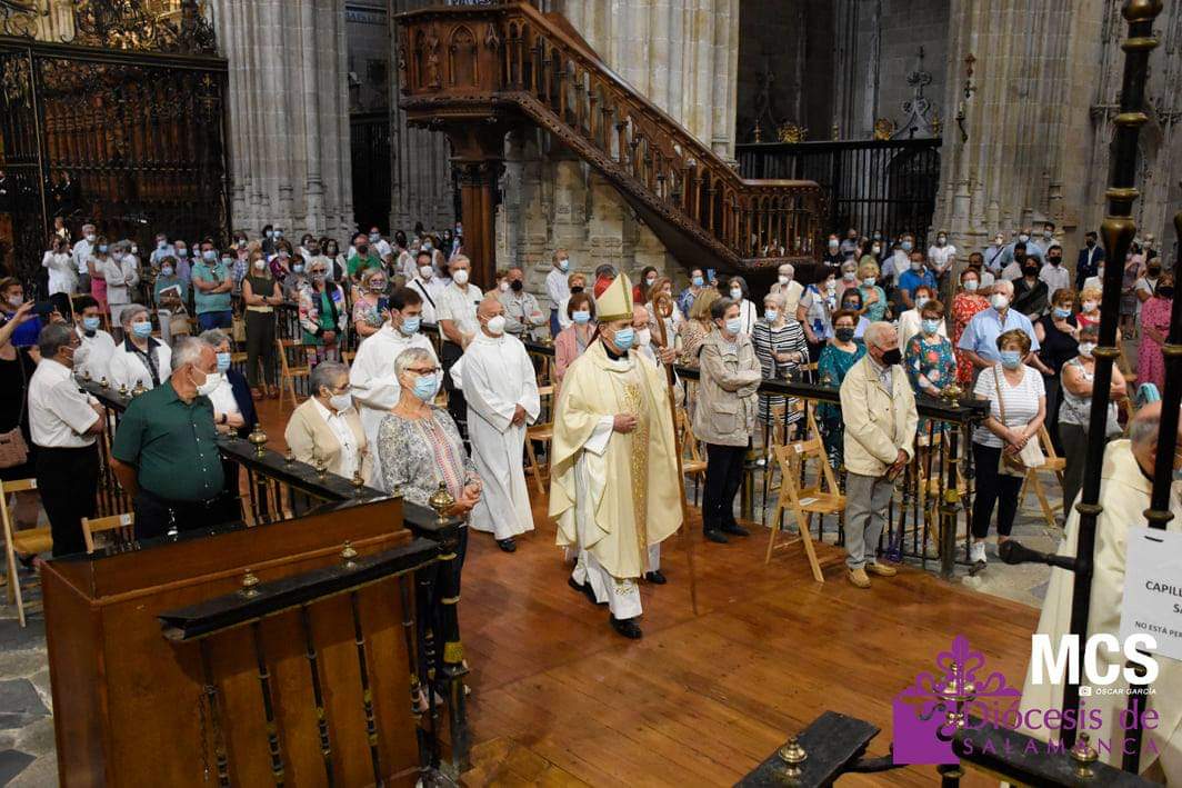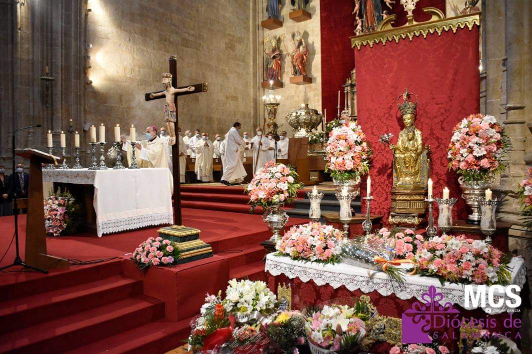 En su homilía ha recordado que veneramos a la Virgen de la Vega “patrona de nuestra ciudad, en la fiesta de la Natividad de María” y que la celebración de su nacimiento “nos hace actual a sus hijos la gracia de la salvación”. En su prédica, Don Carlos ha pedido por la intercesión de la Virgen de la Vega “la asistencia del Espíritu Santo para acoger con gozosa esperanza y renovado aliento evangelizador la convocatoria que el Papa Francisco ha dirigido a toda la Iglesia para tomar parte activa en el Sínodo de los Obispos“. Un sínodo que abordará el tema: “Por una Iglesia sinodal: comunión participación y misión” y que se abrirá en Roma los días 9 y 10 de octubre, el 17 de octubre a nivel diocesano y que concluirá en Roma en octubre de 2023.