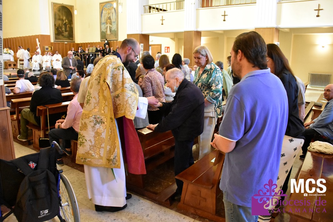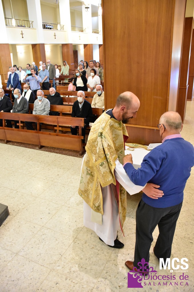 A la celebración acudieron familiares y amigos de Pepe; miembros de las comunidades parroquiales de San Mateo y Santo Tomás de Villanueva, en las que ha colaborado como catequista; así como de las comunidades a las que sirve en la actualidad como ministro extraordinario de la eucaristía, Bercimuelle, Gallegos de Solmirón y La Tala. En la asamblea también se encontraban los religiosos agustinos a los que Pepe asiste como gerocultor en su residencia y sus compañeros de trabajo.