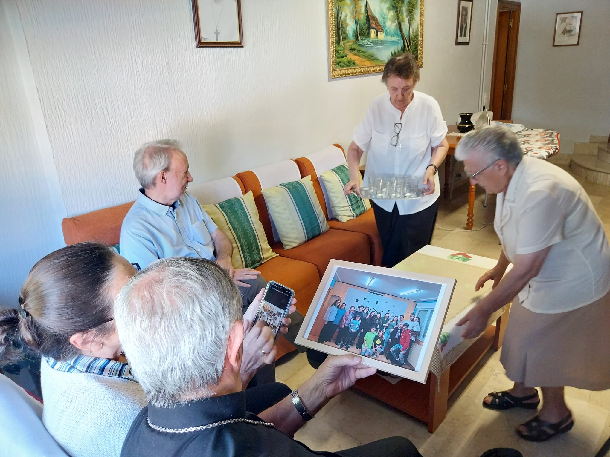 Recientemente había estado con las Hijas de San Camilo, con motivo de una misa de acción de gracias por sus bodas de oro en Santa Marta. En esta ocasión, conoció las casas de las Cruzadas Evangélicas, los Padres Paúles, las Carmelitas Teresas de San José y las Siervas Seglares de Jesucristo Sacerdote. En cada comunidad, tuvo la oportunidad de conocer a los hermanos y hermanas, y de compartir conversación sobre su historia y su vida actual, agradeciendo todos ellos su presencia cercana.