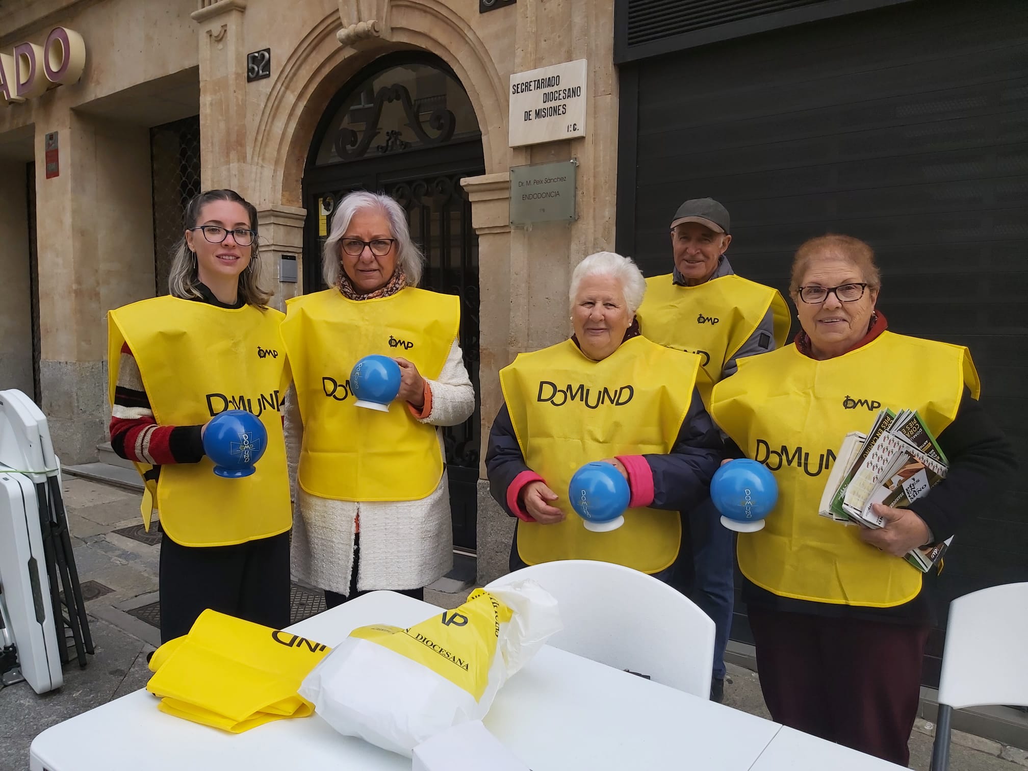 Al concluir la celebración, niños y niñas acompañados por sus profesores de Religión, junto a un grupo de voluntarios del Servicio diocesano de Misiones, salieron a las calles de la ciudad con huchas del Domund para recaudar fondos destinados a las misiones y visibilizar la labor de los misioneros.