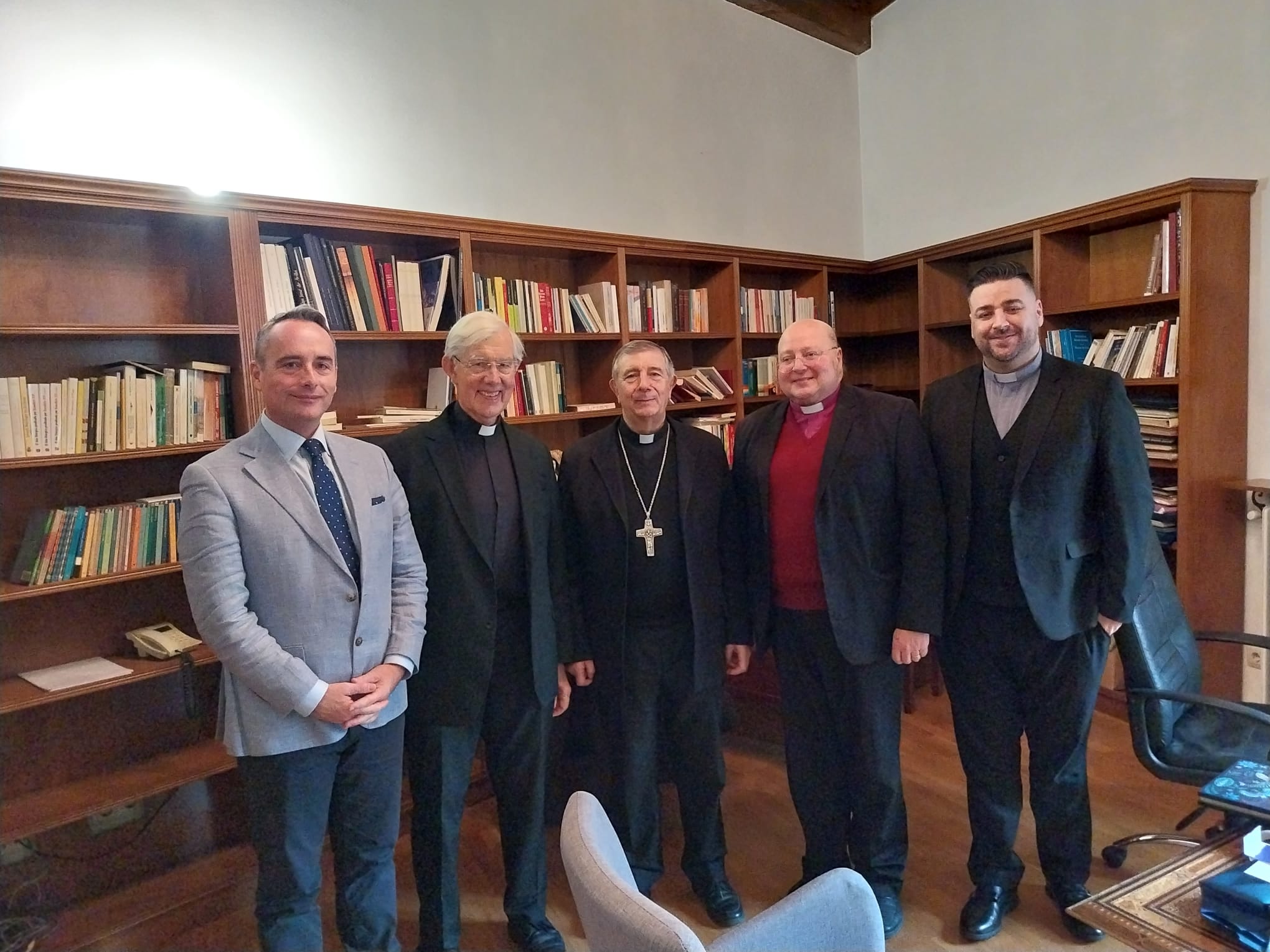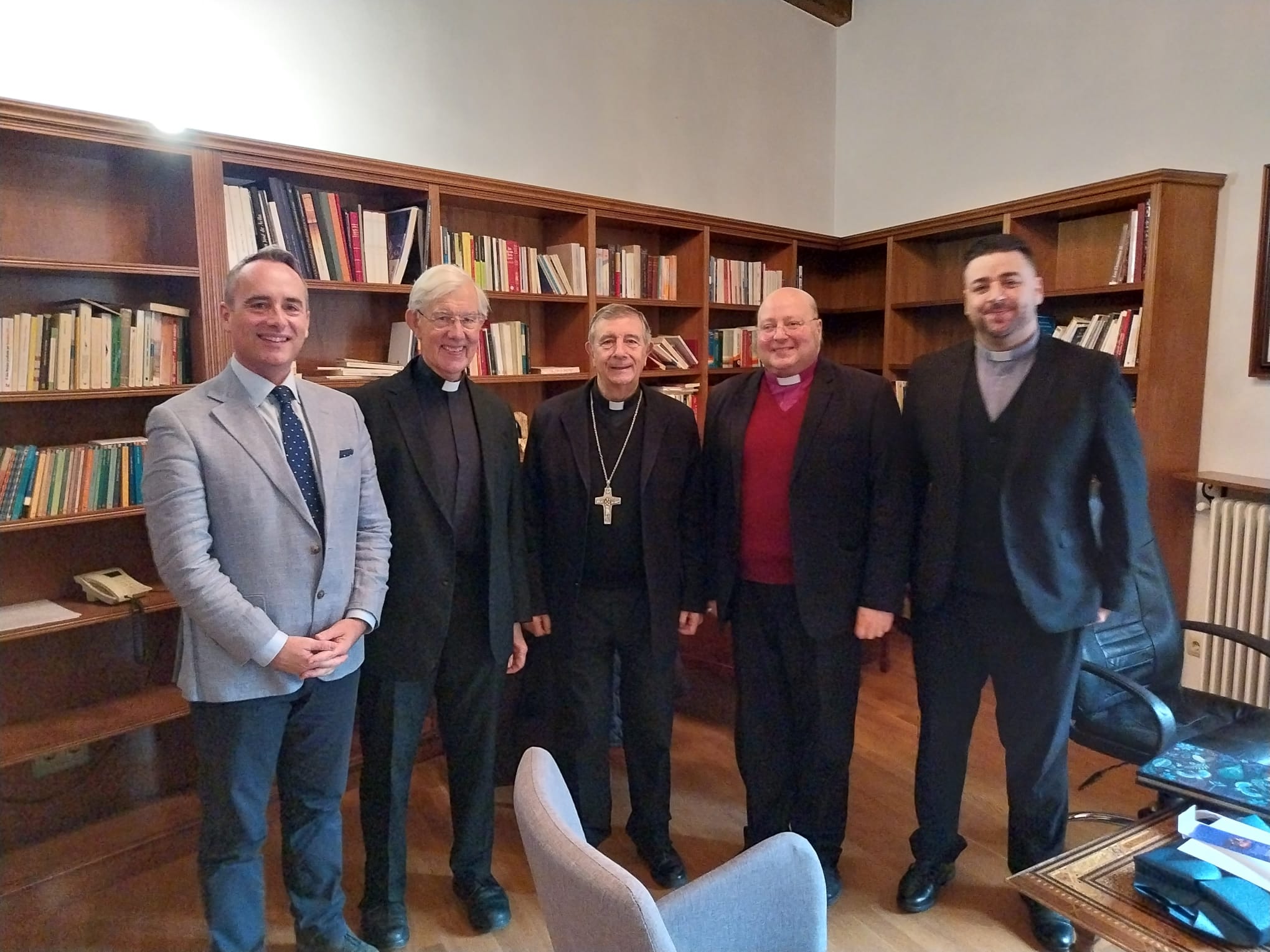 El obispo de Salamanca, Mons. José Luis Retana, ha recibido este sábado, 13 de enero, al decano emérito de Canterbury, Robert Willis, quien visita estos días la ciudad. En este encuentro cordial, Willis estuvo acompañado, entre otros, por el obispo anglicano Carlos López Lozano, Martin Flecher y el pastor Rubén Legidos, responsable de la parroquia de Santo Tomás Cantuariense cedida por la Diócesis de Salamanca a la iglesia anglicana local. Este gesto refleja la excelente relación existente entre ambas confesiones cristianas.
