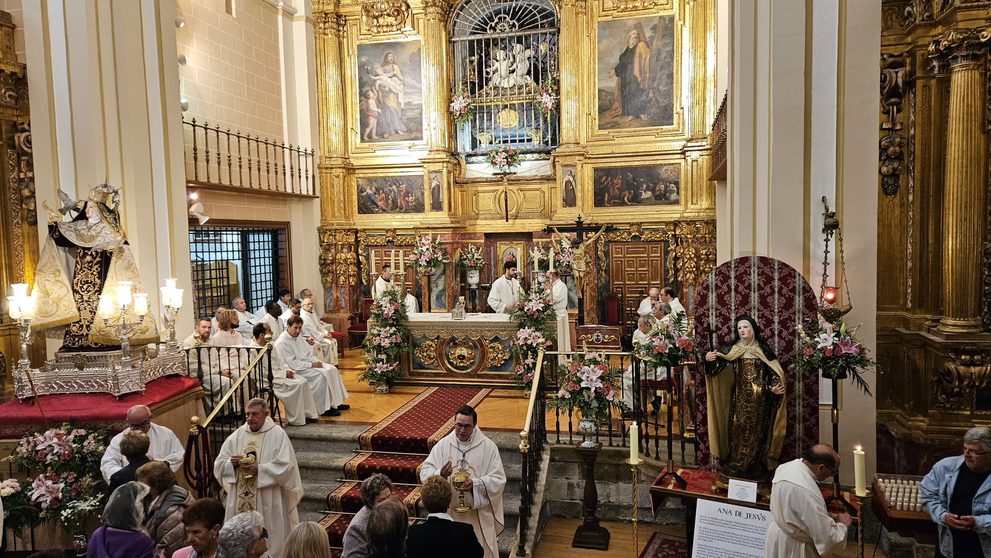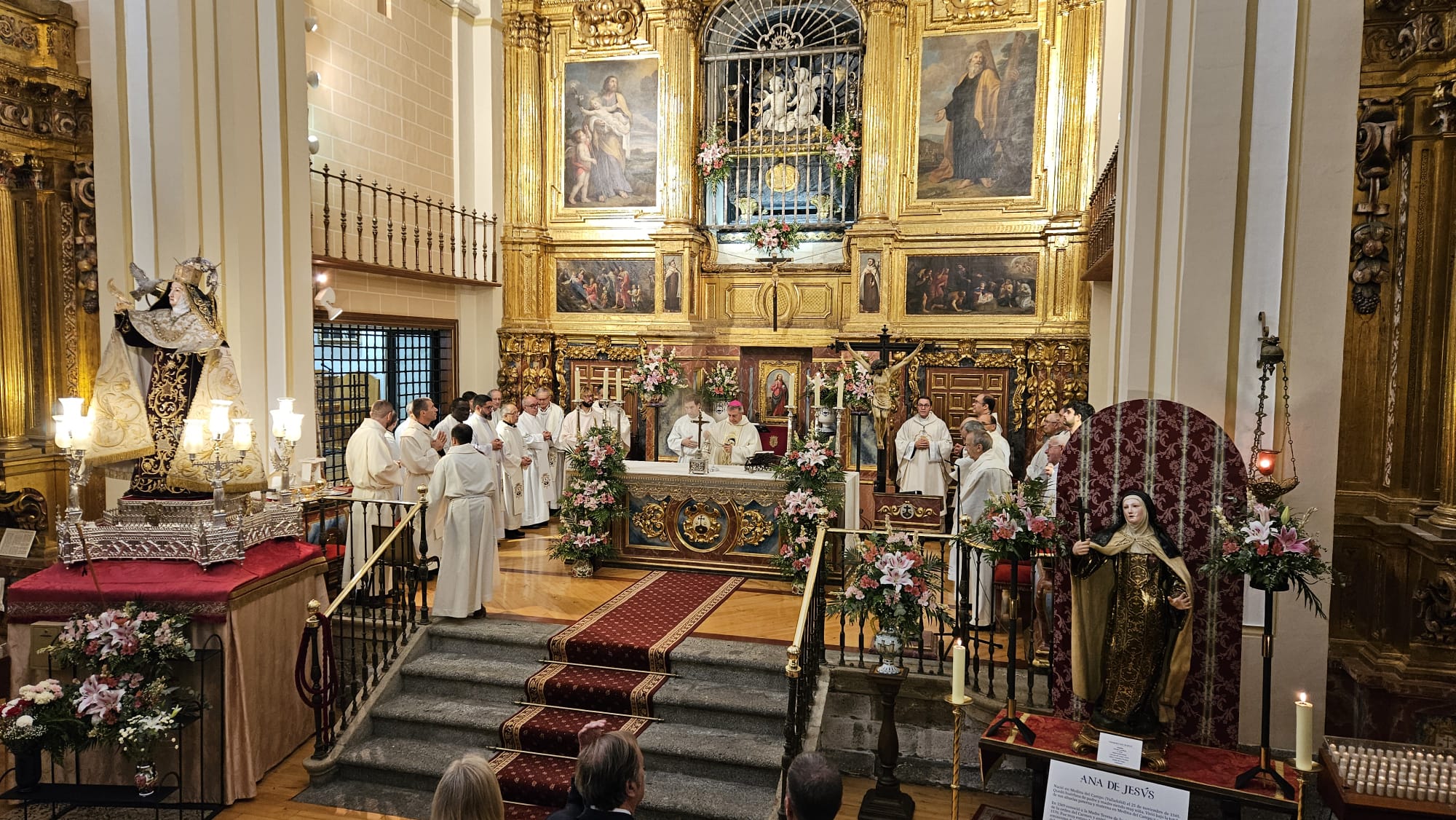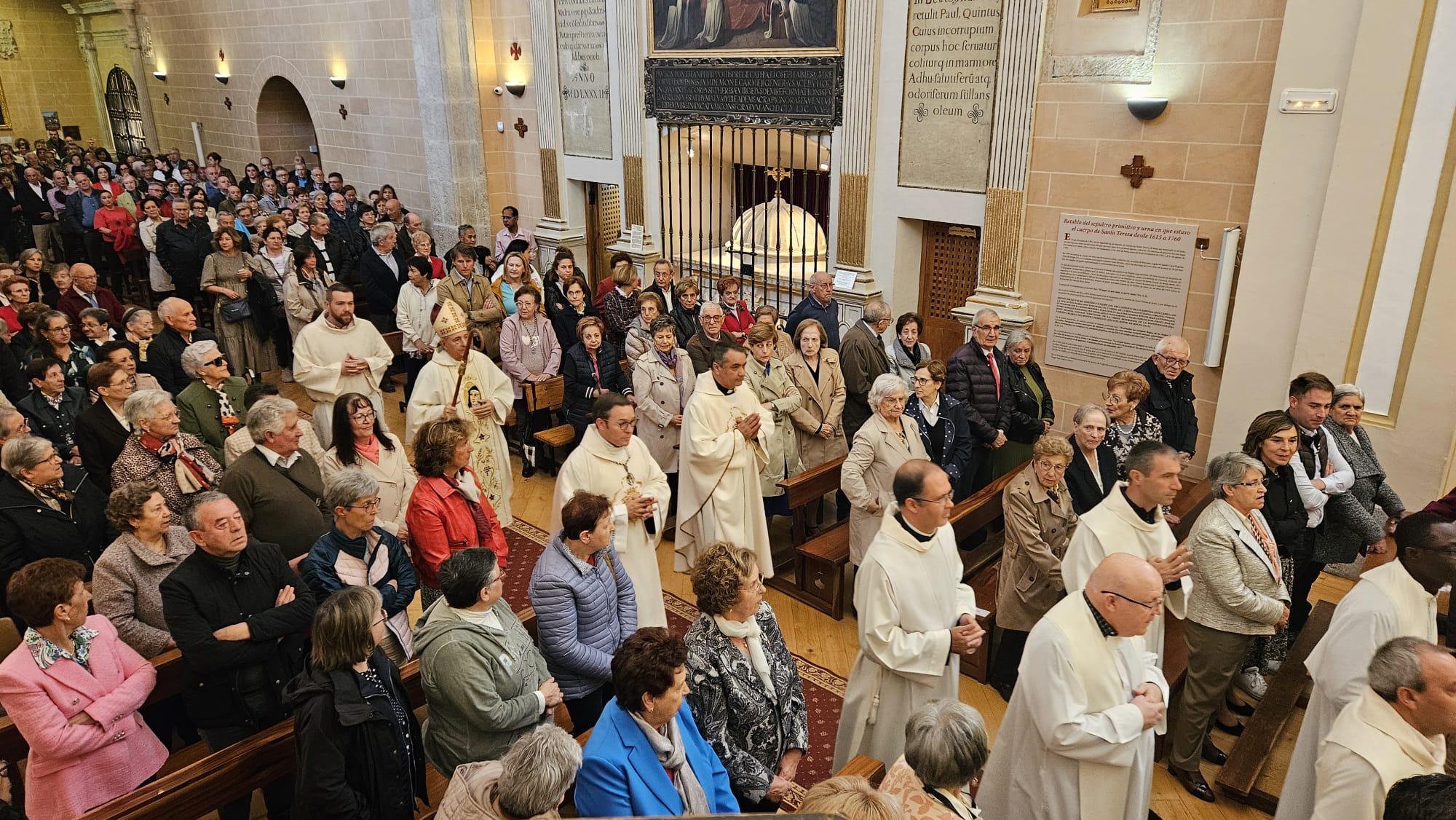 La iglesia de la Anunciación de Nuestra Señora, en Alba de Tormes, acogió este martes, 15 de octubre, la celebración solemne de la fiesta de Santa Teresa de Jesús, patrona de la Diócesis de Salamanca y de Alba. La misa pontifical que presidió a mediodía, el obispo de Salamanca, Mons. José Luis Retana, concelebrada por sacerdotes diocesanos y religiosos Carmelitas y Reparadores, congregó a numerosos fieles y autoridades civiles y militares llenando el templo donde se custodia el sepulcro de la santa y fundadora del Carmelo, para conmemorar su vida y legado.