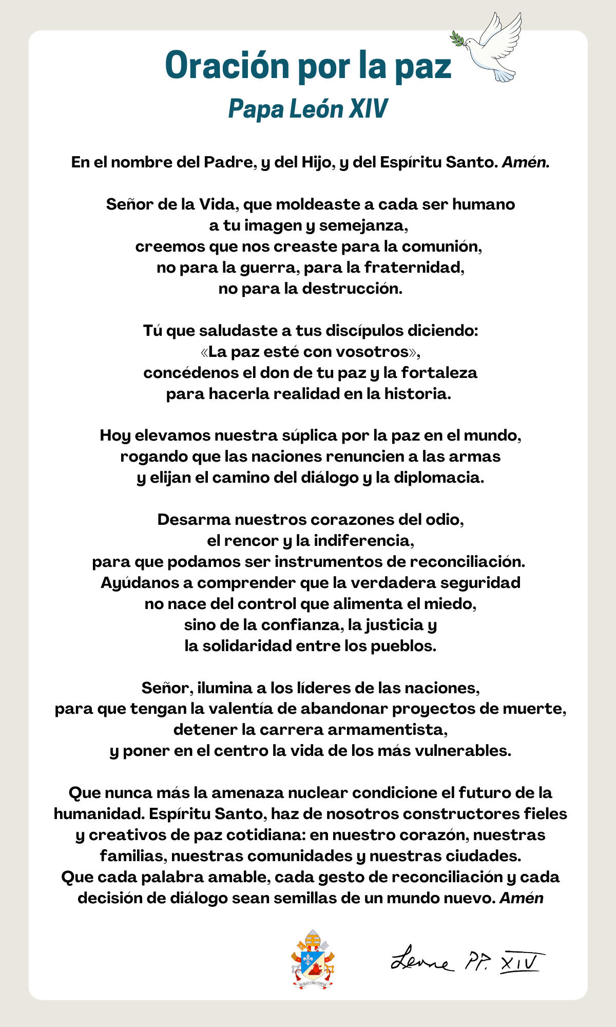 Con esta convocatoria, la Iglesia diocesana de Salamanca se une a la propuesta de la Conferencia Episcopal Española y a la intención de oración del papa León XIV para este mes de marzo, en la que pide a los cristianos rezar «por el desarme y la paz».