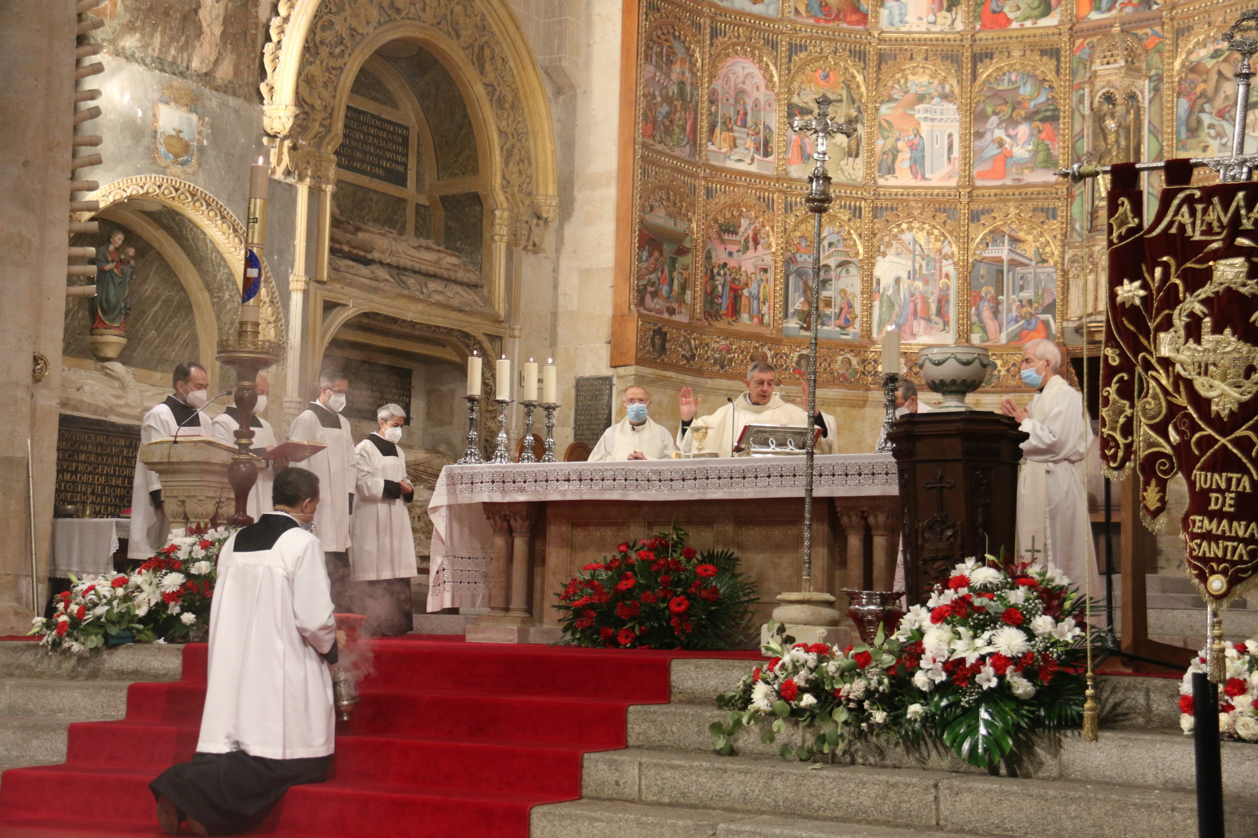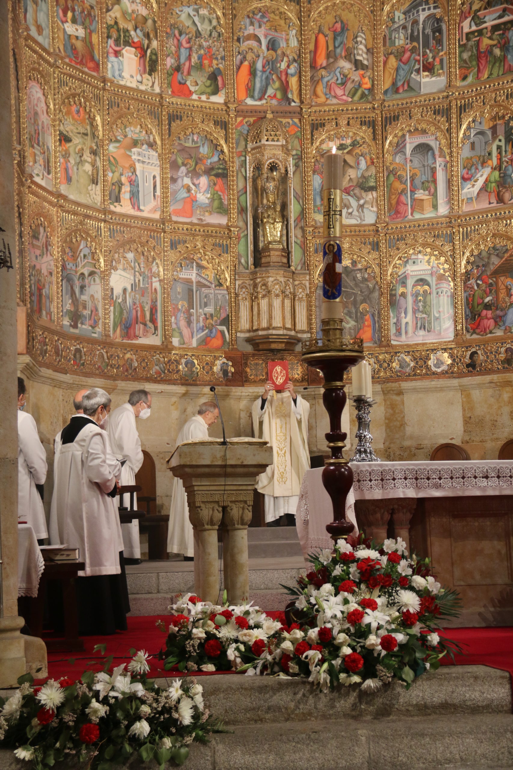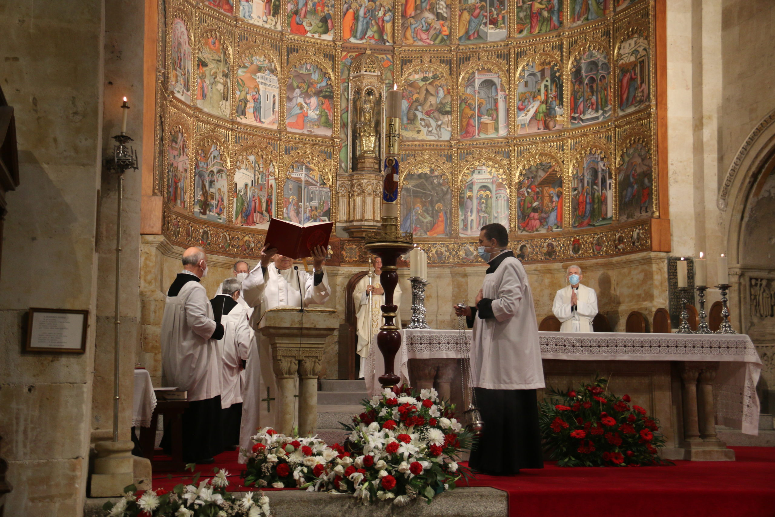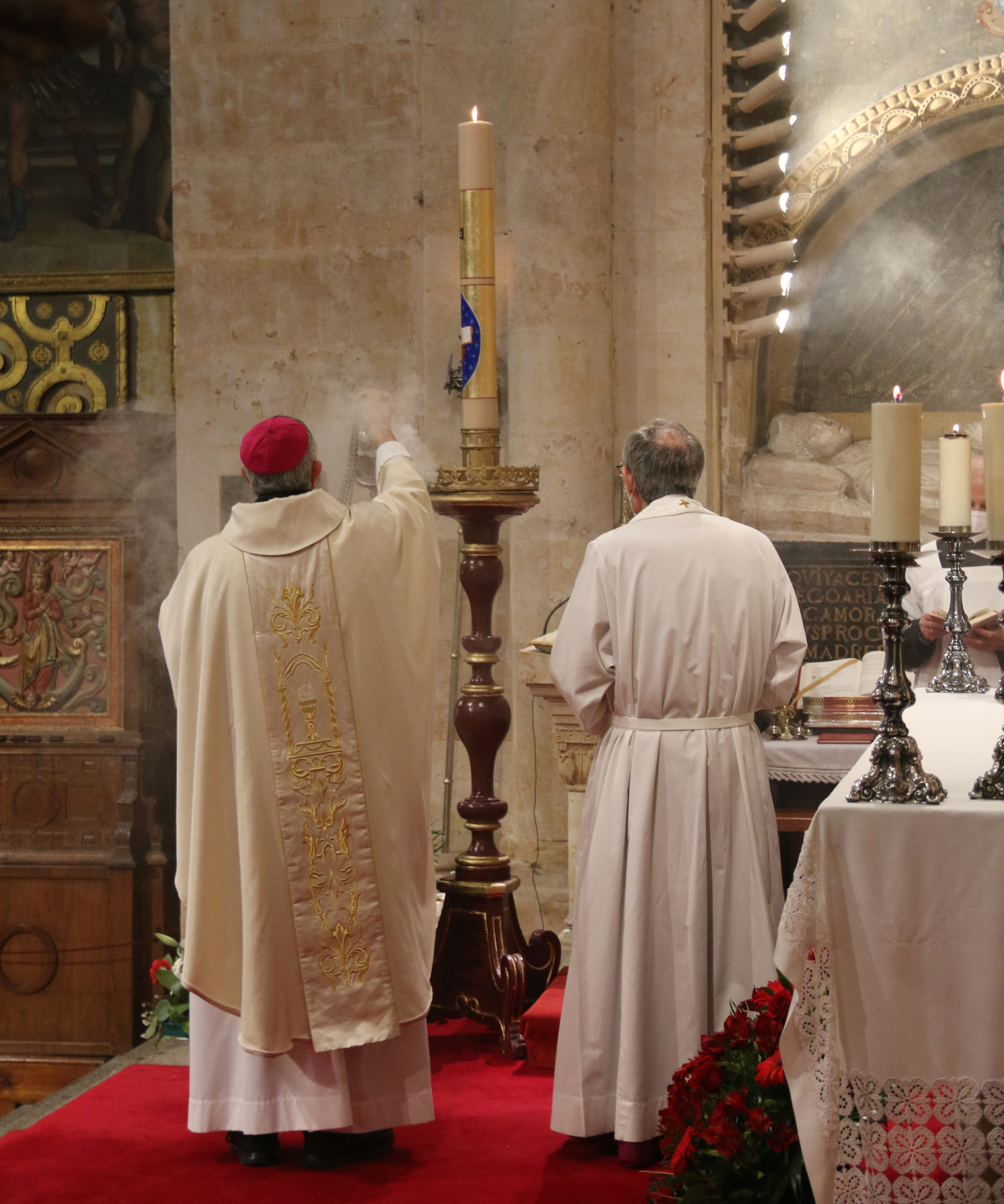 El obispo de la Diócesis de Salamanca, Mons. José Luis Retana, presidió la Misa Pontifical del Domingo de Pascua de la Resurrección del Señor con bendición papal, que se celebró en la Catedral Vieja de Salamanca, y donde proclamó con alegría la Resurrección de Jesucristo. Alegría manifestada también en los cantos que interpretó el Coro Francisco Salinas, bajo la dirección de Elena Blanco Rivas.