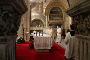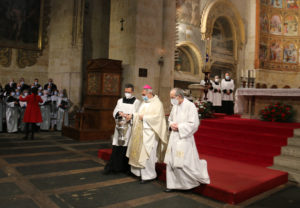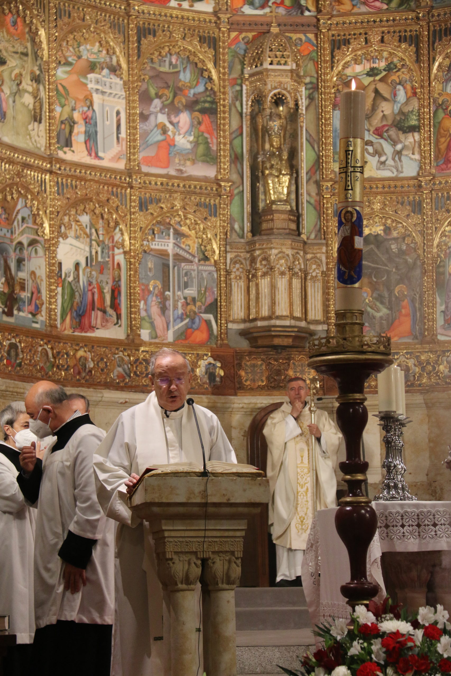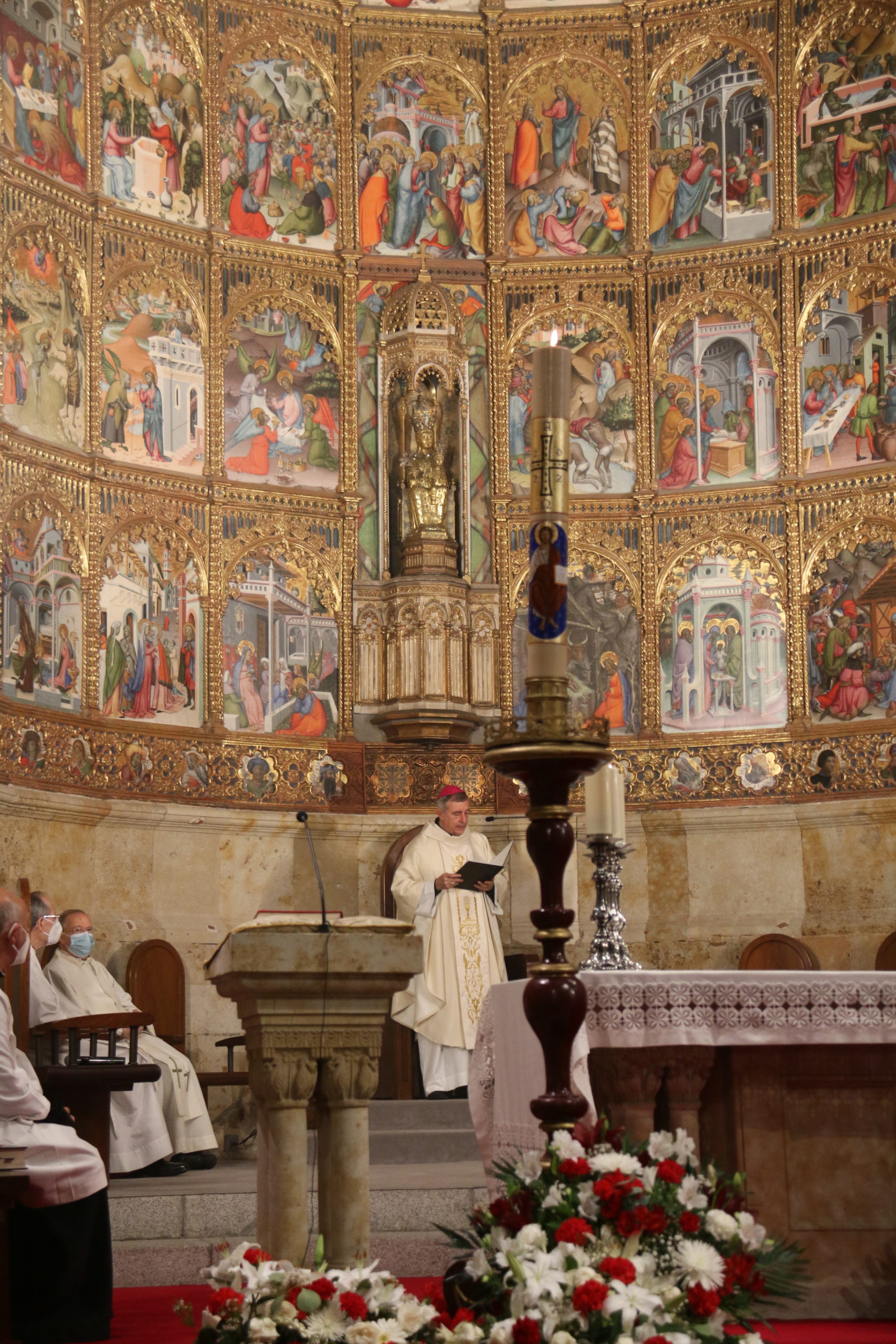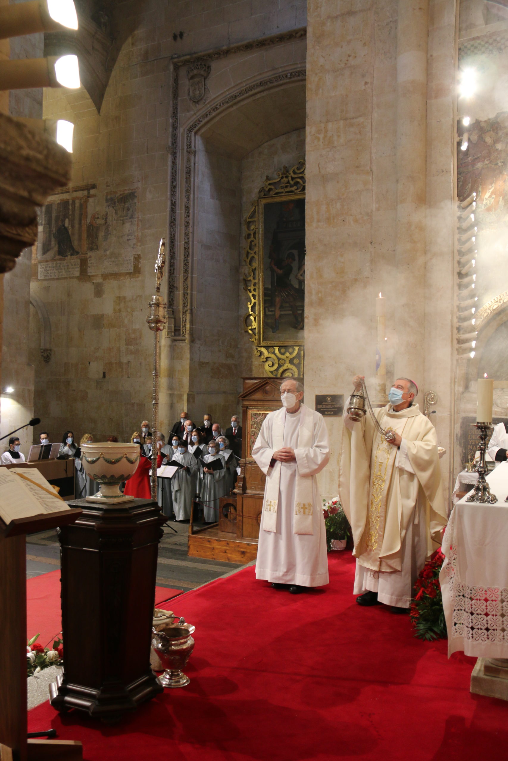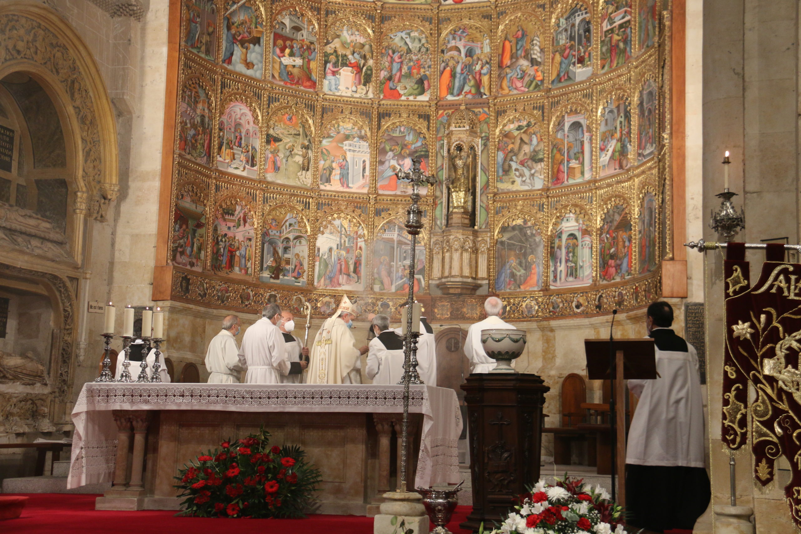 El obispo de la Diócesis de Salamanca, Mons. José Luis Retana, presidió la Misa Pontifical del Domingo de Pascua de la Resurrección del Señor con bendición papal, que se celebró en la Catedral Vieja de Salamanca, y donde proclamó con alegría la Resurrección de Jesucristo. Alegría manifestada también en los cantos que interpretó el Coro Francisco Salinas, bajo la dirección de Elena Blanco Rivas.