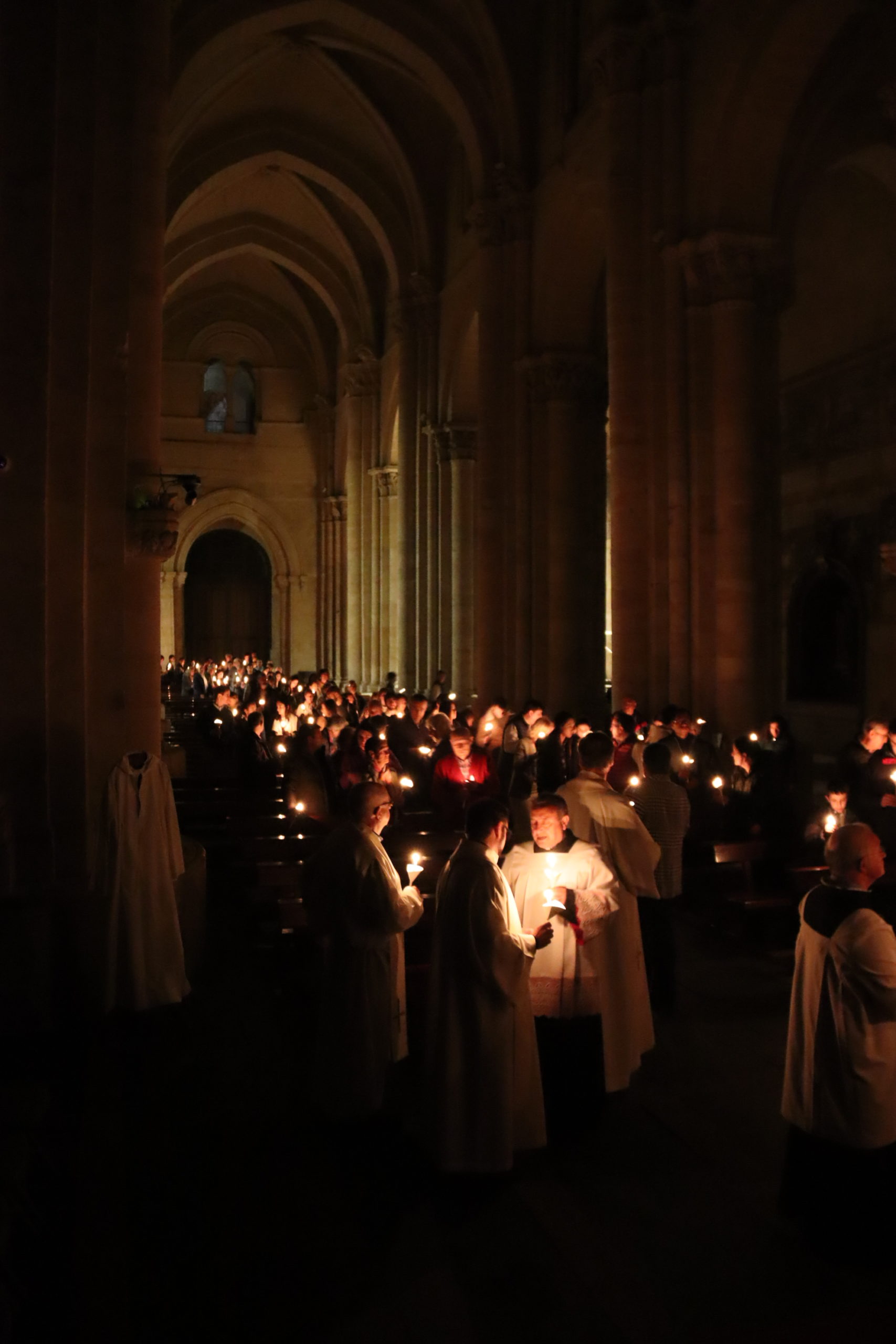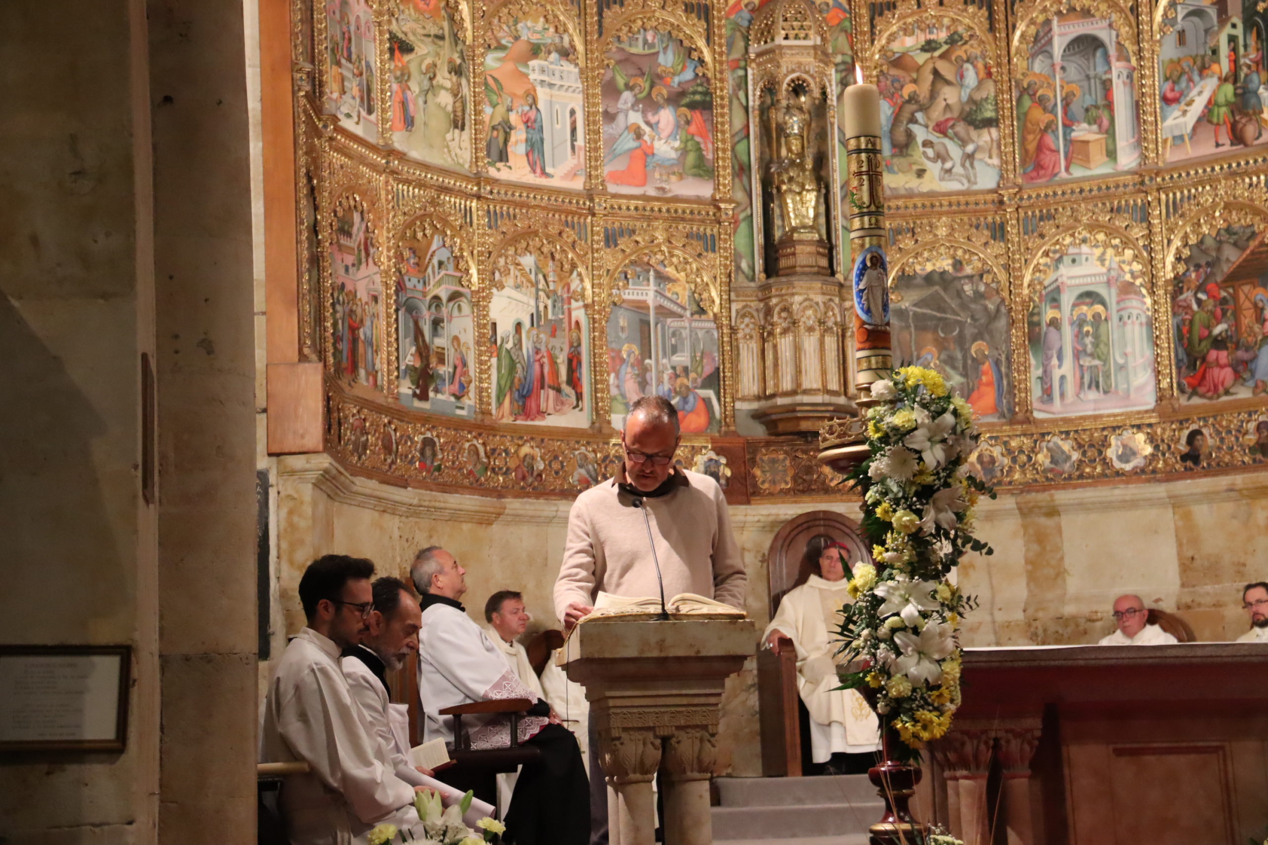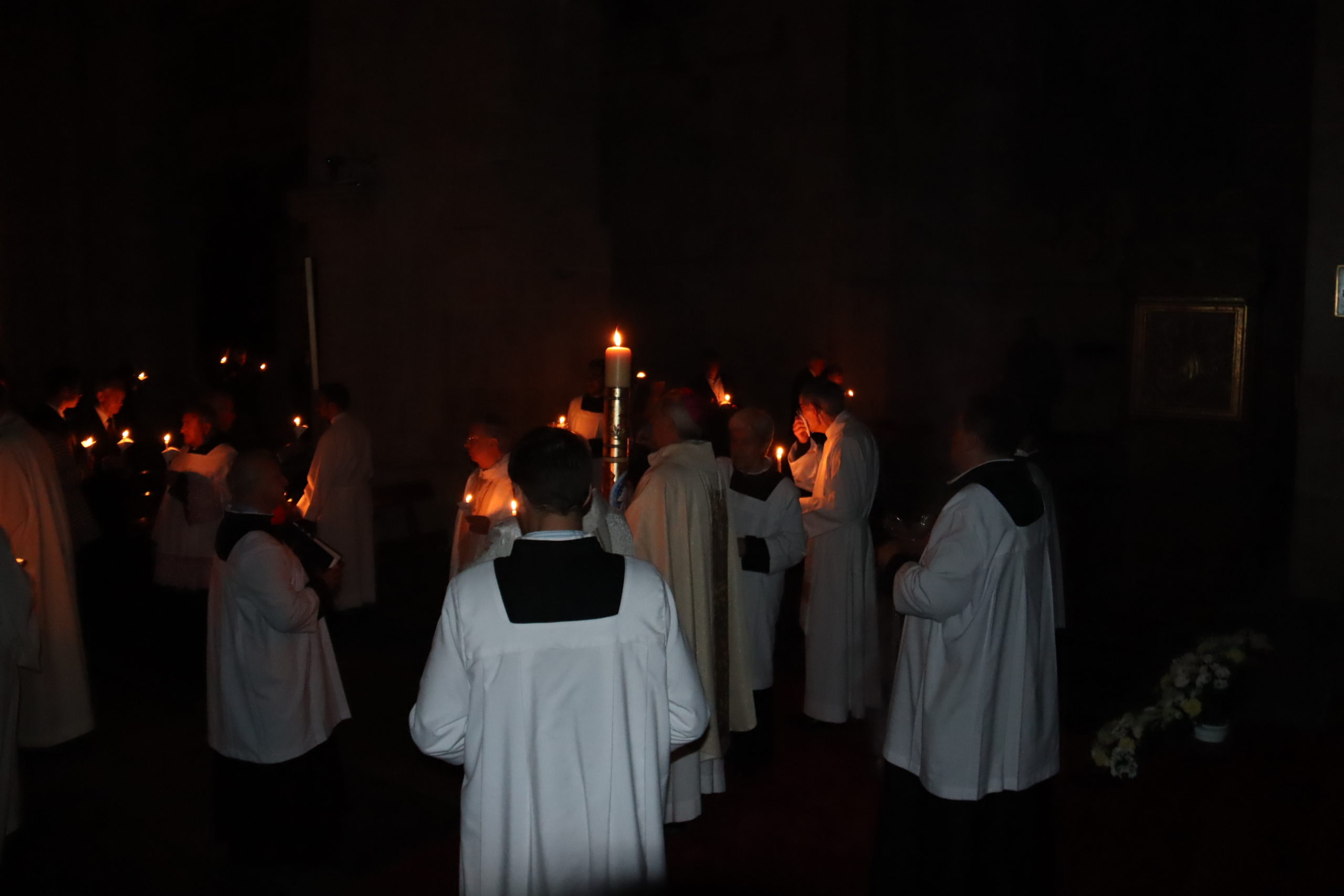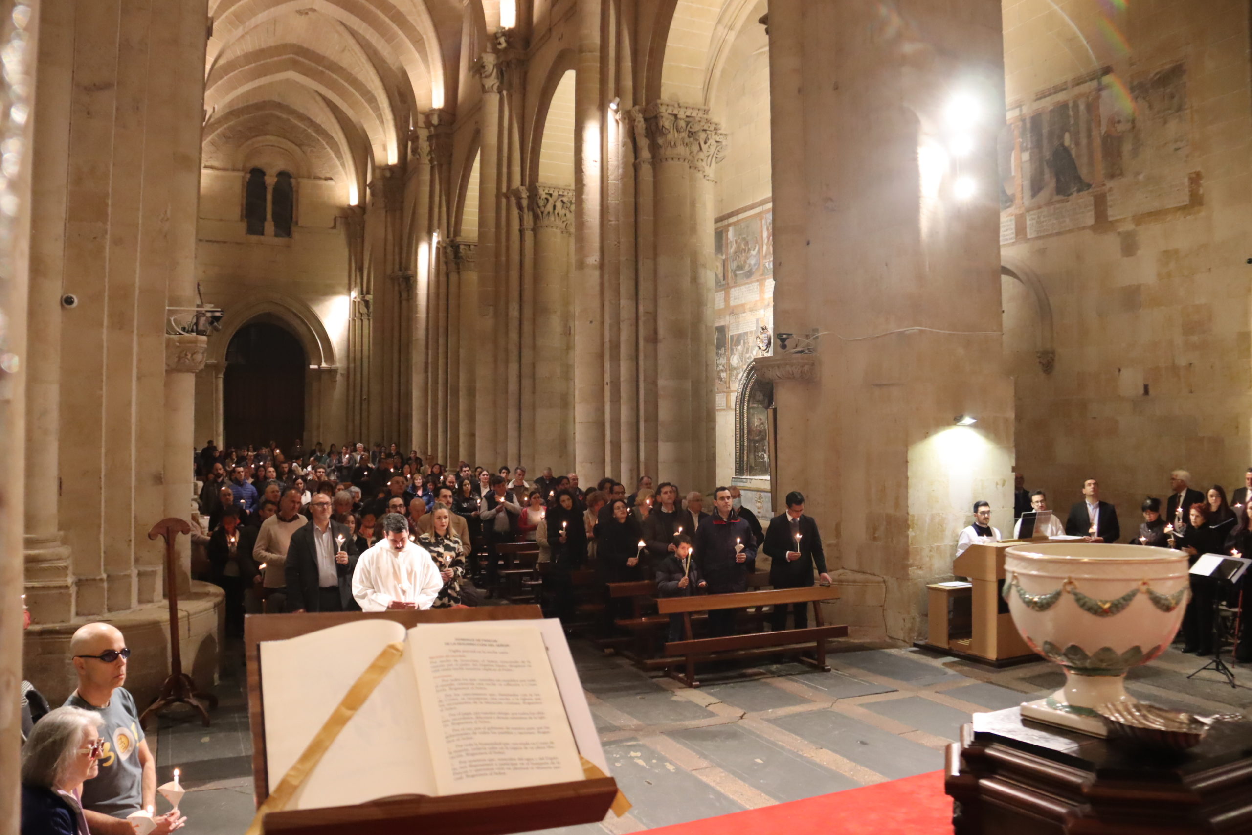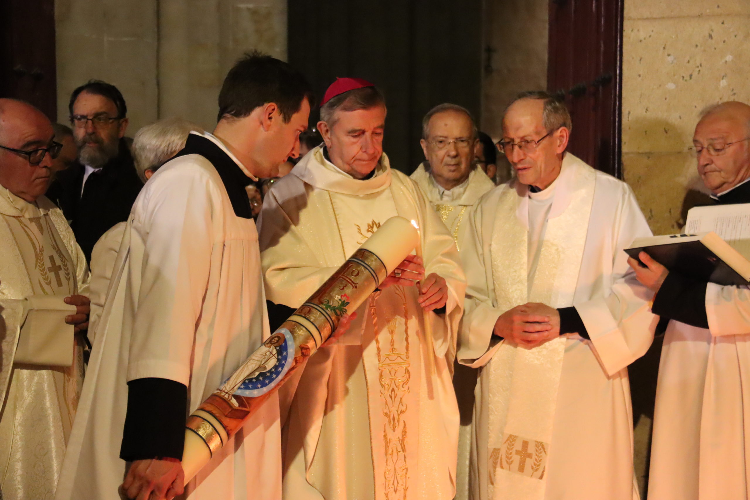 “¡Cristo ha resucitado! ¡Aleluya!”, es la gran noticia que ha resonado en la Vigilia Pascual que ha presidido el obispo de Salamanca, Mons. José Luis Retana, la noche del Sábado Santo en la Catedral Vieja.
