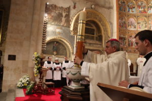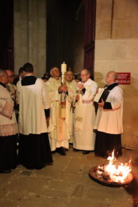 Una celebración solemne que se inició en la puerta de Santa Lucía, puerta jubilar en este Año Santo Teresiano, con la bendición del “fuego nuevo” del que prendió el cirio pascual, que representa la “Luz de Cristo, que resucita glorioso”, y del que los fieles encendieron también sus velas.