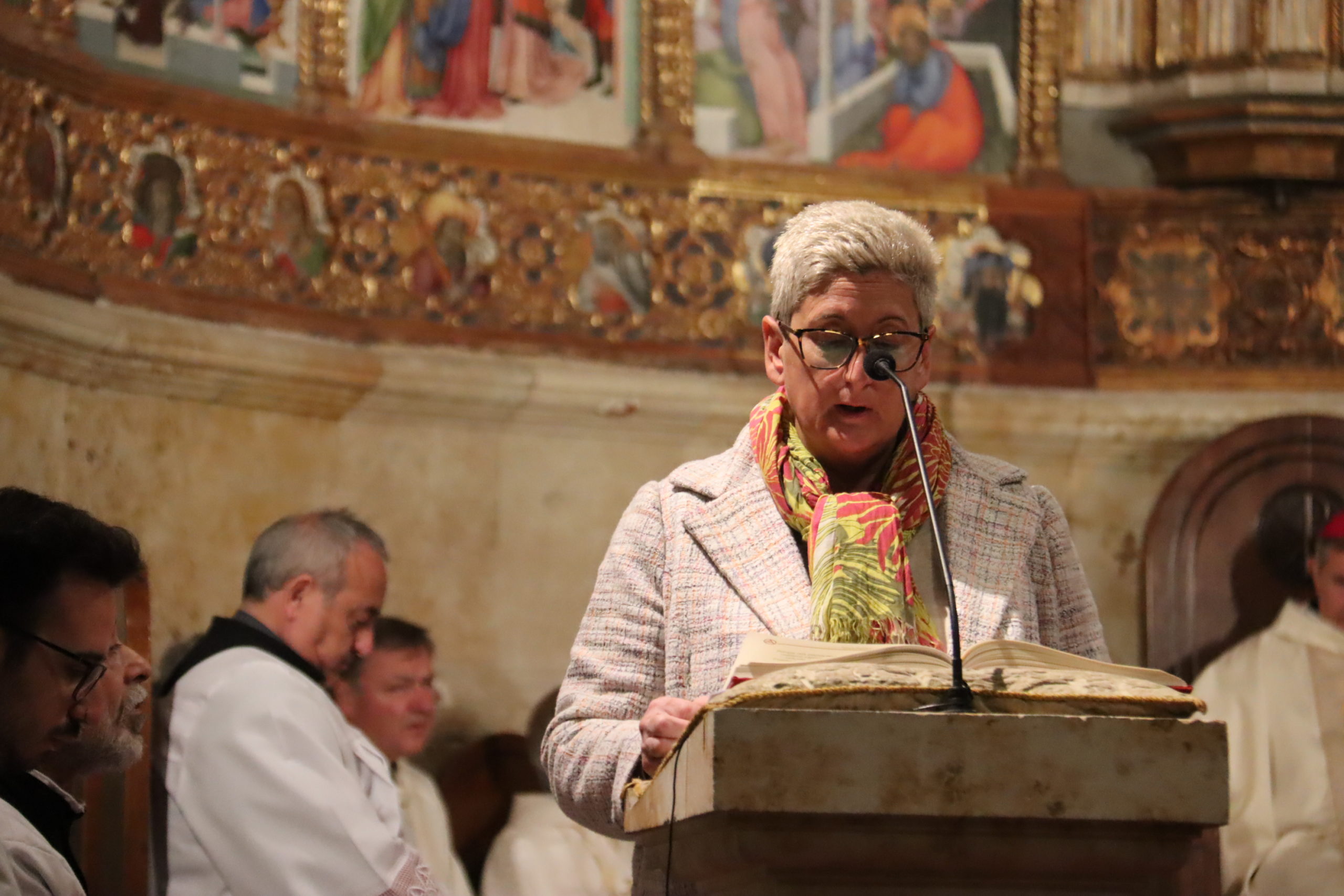La ceremonia continuó con la proclamación del Pregón pascual, a cargo del canónigo emérito Jesús Terradillos, un canto que anuncia la Resurrección de Cristo, la victoria de la luz sobre la oscuridad y de la vida sobre la muerte; y que dio paso a la segunda parte de la Vigilia: la liturgia de la Palabra.
