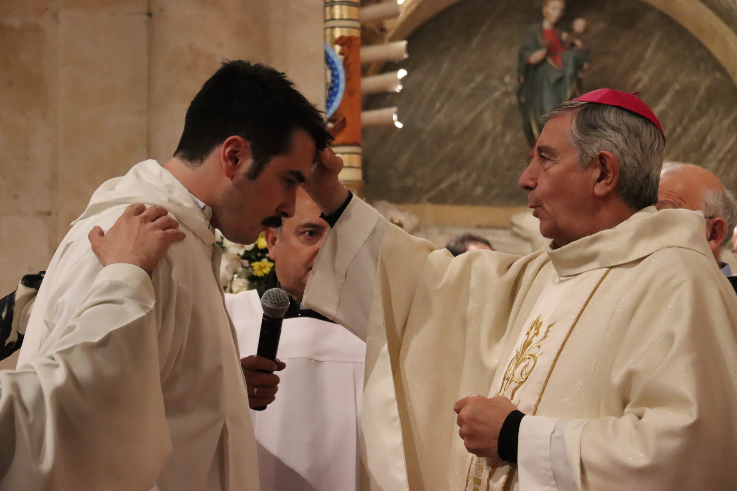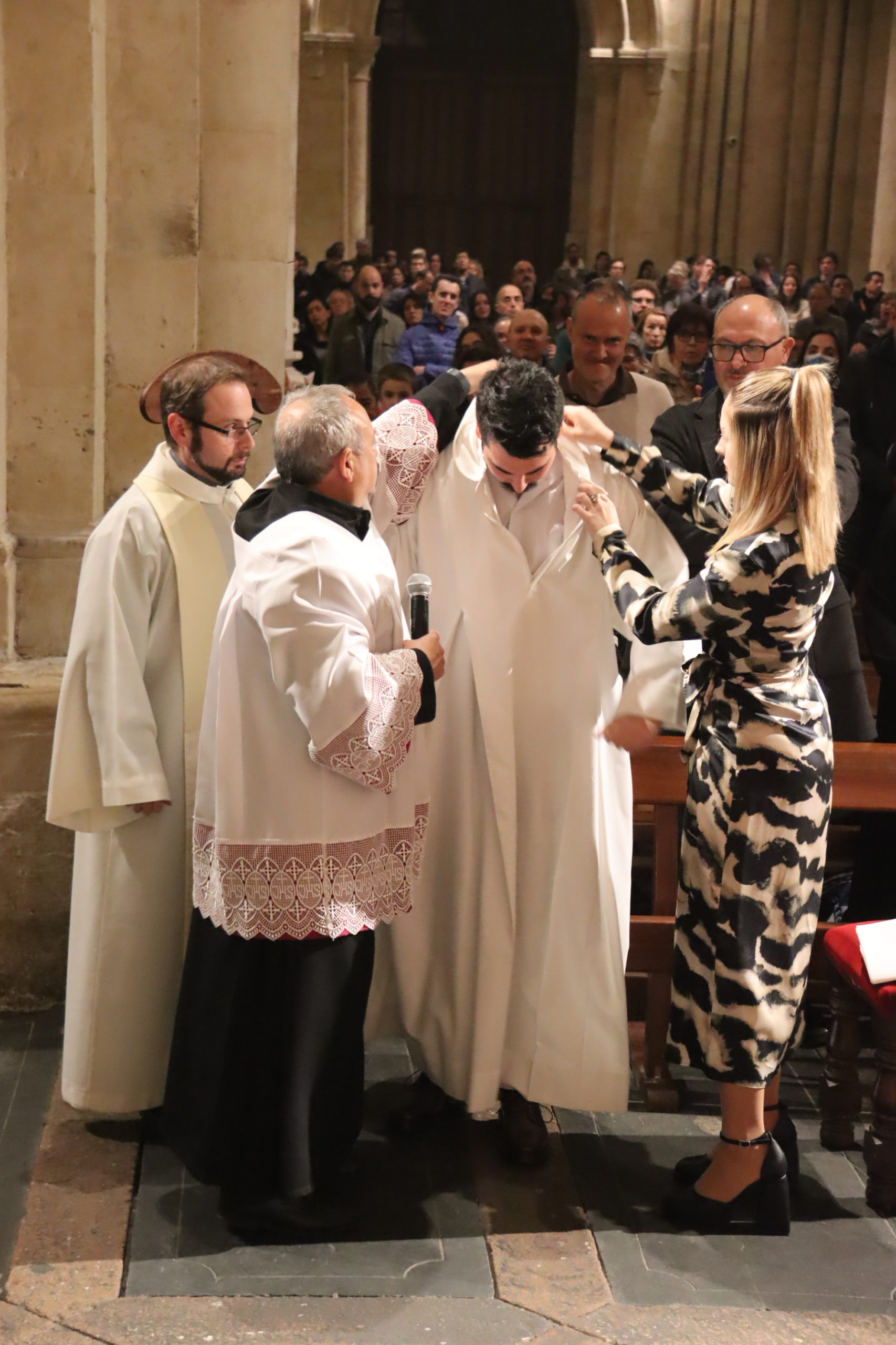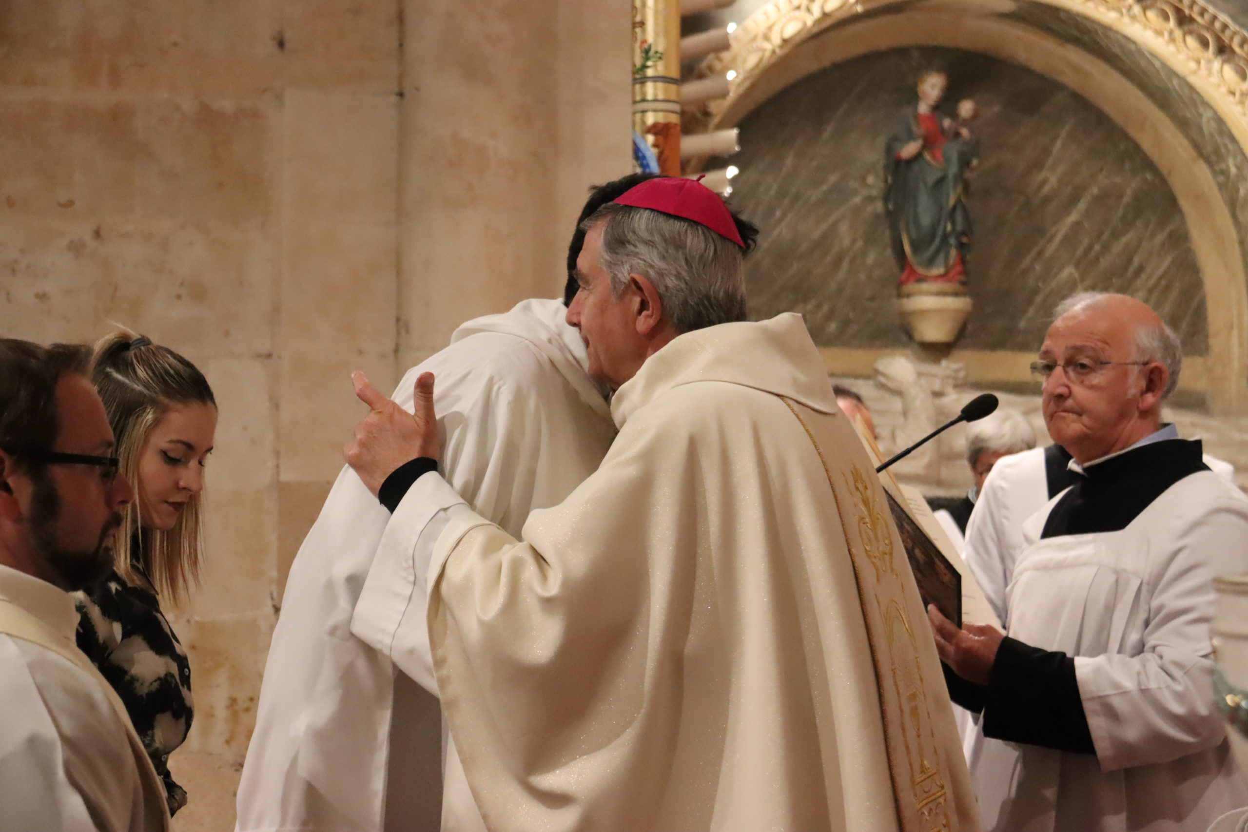 Mons. José Luis Retana precisó que la liturgia bautismal de la vigilia pascual “nos invita a considerar el valor del propio bautismo“. Y, dirigiéndose a José Alberto, recordó a las personas que le han acompañado en su camino de conversión: sus profesores Guillermo y Jesús; su amigo y sacerdote, Miguel, que además fue su padrino; la Pastoral Universitaria con sus responsables Ricardo de Luis Carballada y Mariano Montero; la Diócesis de Salamanca, con el sacerdote Tomás Durán, responsable del Catecumenado de adultos; su novia y su hermana, que fue su madrina. “Dios sigue actuando cuando en esa historia de la salvación tú vas a ser bautizado. Y el Bautismo es más que un baño de purificación”, precisó, “es más que la entrada en una comunidad. Es un nuevo nacimiento. Un nuevo inicio de la vida“. Y le dijo: “Es como si Cristo te abraza y te dice: ‘José Alberto, me perteneces, eres mío. Ocurra lo que ocurra tu vida ha cambiado”.