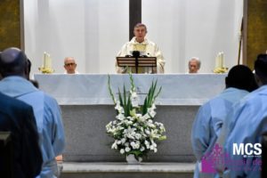 También tuvo un recuerdo hacia los sacerdotes fallecidos y mostró su agradecimiento hacia las hermanas Oblatas de Cristo Sacerdote que oran “por nuestra santificación” y hacia los fieles “que rezan por nosotros” .
