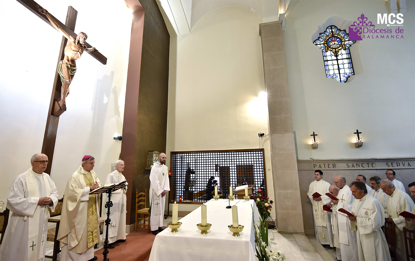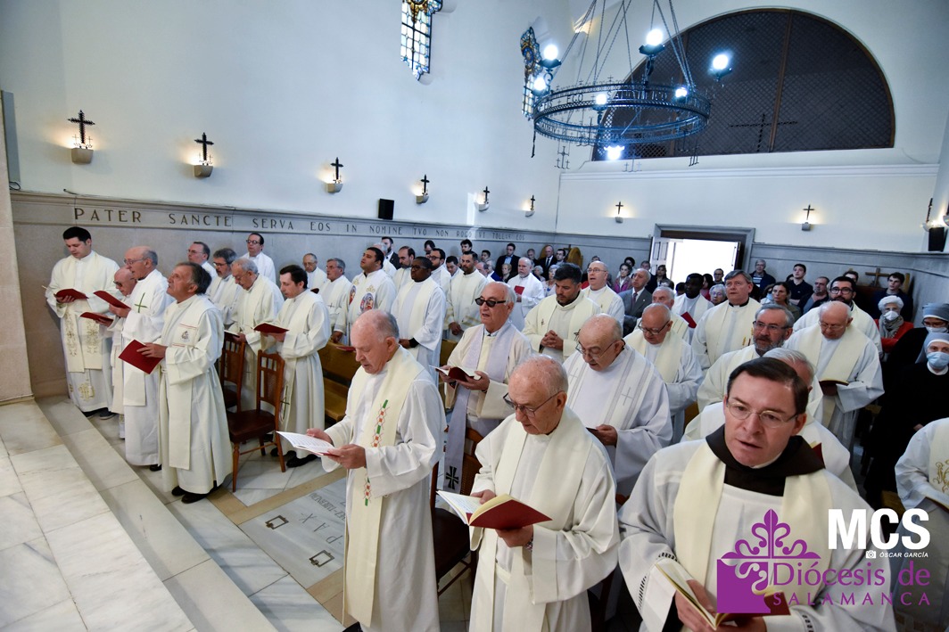 Este jueves, posterior a Pentecostés, los presbíteros han celebrado la fiesta litúrgica de Jesucristo, Sumo y Eterno Sacerdote. Una eucaristía que fue presidida por el pastor diocesano, Mons. José Luis Retana, en la iglesia del Monasterio de Santa María de la Vega de las hermanas Oblatas. Esta fiesta fue aprobada hace 50 años en el calendario litúrgico nacional “a instancias del siervo de Dios don José María García“, como indicó el obispo.