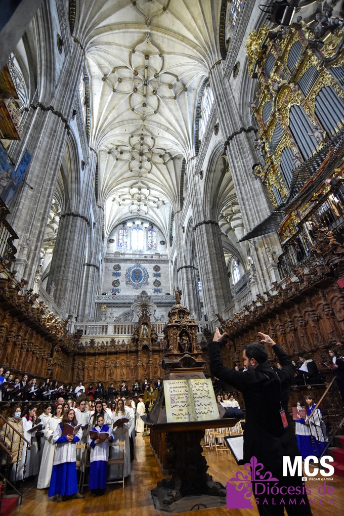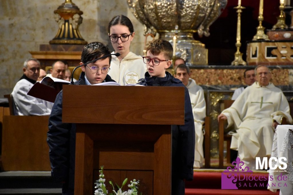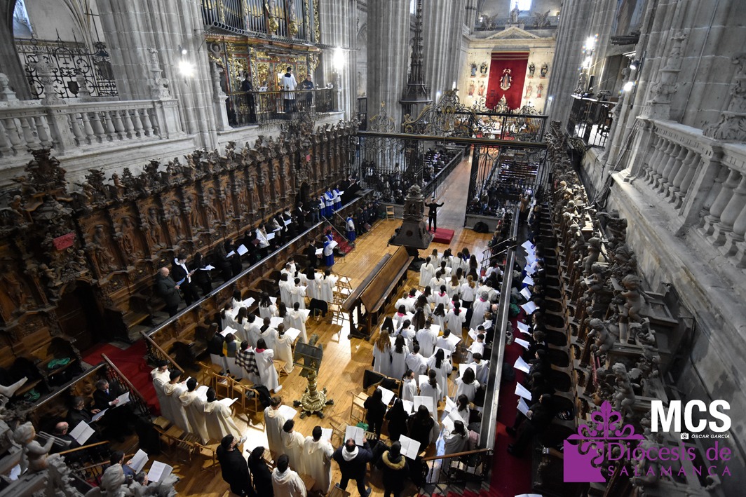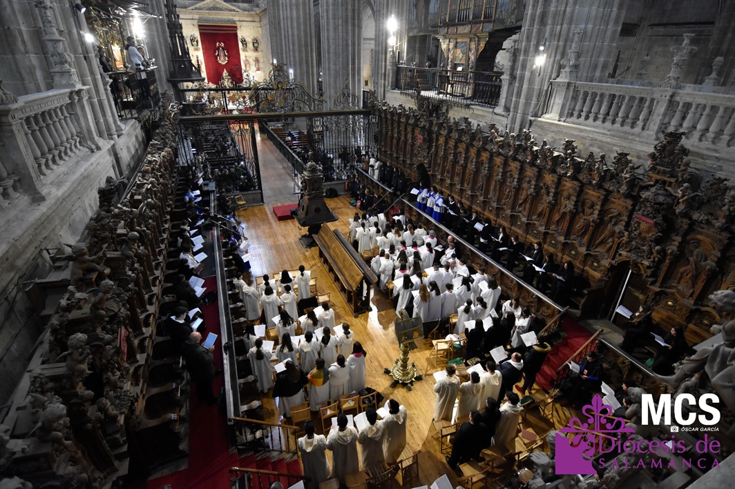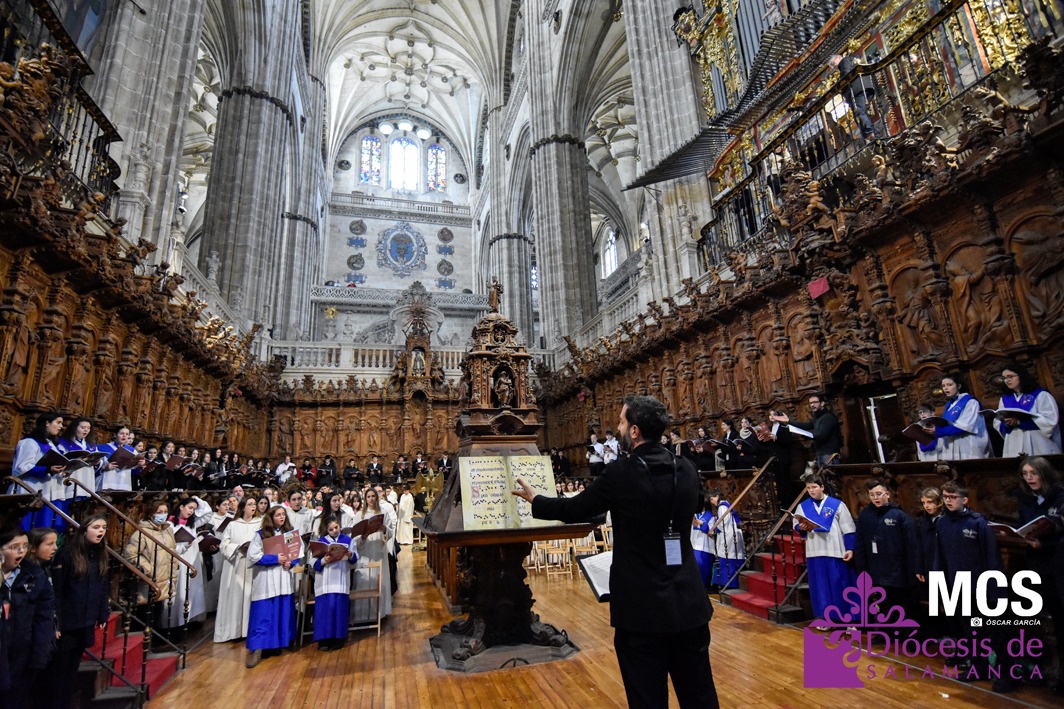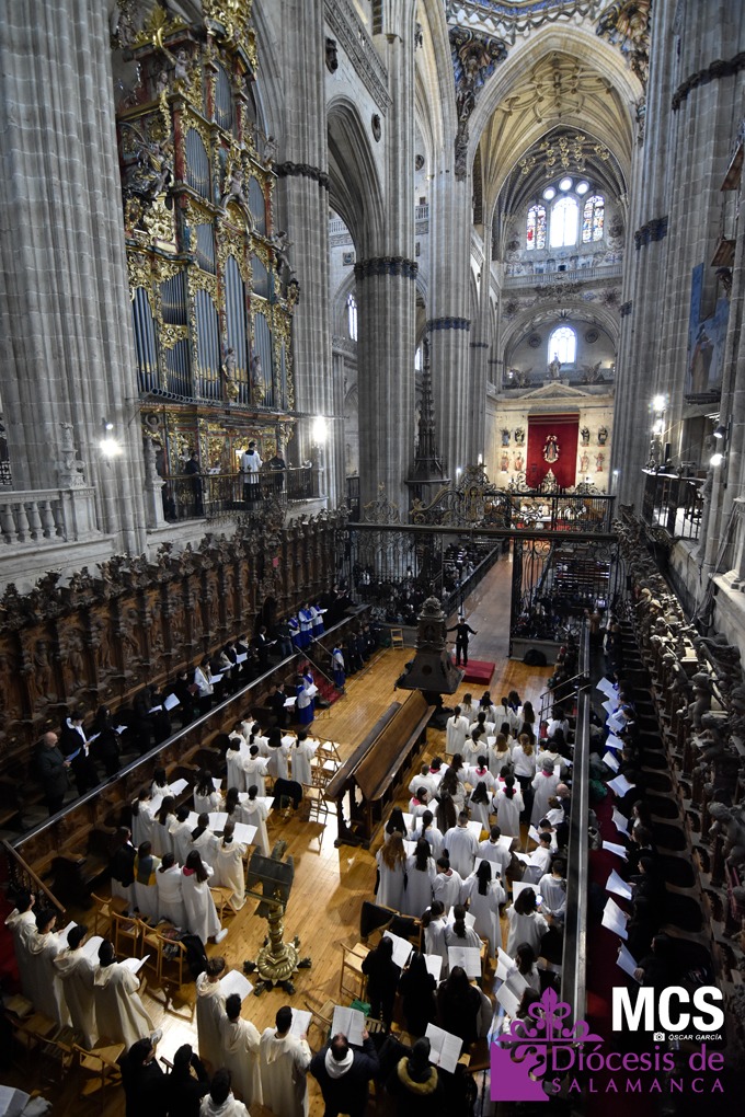 La eucaristía de la fiesta de la Sagrada Familia, presidida por el obispo de Salamanca, Mons. José Luis Retana, en la Catedral Nueva, contó con la presencia y los cantos de los nueve coros que han participado en el IV Congreso Nacional de Pueri Cantores. Cerca de 300 niños se ubicaron en el coro para participar en la misa con sus cantos litúrgicos.