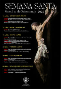 El obispo de Salamanca, Mons. José Luis Retana, presidirá el Jueves Santo, 17 de abril, en la Catedral Vieja, la misa vespertina de la Cena del Señor, a las 18:00 horas. También presidirá la solemne Vigilia Pascual el Sábado Santo, 19 de abril, a las 23:00 horas, que comenzará en la puerta de Santa Lucía con la bendición del fuego.