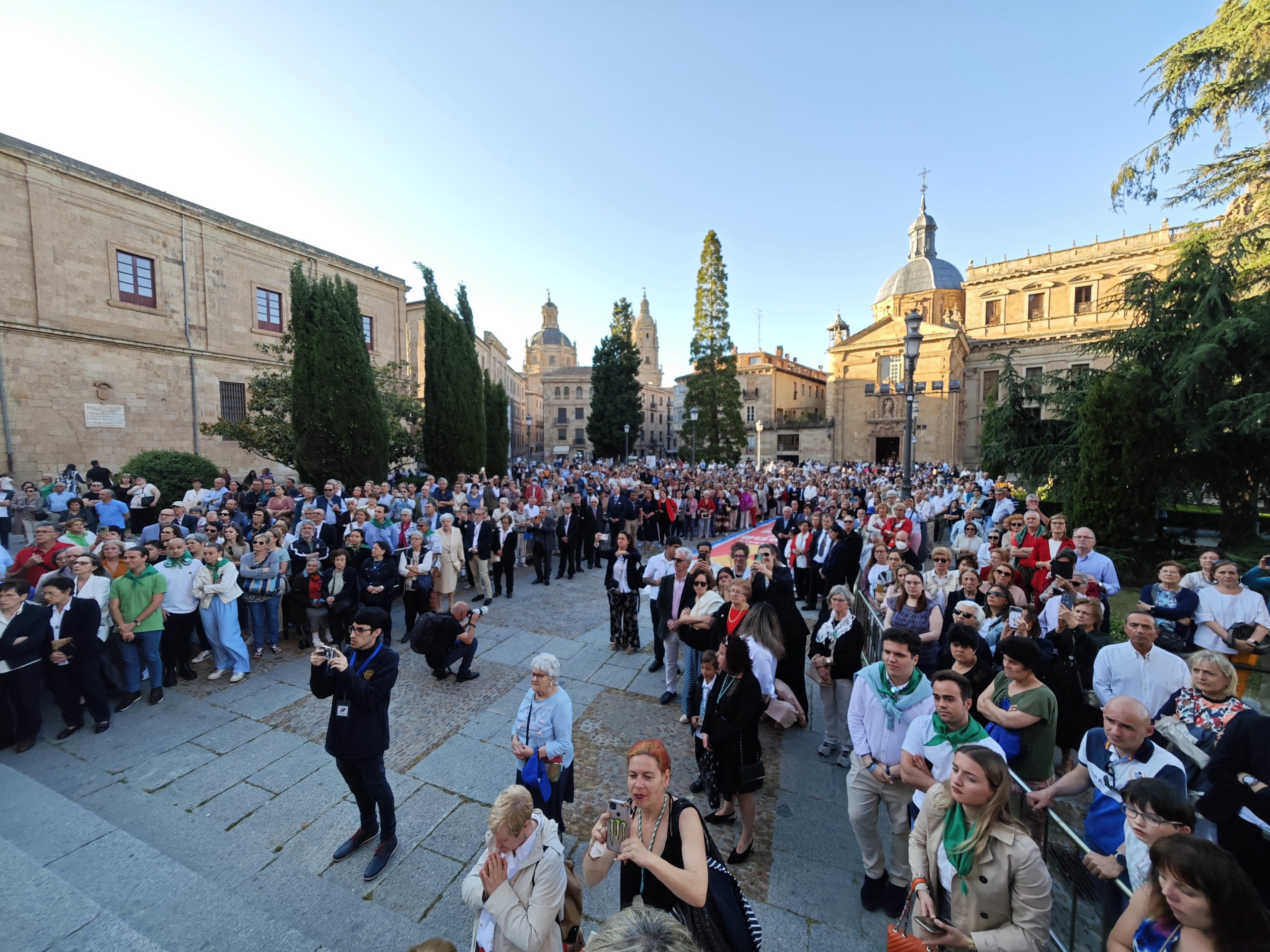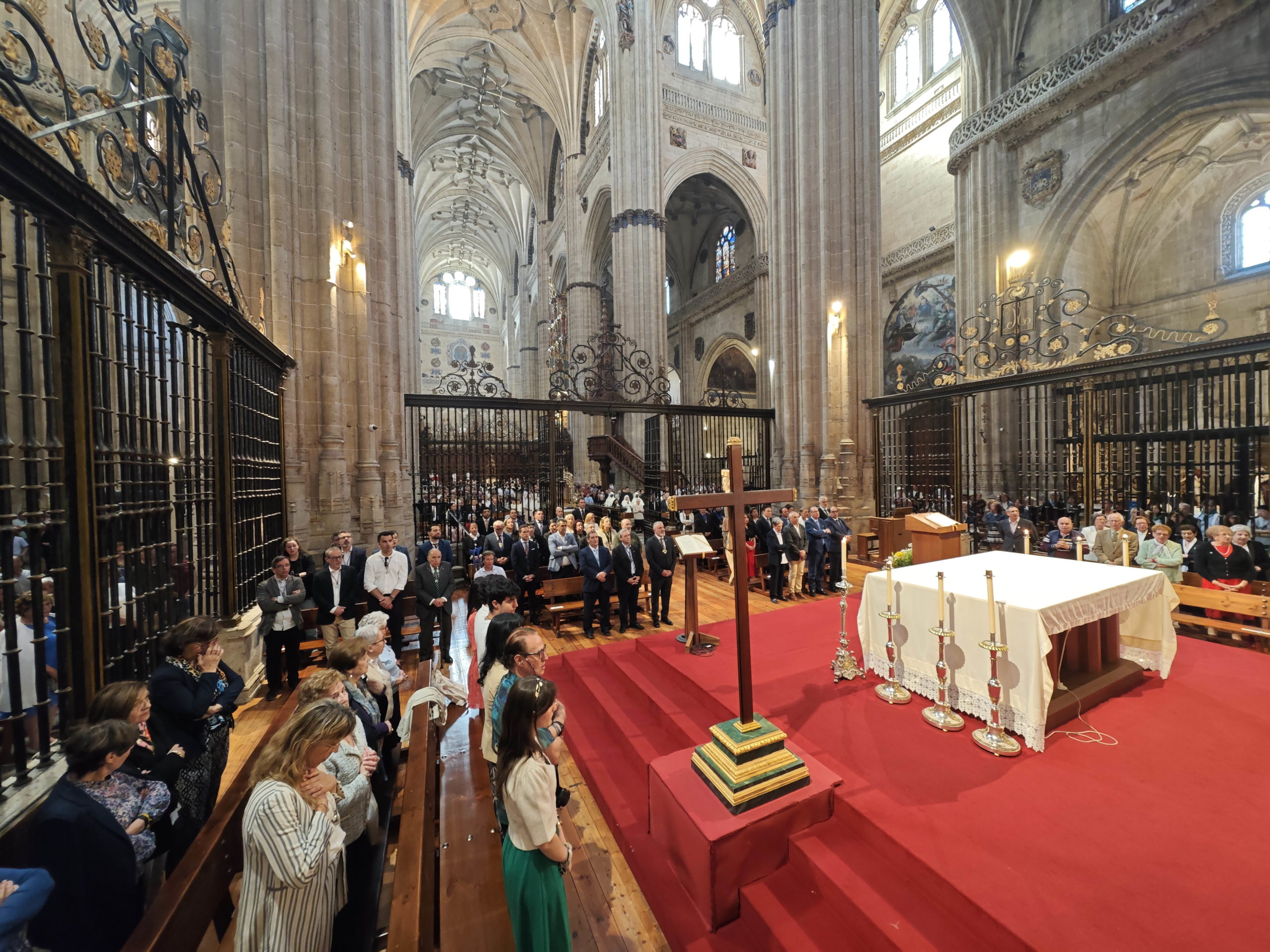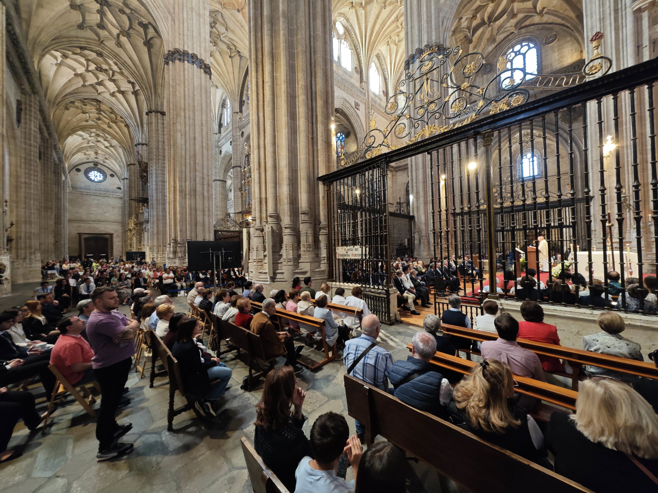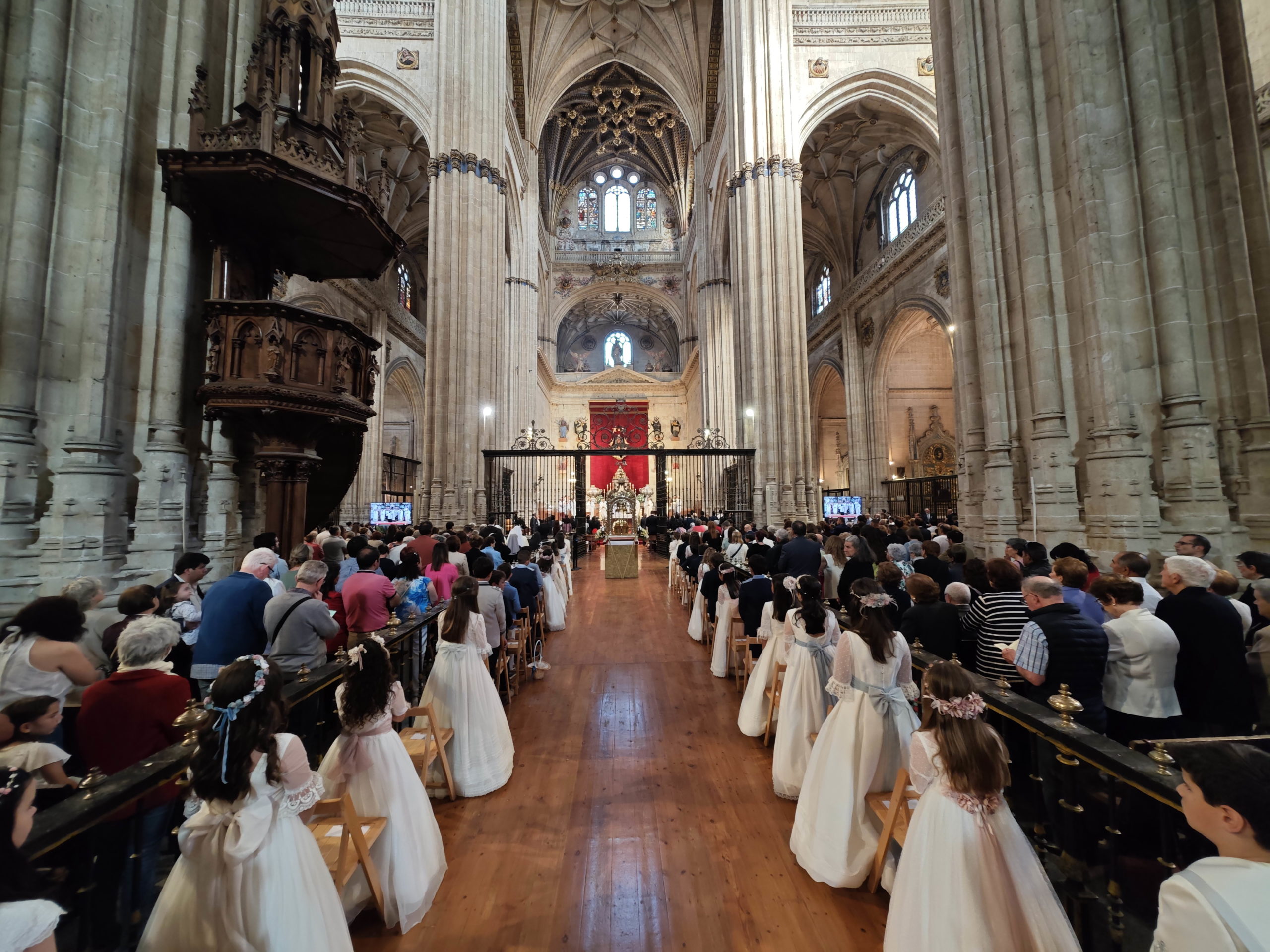 La fiesta del Cuerpo y la Sangre de Cristo se celebró este domingo en Salamanca con una eucaristía, en la Catedral Nueva, y la procesión por las calles del centro de la ciudad. Cientos de fieles se sumaron a ambas celebraciones, que tienen lugar 60 días después del Domingo de Resurrección. En la solemnidad del Corpus Christi, los católicos recuerdan la institución de la eucaristía, llevada a cabo el Jueves Santo, durante la Última Cena, al convertir Jesús el pan y vino en su Cuerpo y en su Sangre.