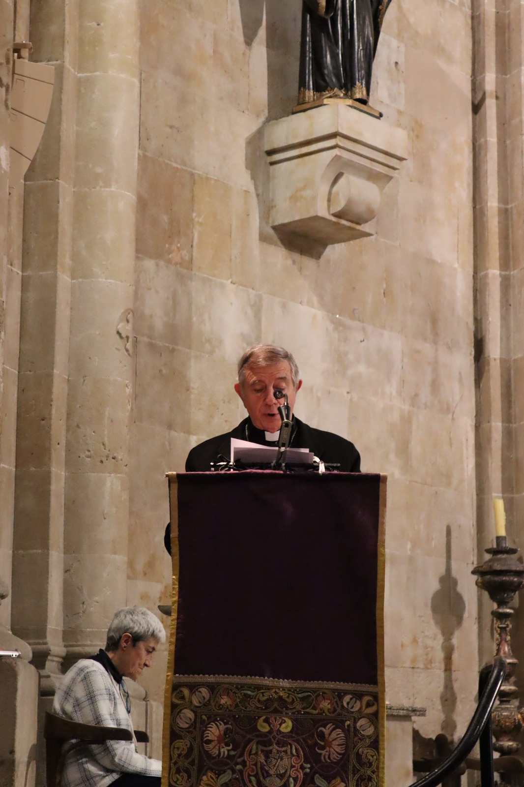 En su meditación, el prelado salmantino se detuvo en la experiencia de soledad que atraviesa Cristo en la cruz. “Dios se halla presente en este aparente abandono”, afirmó, al tiempo que destacó que este grito, lejos de ser solo expresión de angustia, remite a la oración confiada del salmo 22. En este sentido señaló que “lo que no es tan sencillo es sentir que Dios se aleja de uno y Cristo se encuentra en una soledad infinita”.