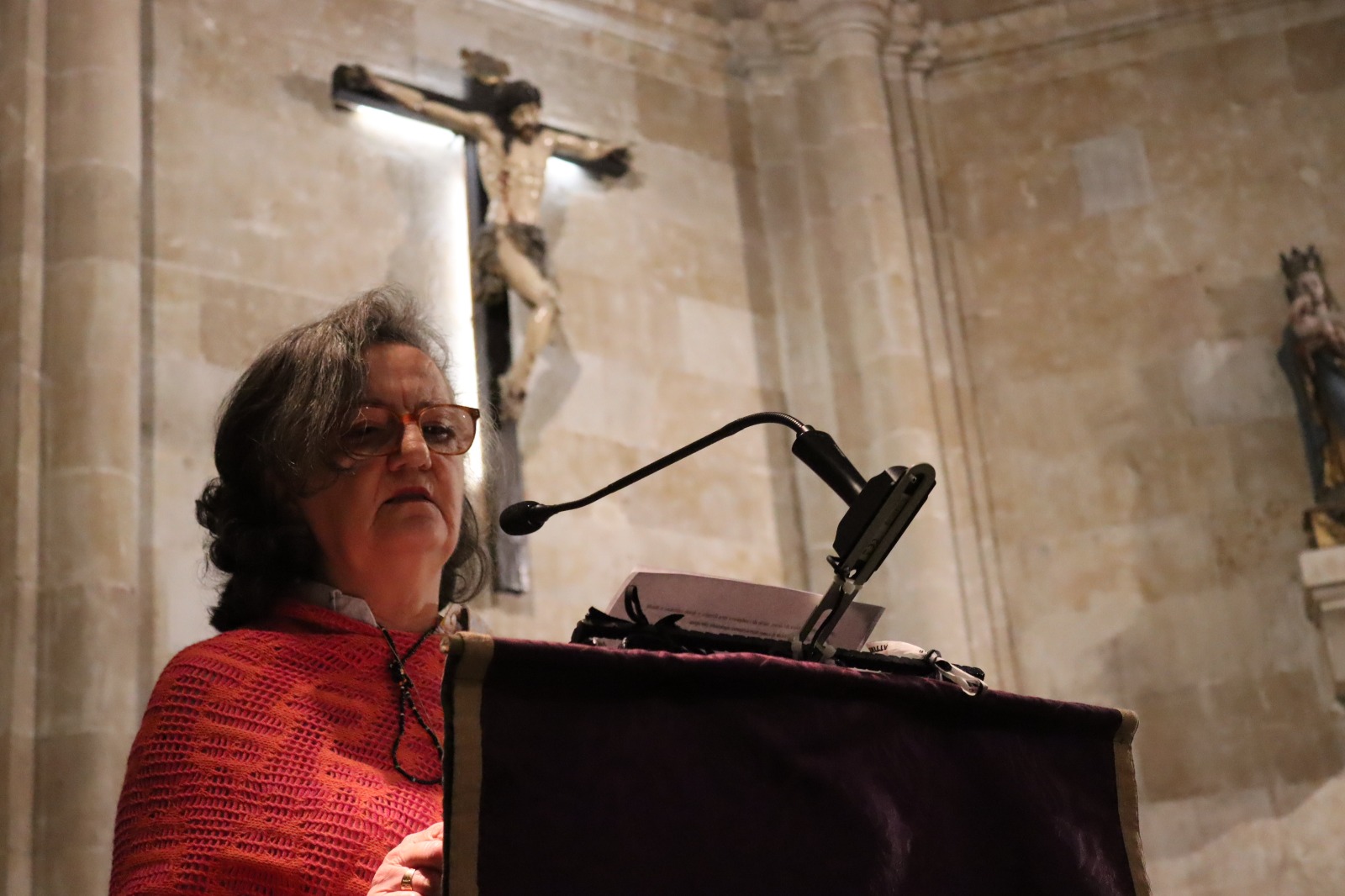 A través de distintas reflexiones, el acto —organizado por la Hermandad del Cristo del Amor y de la Paz y presentado por María Luisa Lurueña— fue conduciendo a los asistentes por las últimas palabras de Cristo en la cruz, en un clima de oración sostenido también por el acompañamiento musical del organista Mario Cortés.