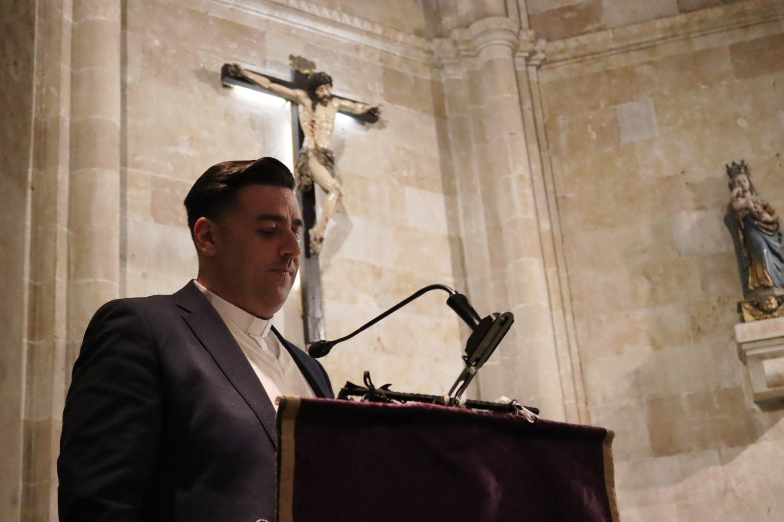 El silencio, la escucha y la contemplación marcaron la meditación colectiva de las Siete Palabras que se celebró en la tarde del Lunes Santo en la iglesia de San Juan de Sahagún, donde numerosos fieles se dieron cita para acompañar al Señor en el misterio de su Pasión.