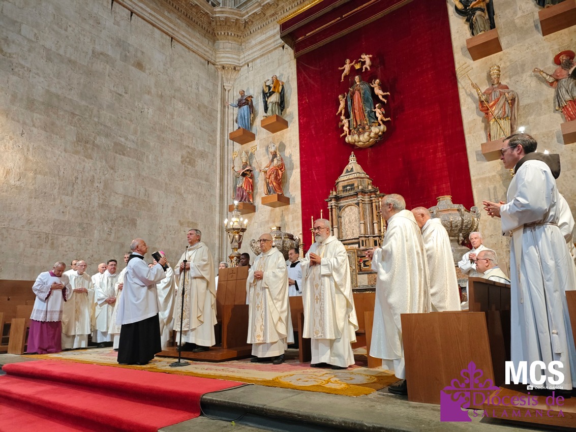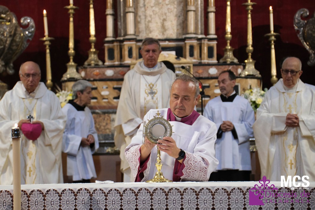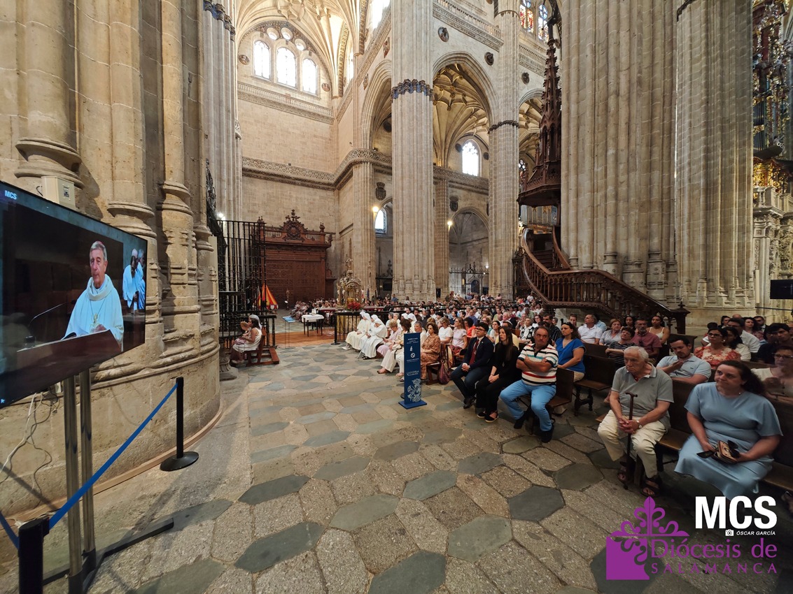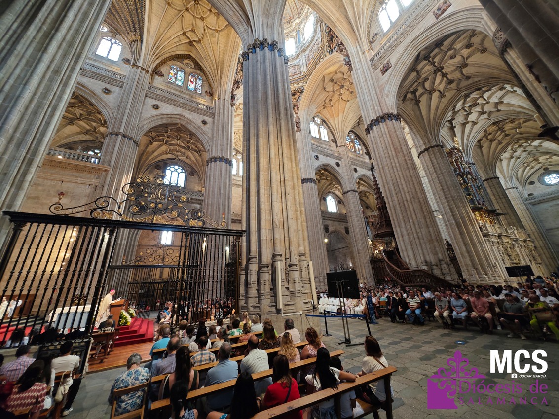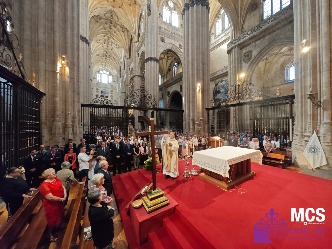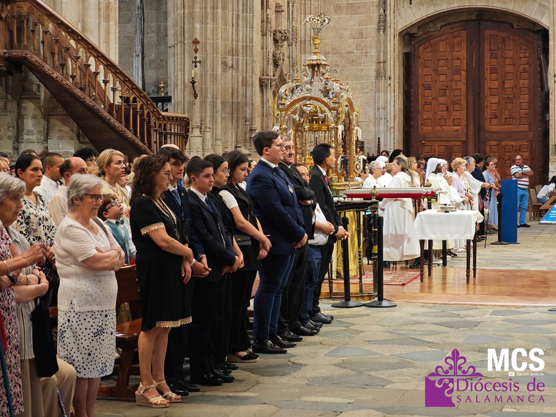 La Eucaristía fue el centro de la solemnidad del Corpus Christi que se celebró este domingo en la Catedral Nueva, presidida por el obispo de Salamanca, Mons. José Luis Retana, y concelebrada por el obispo emérito de Riobamba, Mons. Julio Parrilla, así como sacerdotes y religiosos diocesanos. En esta jornada también se conmemoraba el Día de la Caridad, con la presencia destacada de Cáritas diocesana de Salamanca. Una celebración que, como expresó el obispo de la diócesis, nos sitúa en el centro de la vida cristiana y nos hace testigos de la compasión de Dios, llamados a ser “la caricia de Dios para el prójimo herido”.