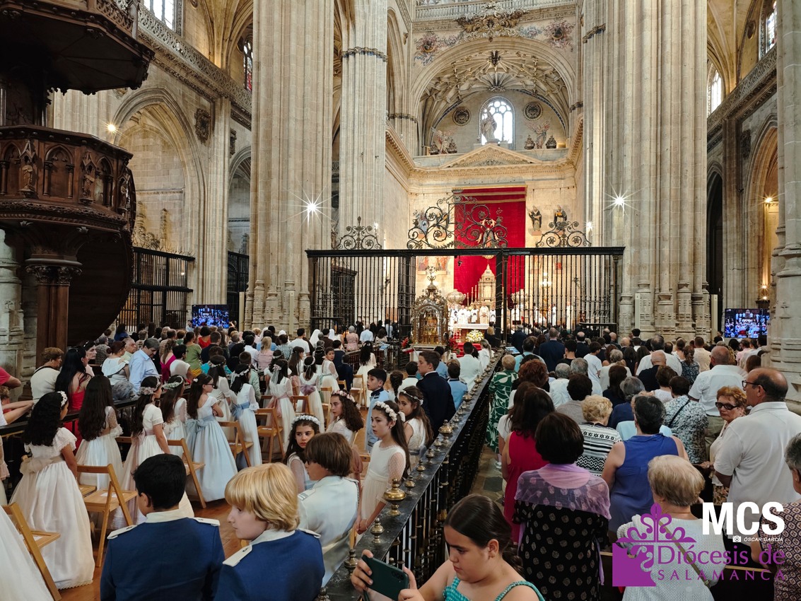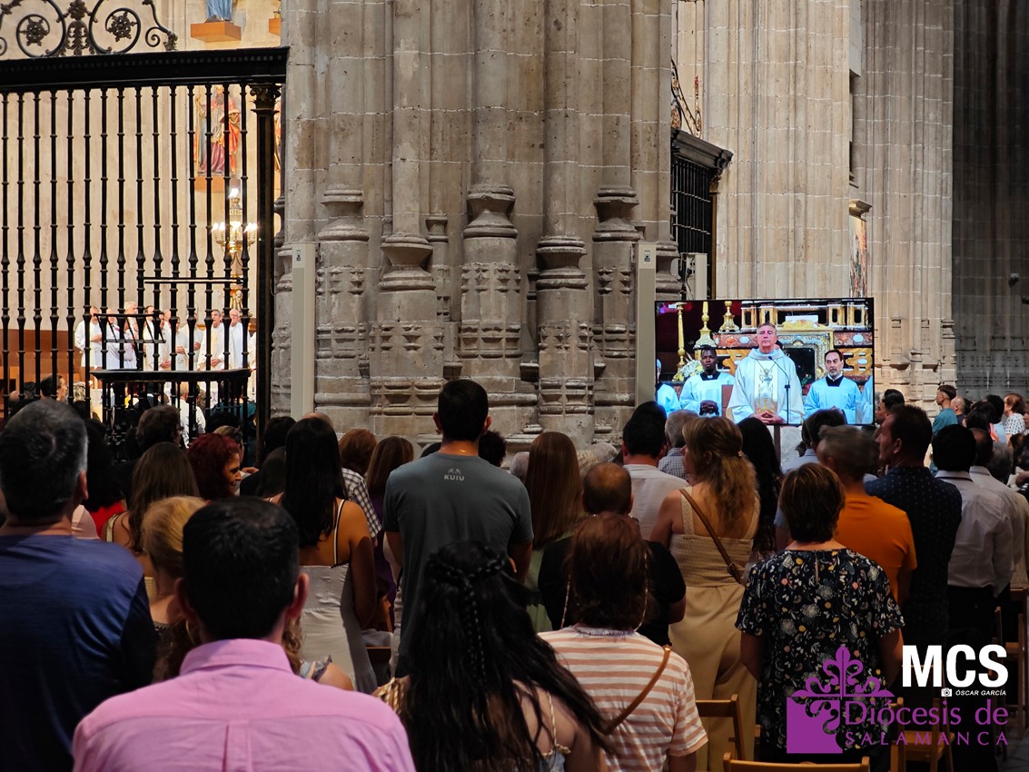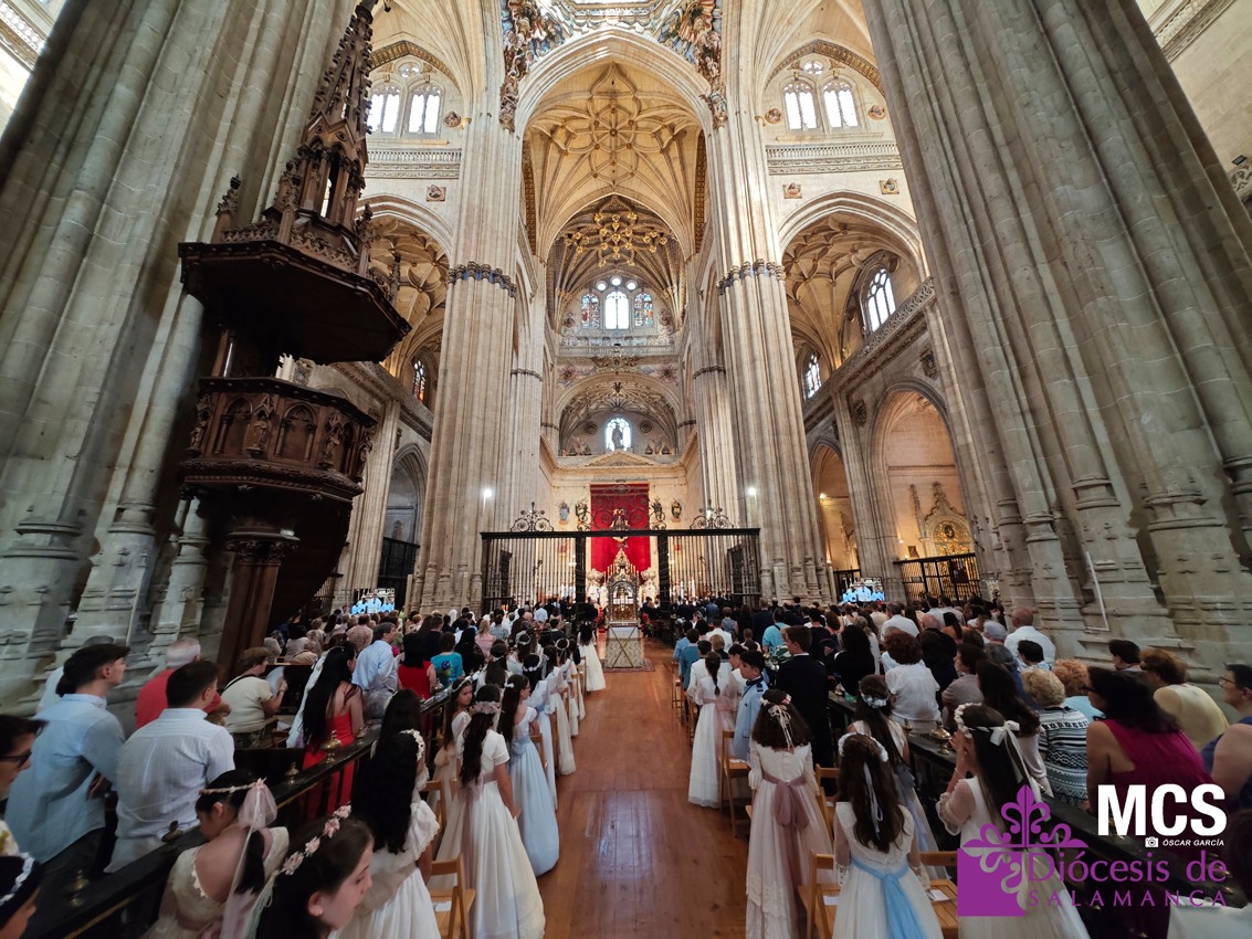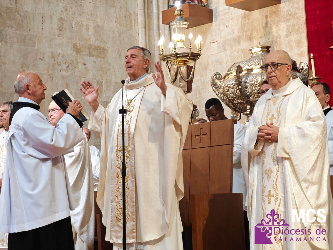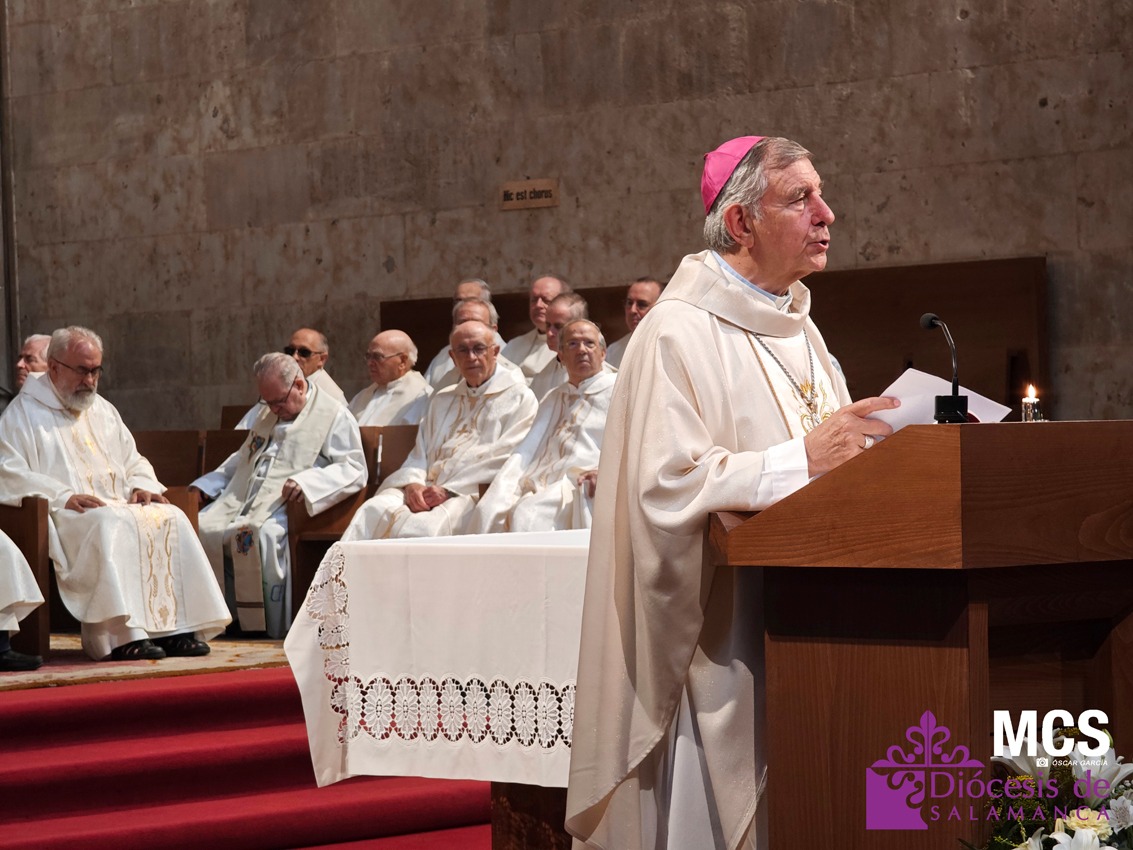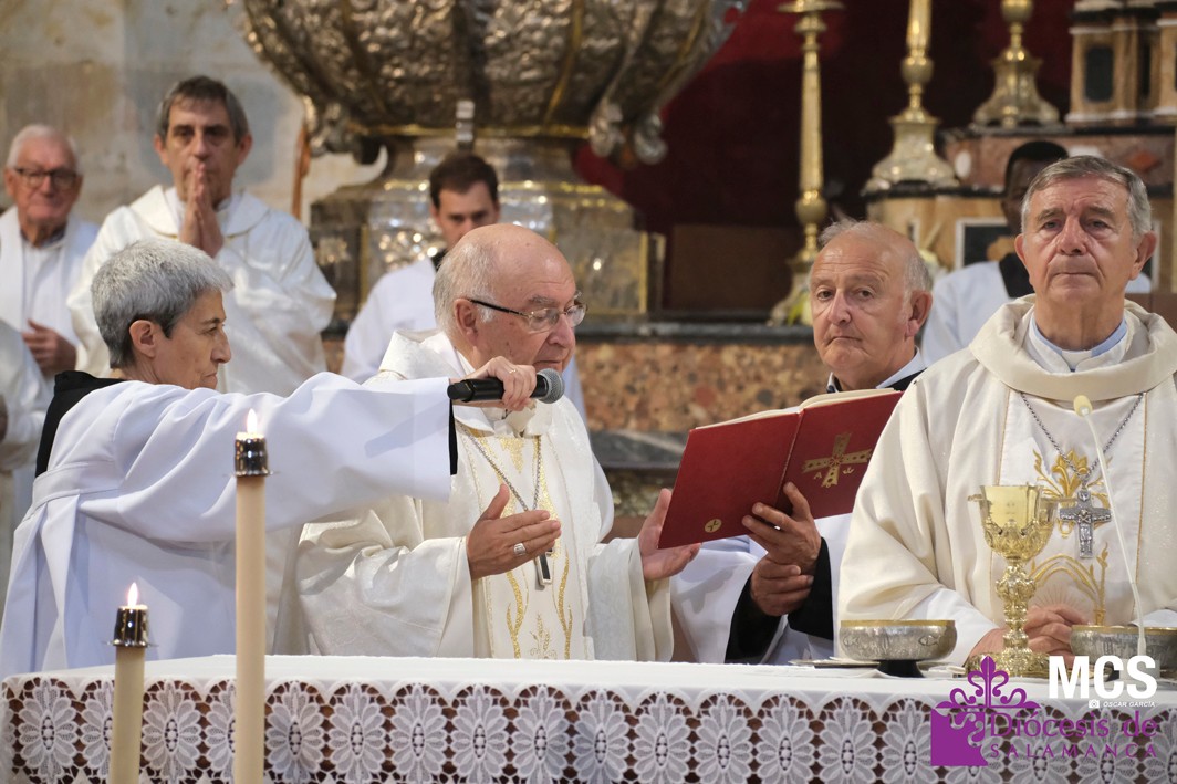 La Eucaristía fue el centro de la solemnidad del Corpus Christi que se celebró este domingo en la Catedral Nueva, presidida por el obispo de Salamanca, Mons. José Luis Retana, y concelebrada por el obispo emérito de Riobamba, Mons. Julio Parrilla, así como sacerdotes y religiosos diocesanos. En esta jornada también se conmemoraba el Día de la Caridad, con la presencia destacada de Cáritas diocesana de Salamanca. Una celebración que, como expresó el obispo de la diócesis, nos sitúa en el centro de la vida cristiana y nos hace testigos de la compasión de Dios, llamados a ser “la caricia de Dios para el prójimo herido”.