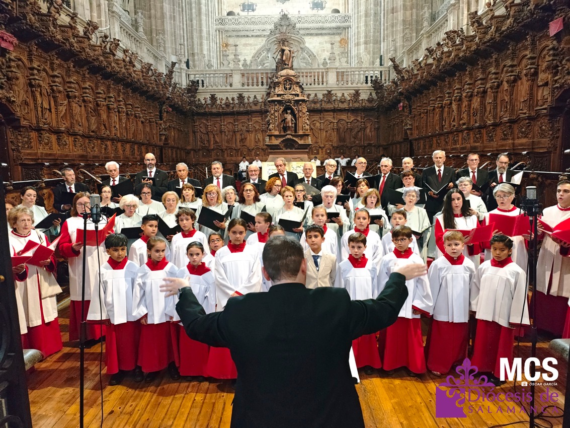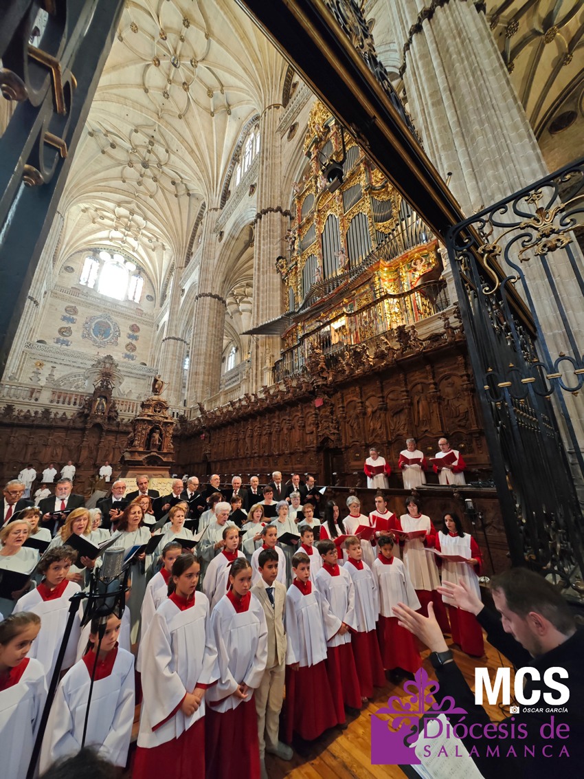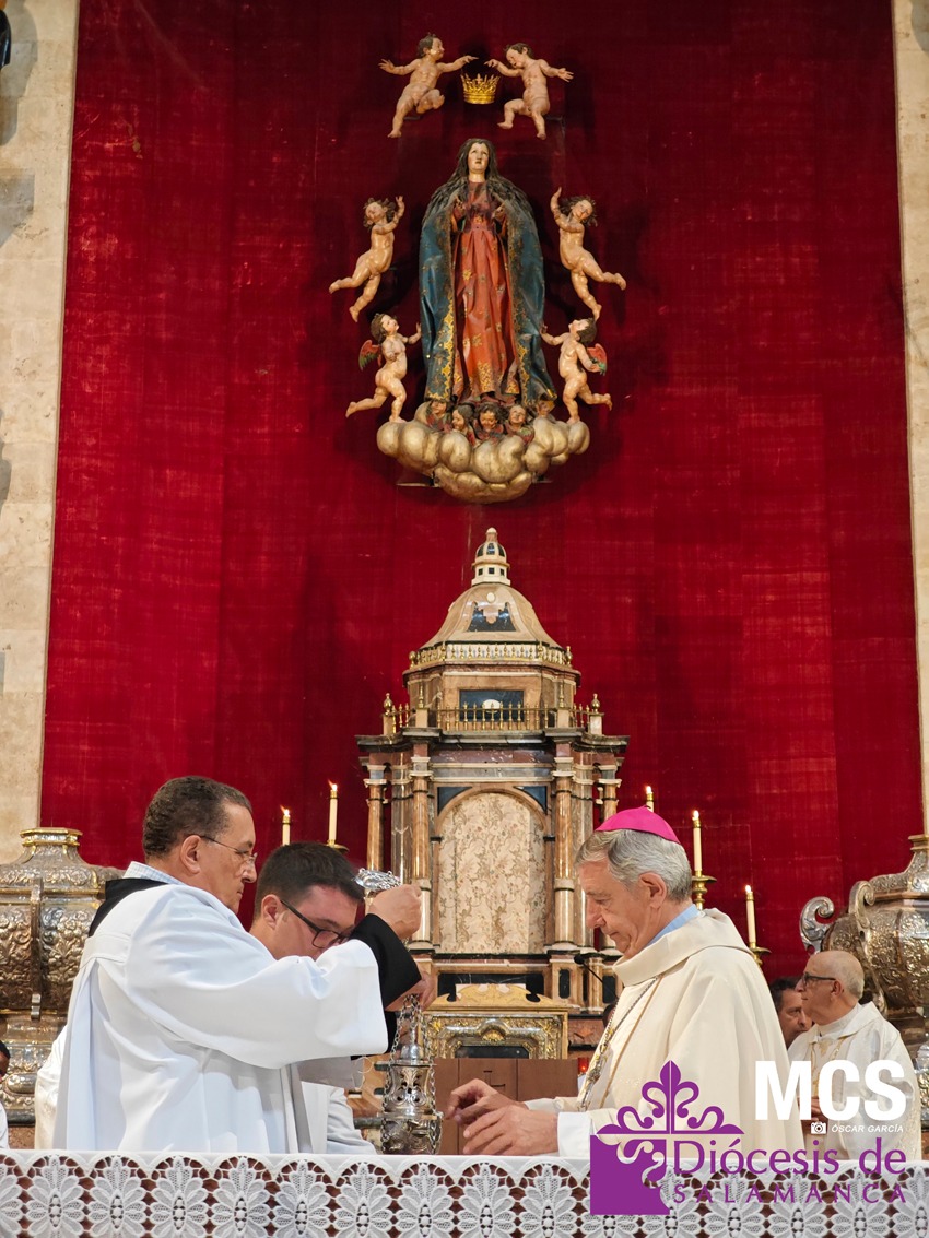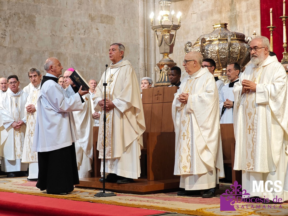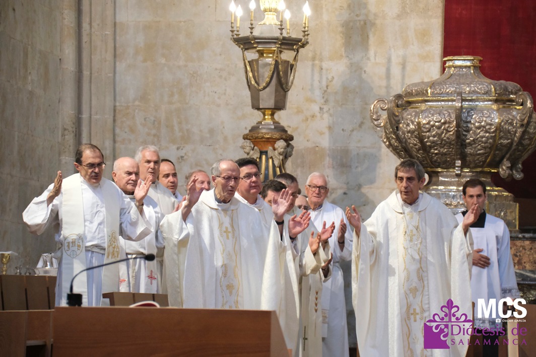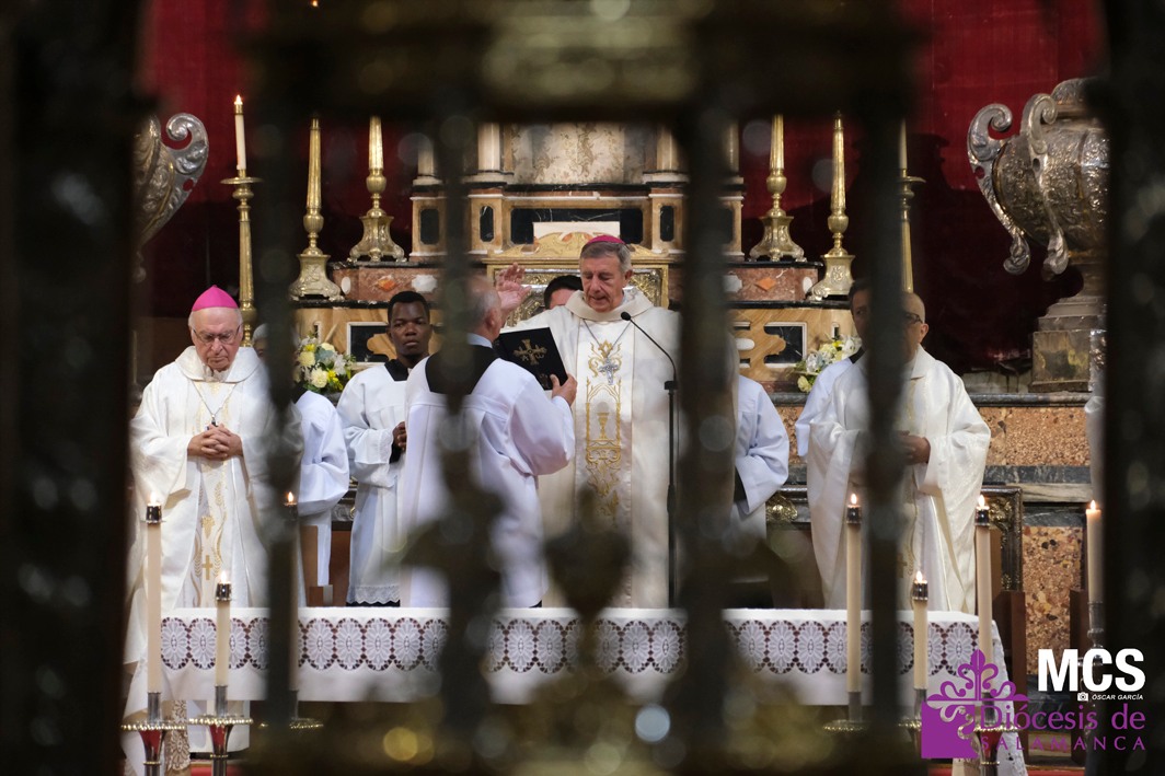 La Eucaristía fue el centro de la solemnidad del Corpus Christi que se celebró este domingo en la Catedral Nueva, presidida por el obispo de Salamanca, Mons. José Luis Retana, y concelebrada por el obispo emérito de Riobamba, Mons. Julio Parrilla, así como sacerdotes y religiosos diocesanos. En esta jornada también se conmemoraba el Día de la Caridad, con la presencia destacada de Cáritas diocesana de Salamanca. Una celebración que, como expresó el obispo de la diócesis, nos sitúa en el centro de la vida cristiana y nos hace testigos de la compasión de Dios, llamados a ser “la caricia de Dios para el prójimo herido”.
