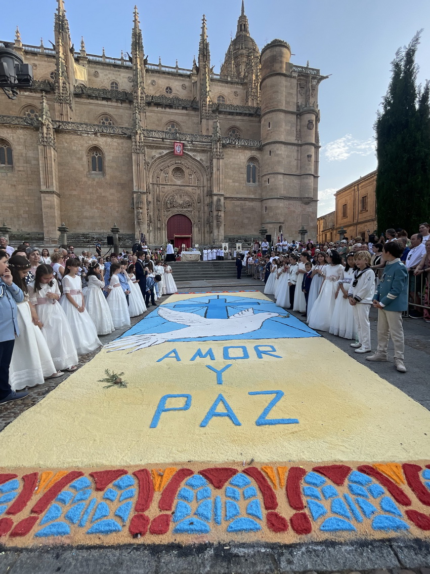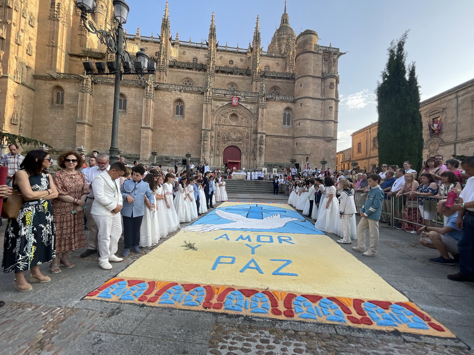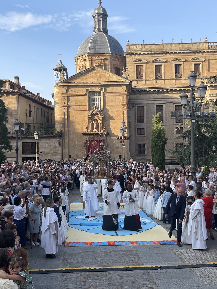 Asimismo, como cada año, un símbolo de la Eucaristía estaba representado en la alfombra de sal que elabora cada año la Hermandad del Cristo del Amor y de la Paz en la plaza de Anaya. El acompañamiento musical corrió a cargo del coro de la Catedral, tanto su sección de niños como de adultos, y la Agrupación Musical del Cristo Yacente. La bendición final del obispo de Salamanca con el Santísimo Sacramento tuvo lugar en el altar ubicado en el atrio de la Catedral.