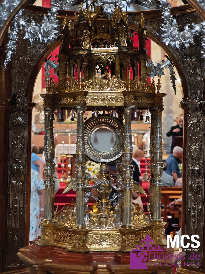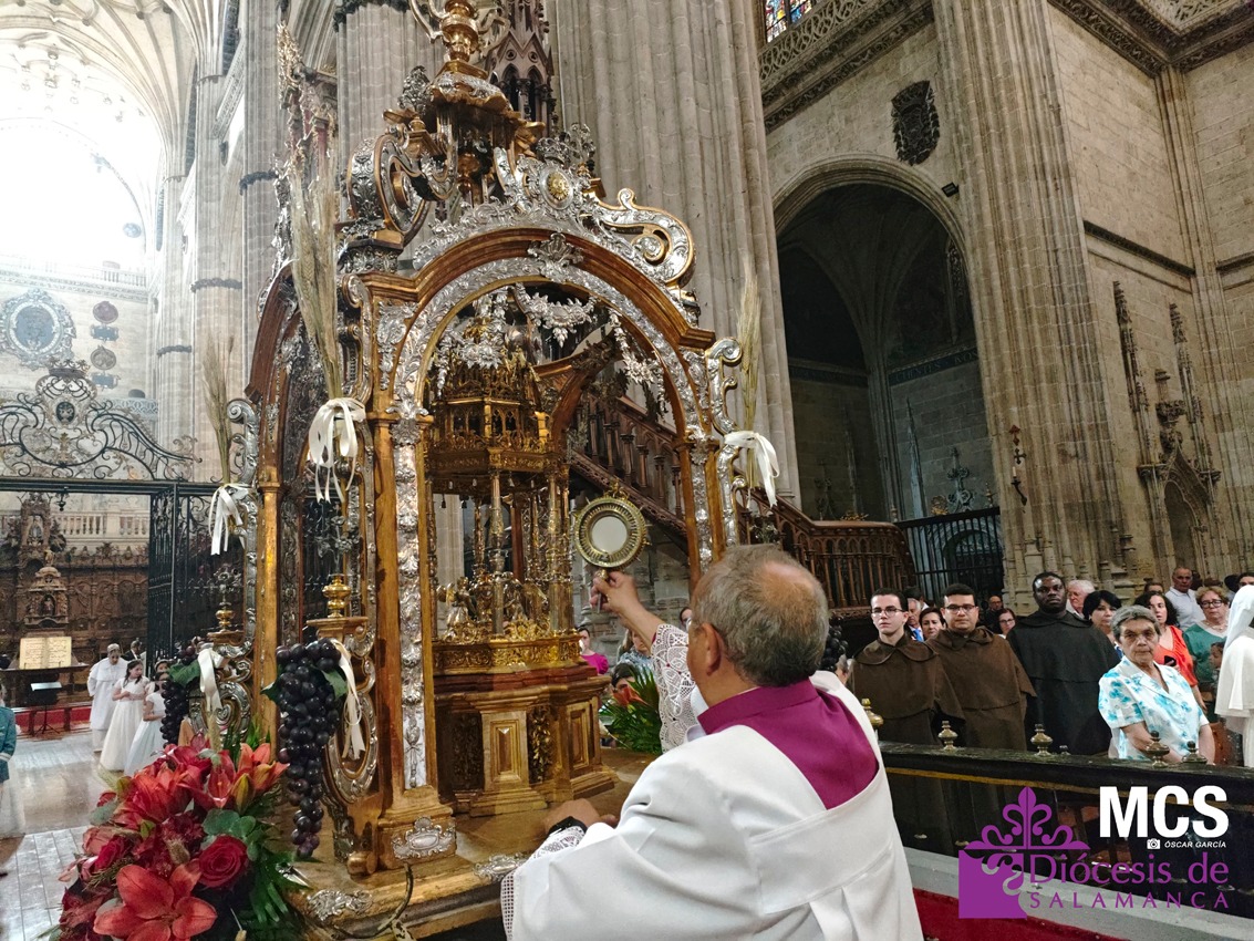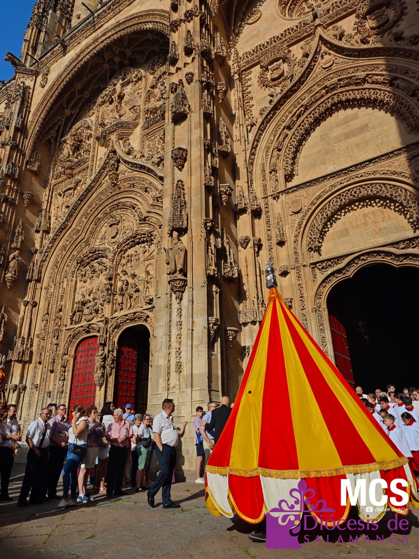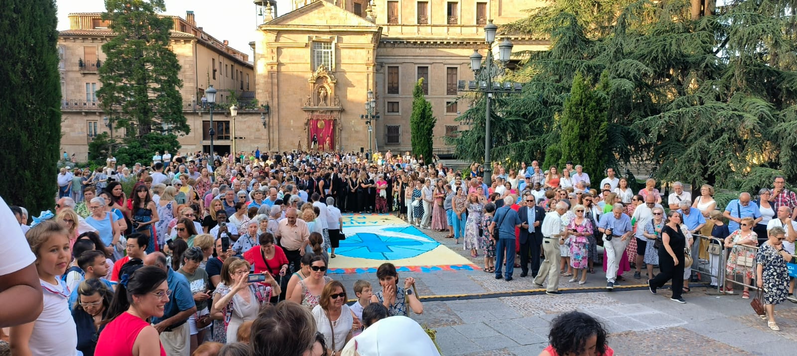Asimismo, como cada año, un símbolo de la Eucaristía estaba representado en la alfombra de sal que elabora cada año la Hermandad del Cristo del Amor y de la Paz en la plaza de Anaya. El acompañamiento musical corrió a cargo del coro de la Catedral, tanto su sección de niños como de adultos, y la Agrupación Musical del Cristo Yacente. La bendición final del obispo de Salamanca con el Santísimo Sacramento tuvo lugar en el altar ubicado en el atrio de la Catedral.